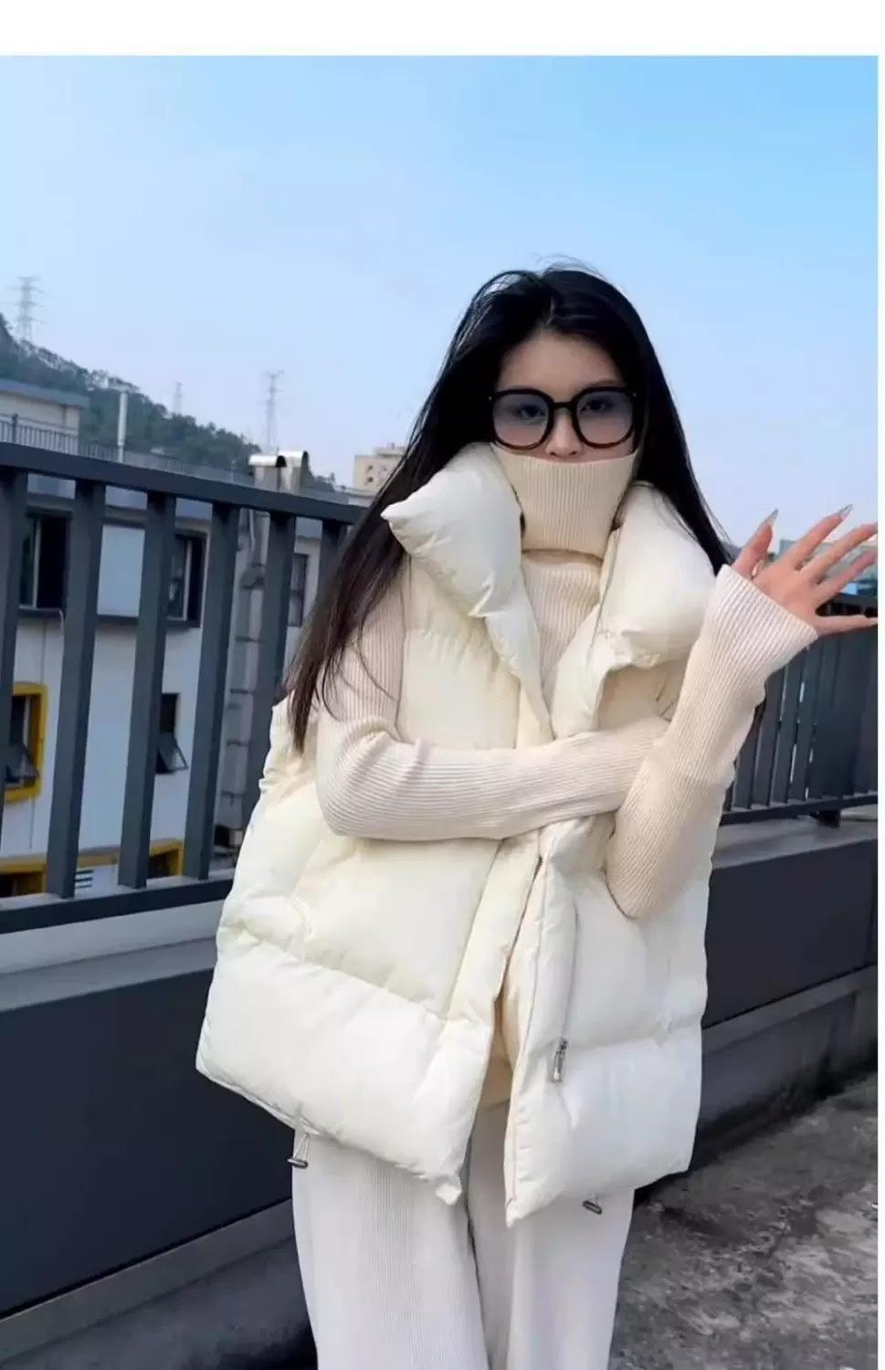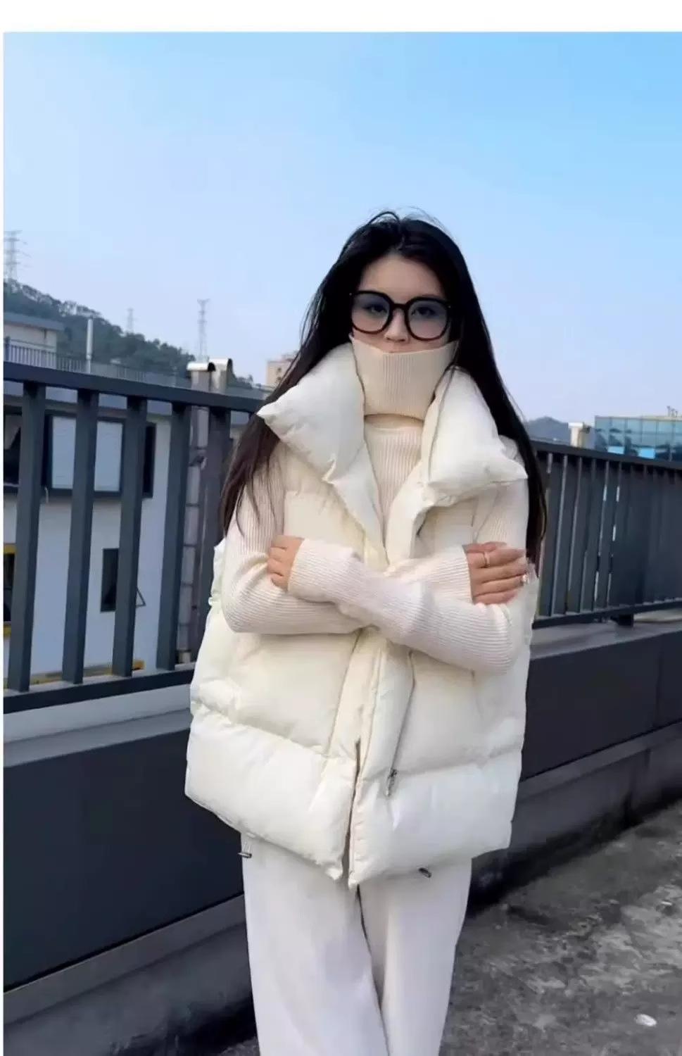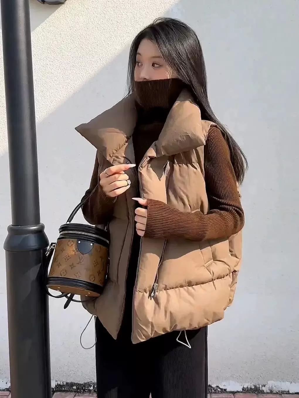 Chaleco Corto de Plumón con Cuello Vertical Estilo Coreano para Mujer Nuevo Otoño e Invierno 2024 Suelto Sencillo Combinable Cálido Chaqueta Chaleco
