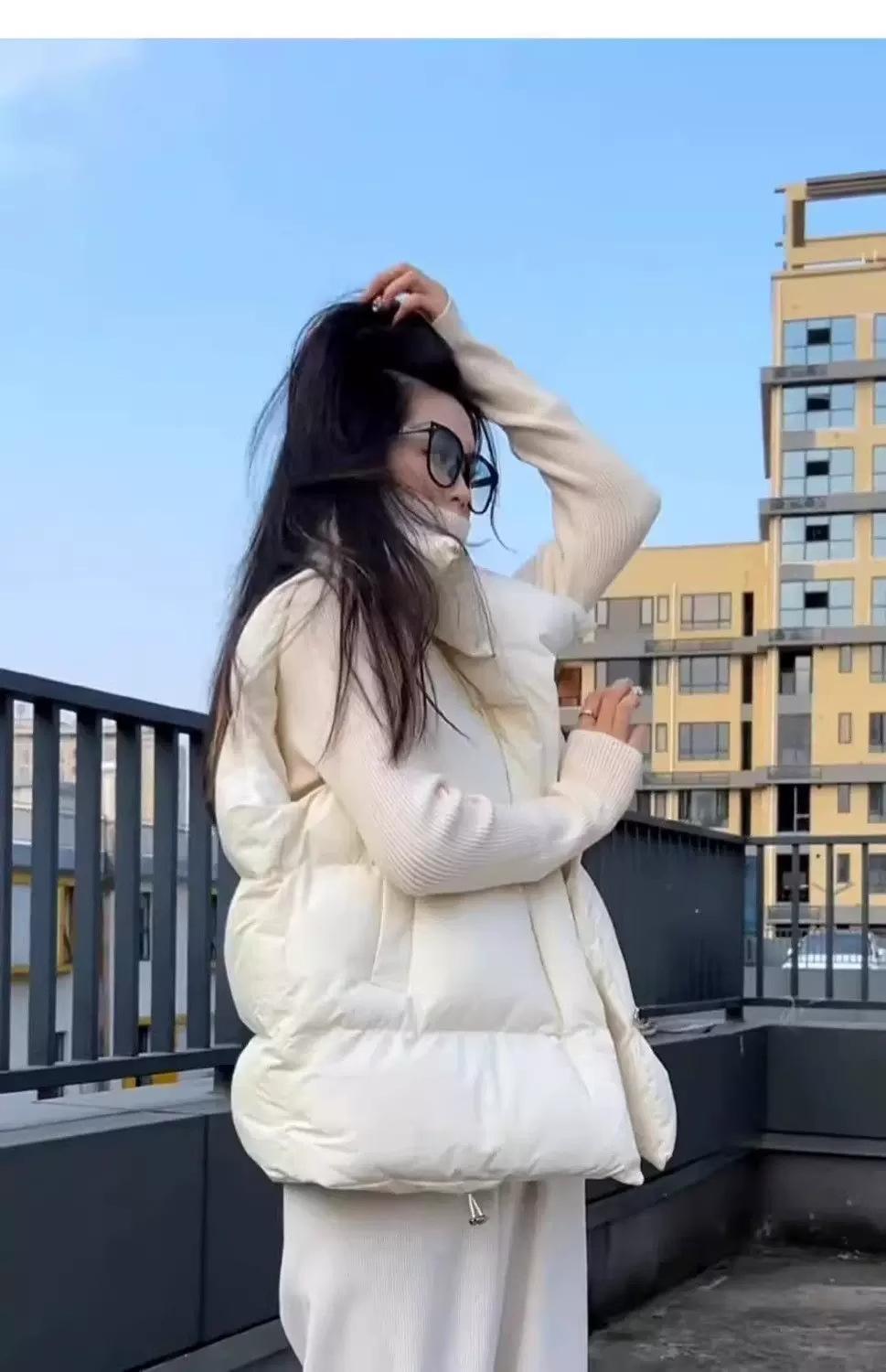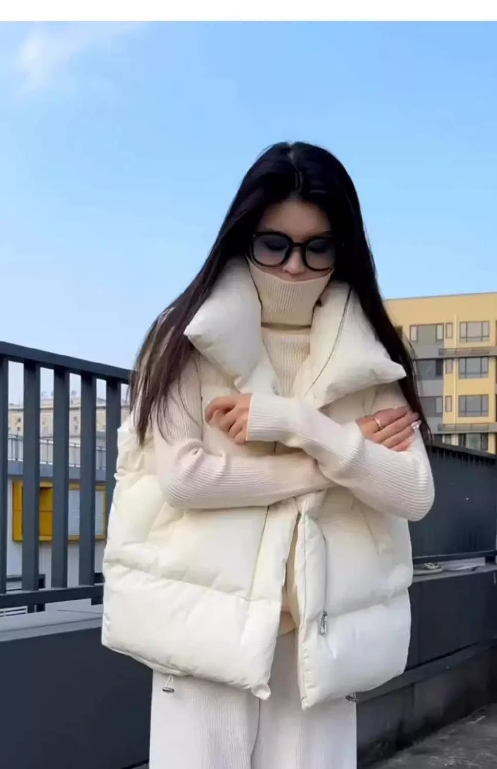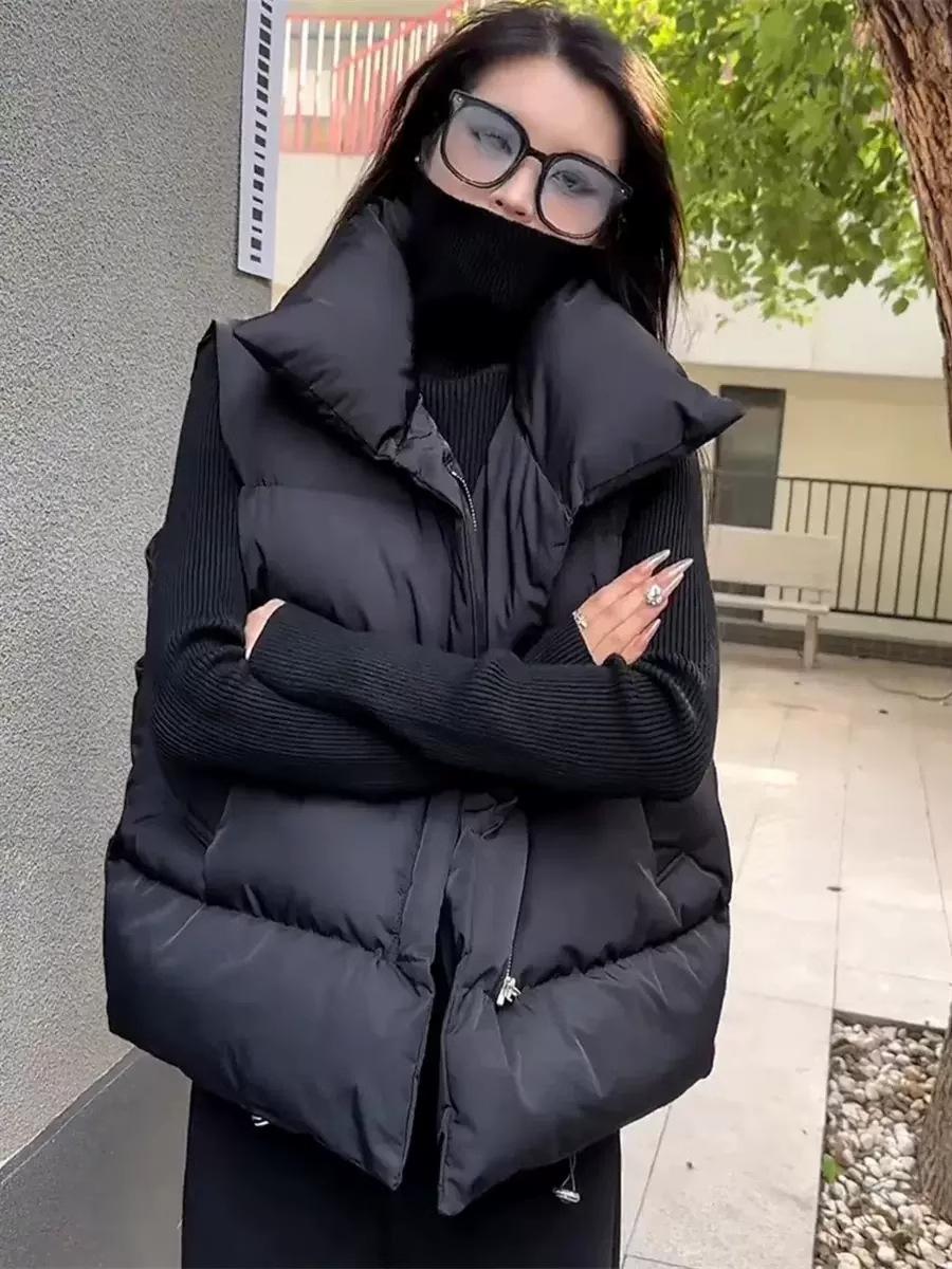 Chaleco Corto de Plumón con Cuello Vertical Estilo Coreano para Mujer Nuevo Otoño e Invierno 2024 Suelto Sencillo Combinable Cálido Chaqueta Chaleco