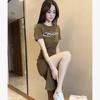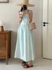 Vestido de mujer estilo europeo y americano con cuello cuadrado, espalda semielástica, dobladillo con volantes, falda holgada de corte A