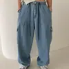 Vaqueros de estilo urbano de alta gama para mujer de Dongdaemun, Corea del Sur, con diseño Madou y bolsillos grandes en la cintura.