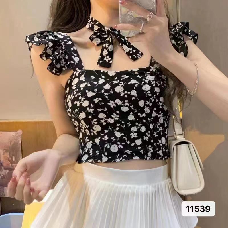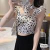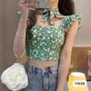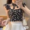 Camisola de Tres Vías Moderna y Única Floral Corta de Vacaciones Ajustada Top Corto con un Efecto Favorecedor y Adelgazante