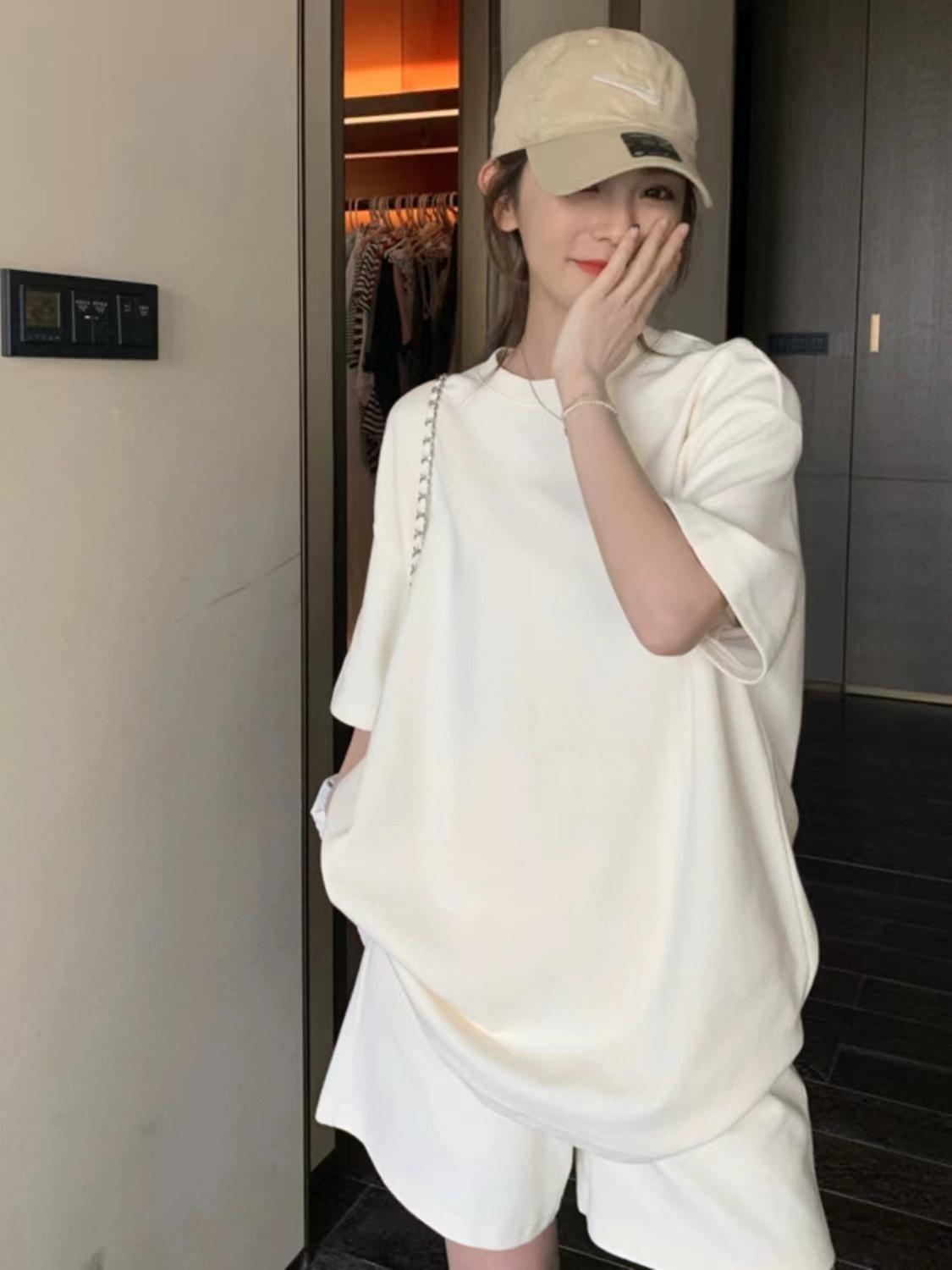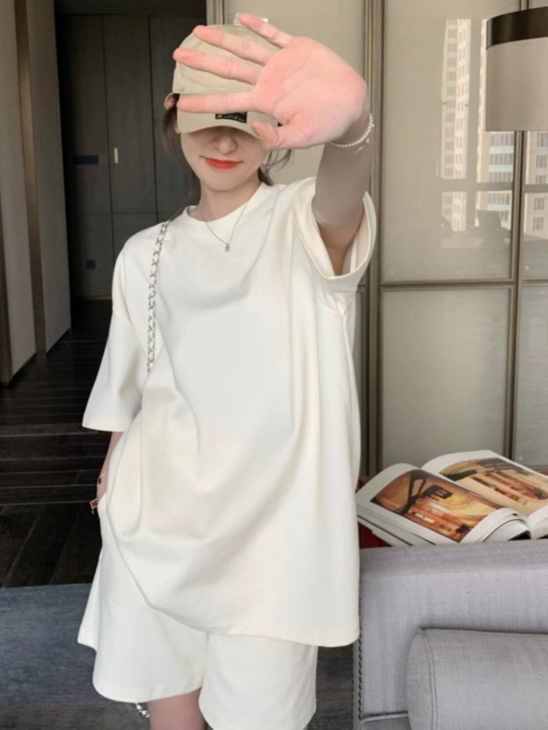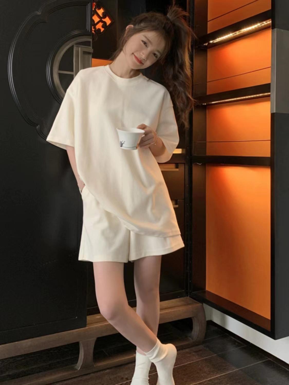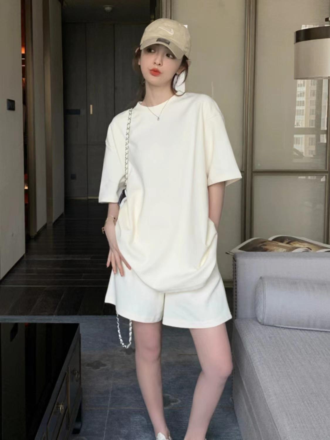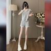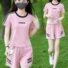 Traje de moda de verano 2025, nuevo conjunto deportivo informal de dos piezas con pantalones cortos de manga corta antiedad.