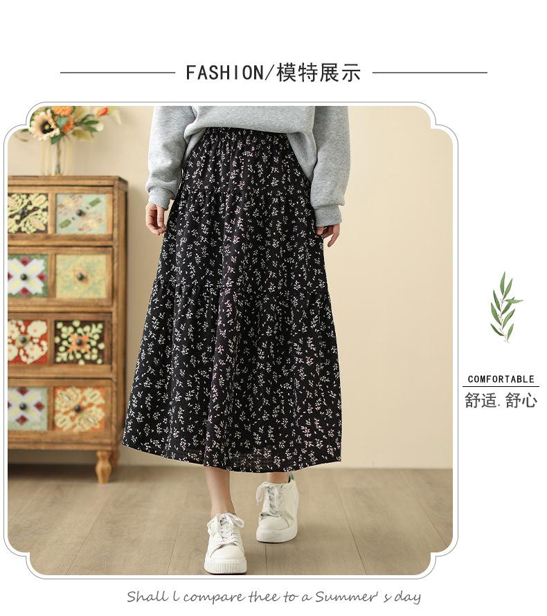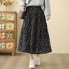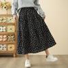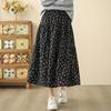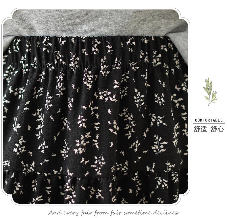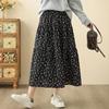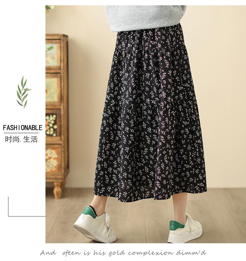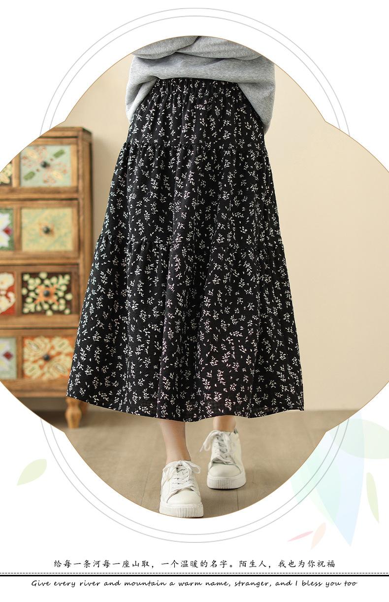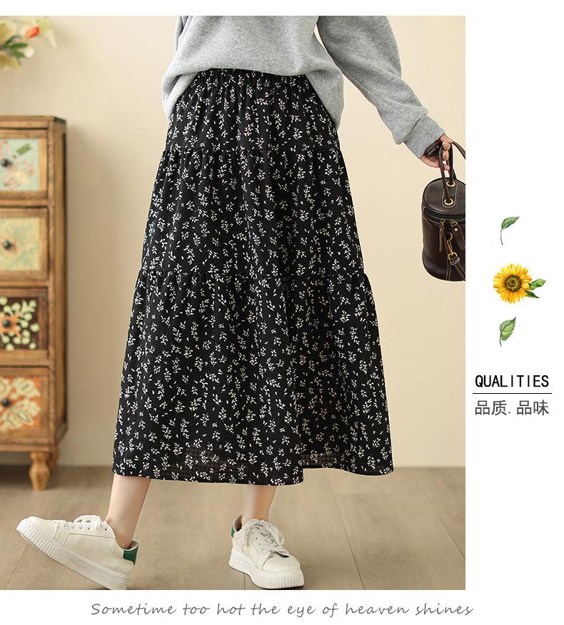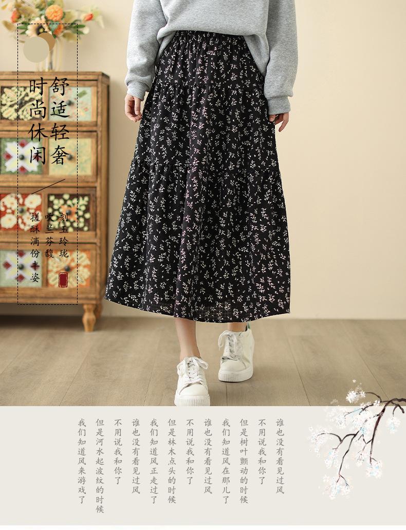 Falda floral negra 2025 para mujer, primavera y otoño, estilo retro francés, corta, drapeada, de longitud media, de corte A.