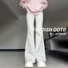 Pantalones acampanados blancos y grises para mujer, primavera y otoño 2025, nuevo estilo americano, cintura alta, adelgazantes, informales, deportivos, pequeños.