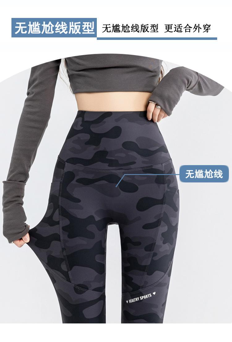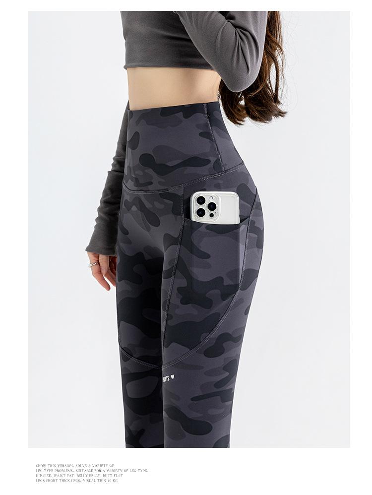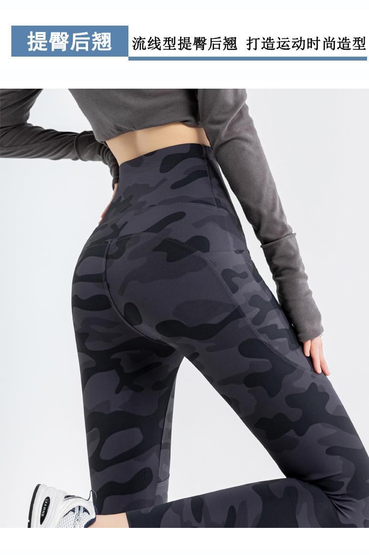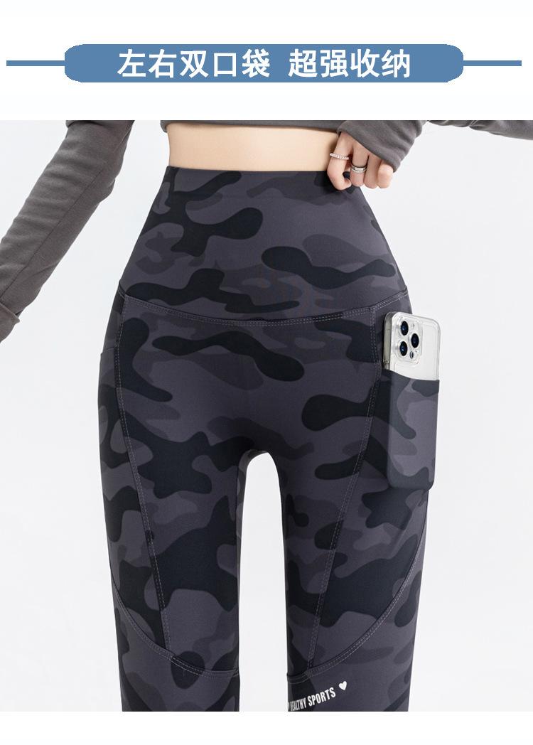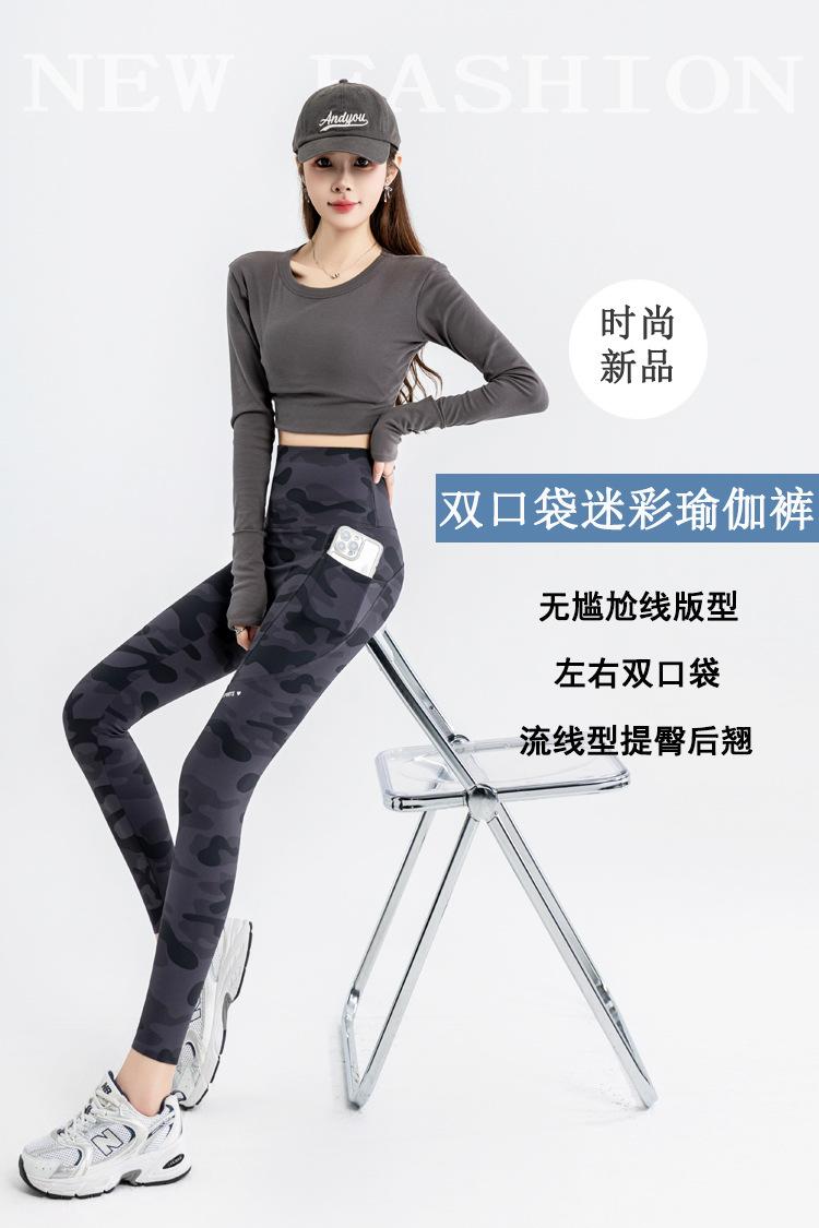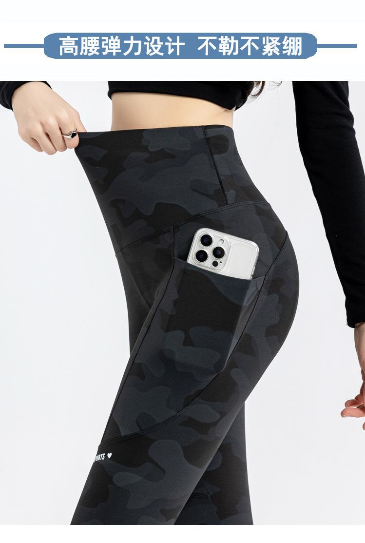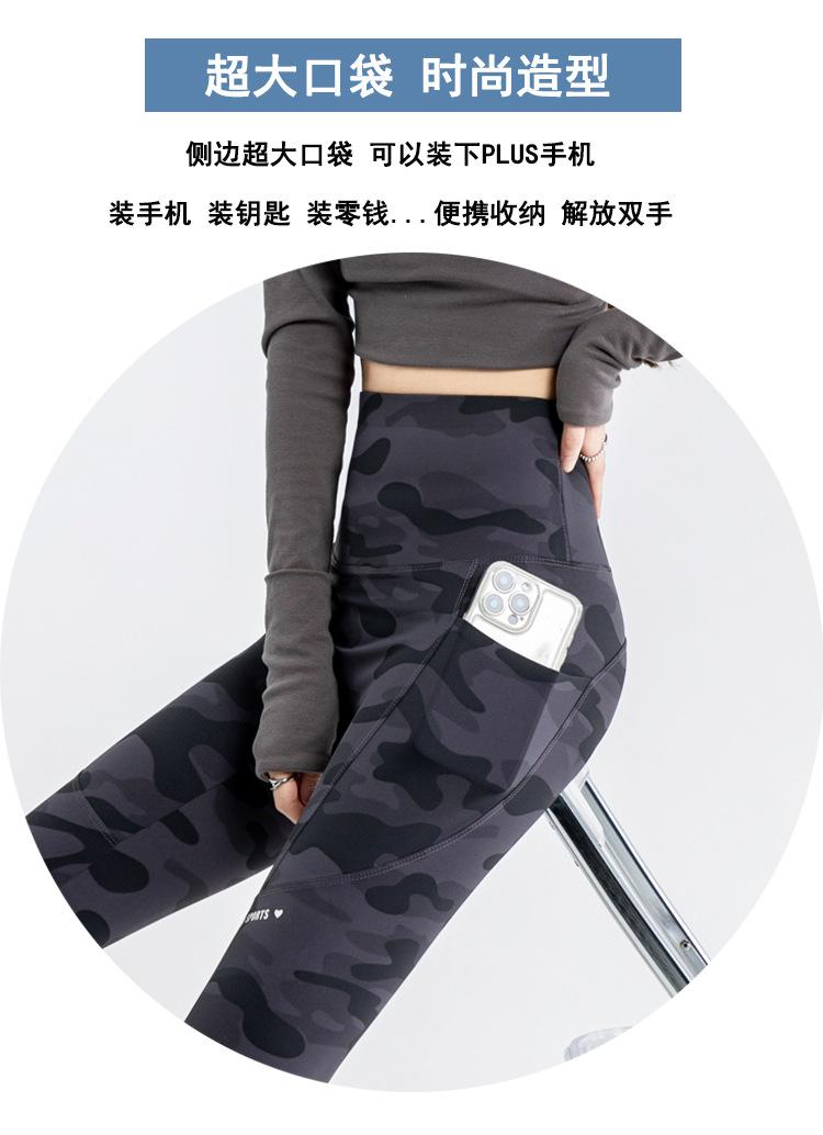 Nuevos Pantalones de Yoga de Bolsillo Camuflaje Delgados Ajustados Pantalones Shark para Mujer Cintura Alta Ropa Exterior Leggings Talla Extra Pantalones de Montar Transfronterizos