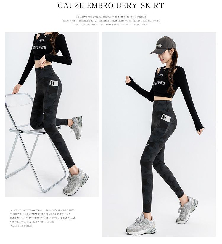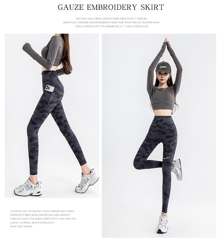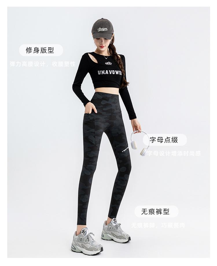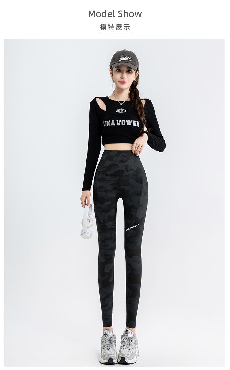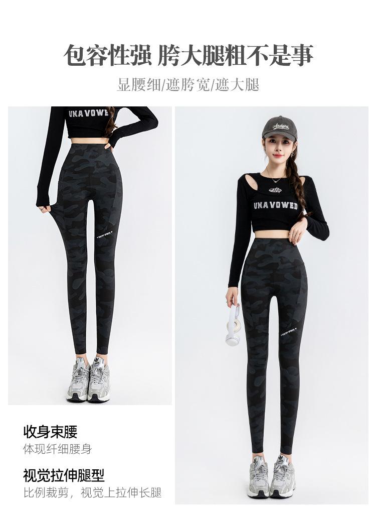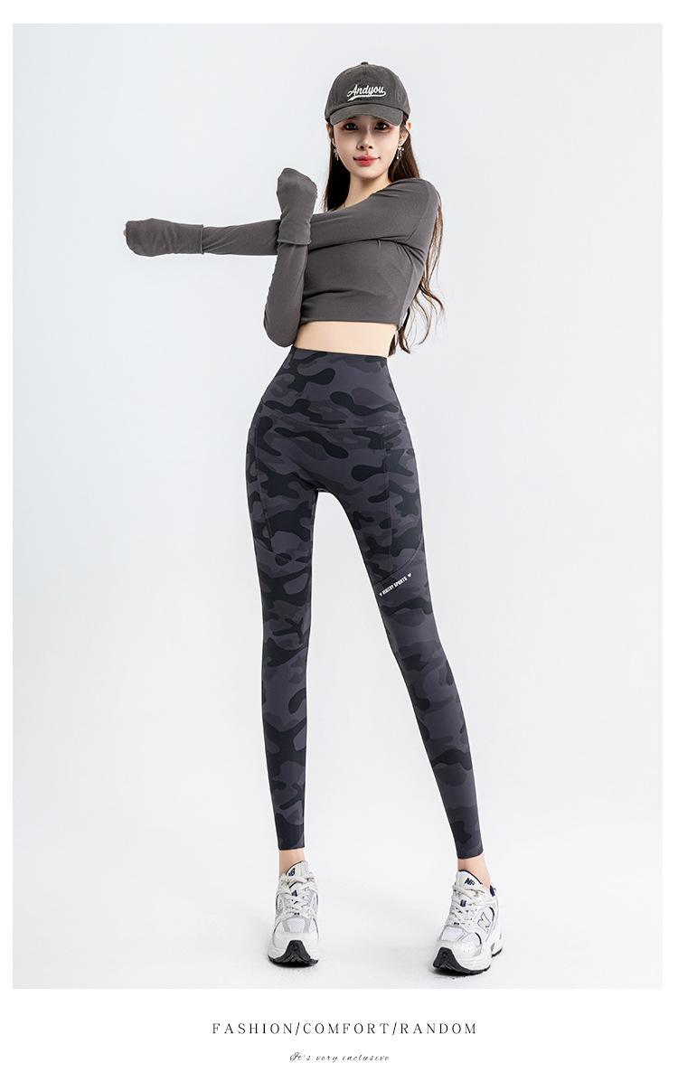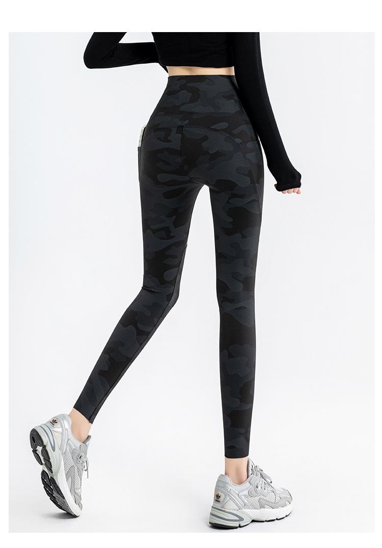Nuevos Pantalones de Yoga de Bolsillo Camuflaje Delgados Ajustados Pantalones Shark para Mujer Cintura Alta Ropa Exterior Leggings Talla Extra Pantalones de Montar Transfronterizos