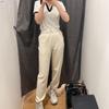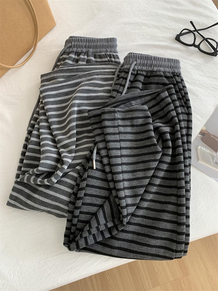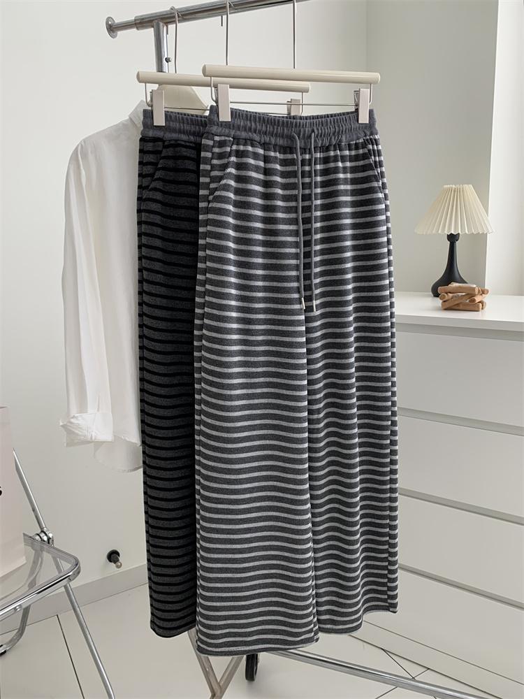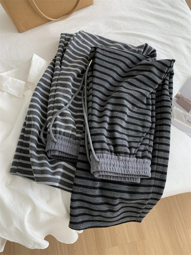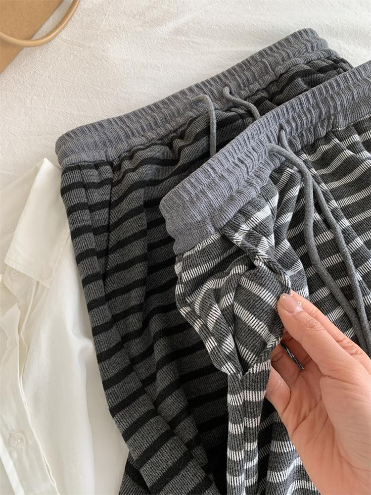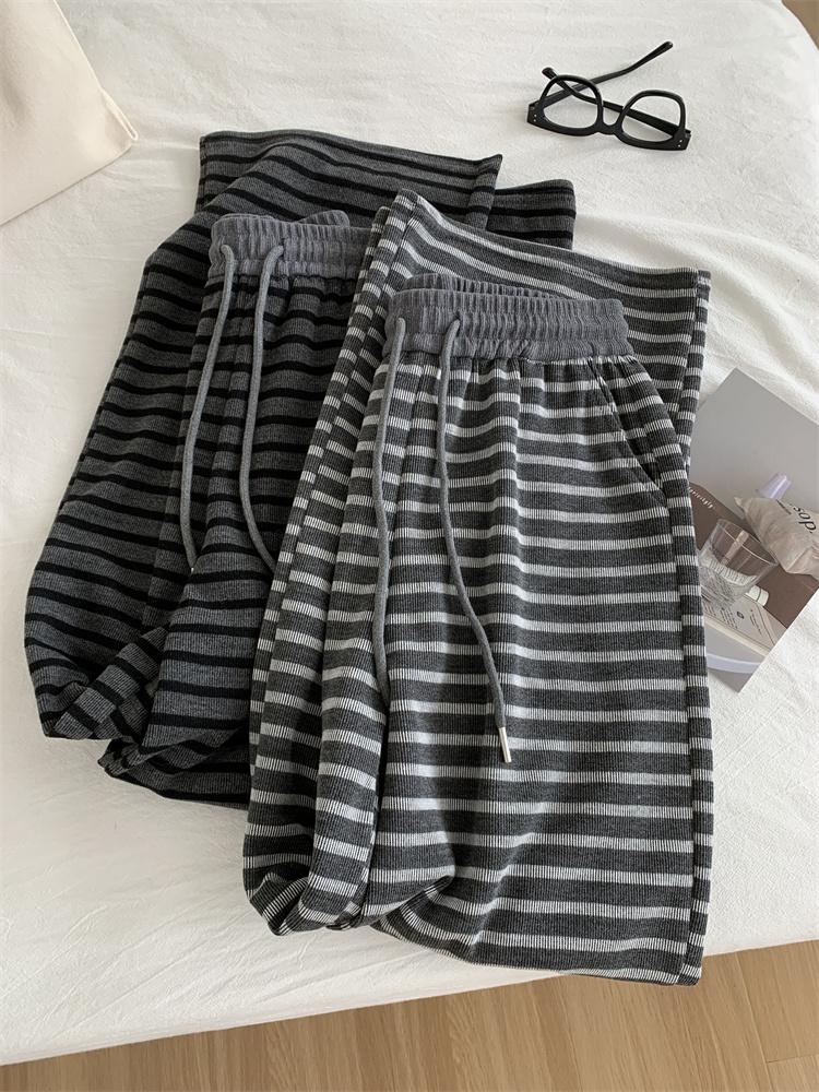 Pantalones casuales de rayas ajustados y relajados para mujer, de color a juego, holgados y con pierna ancha para primavera y otoño