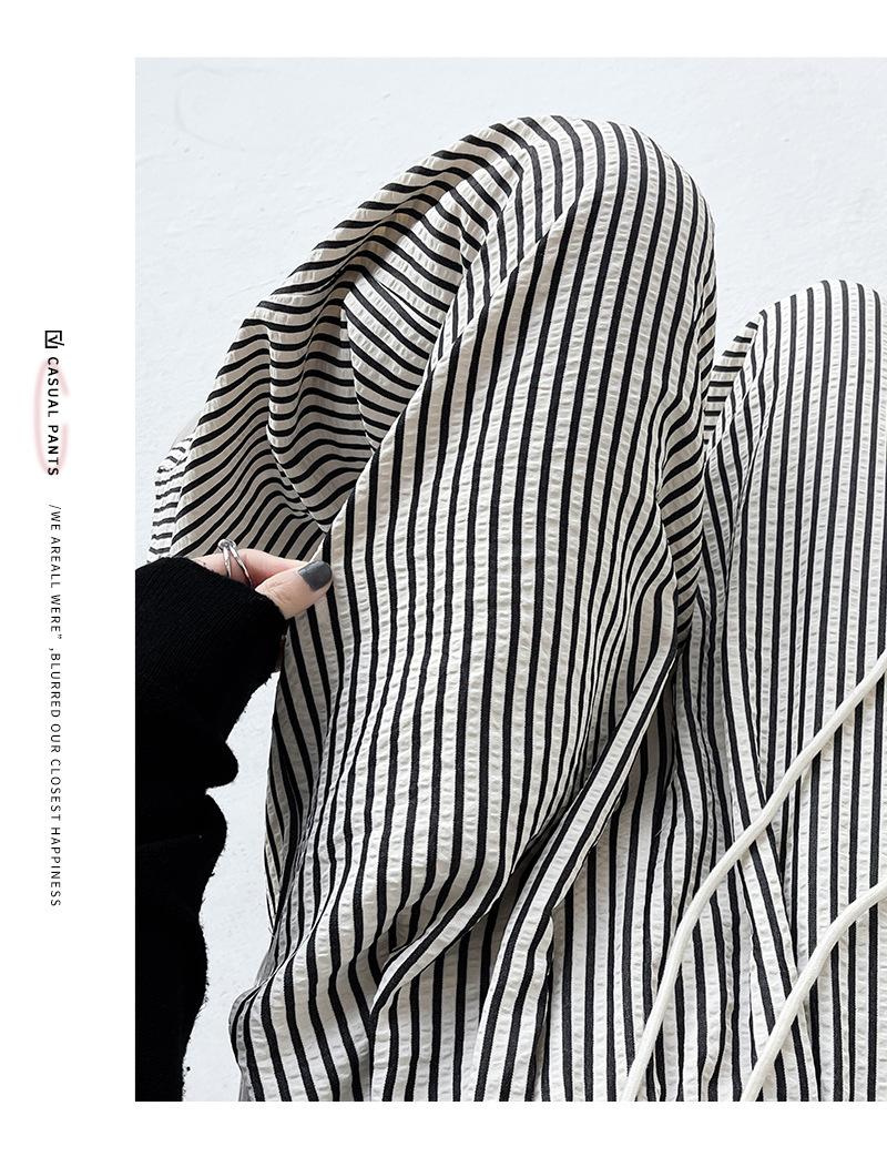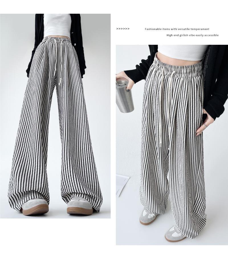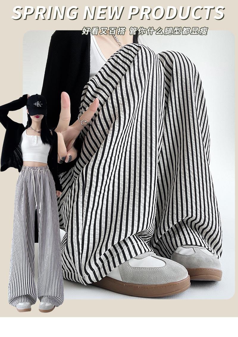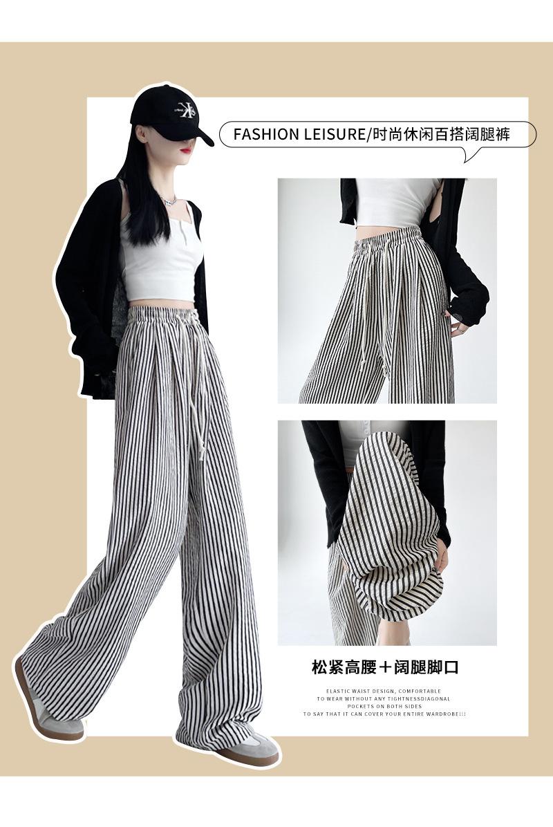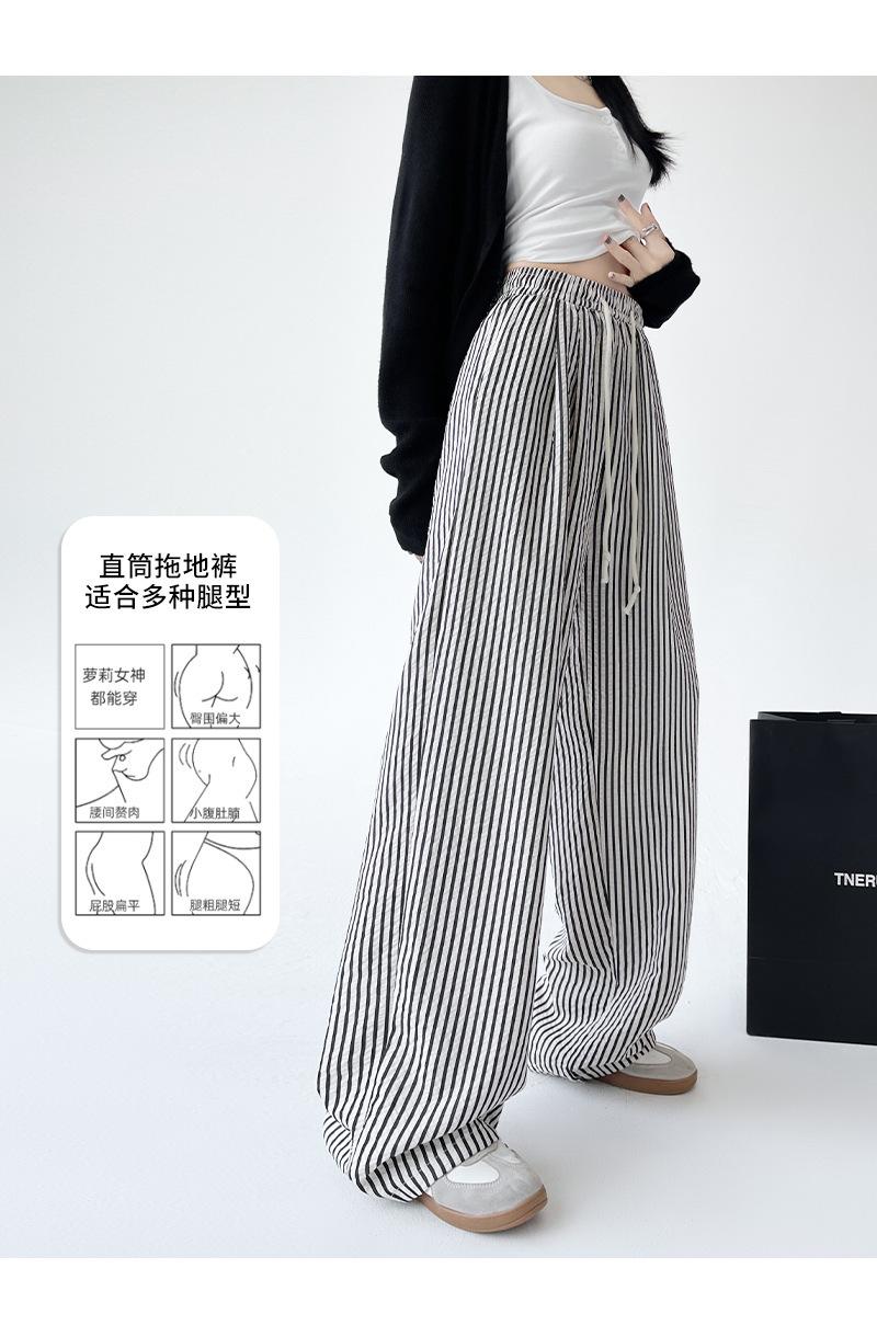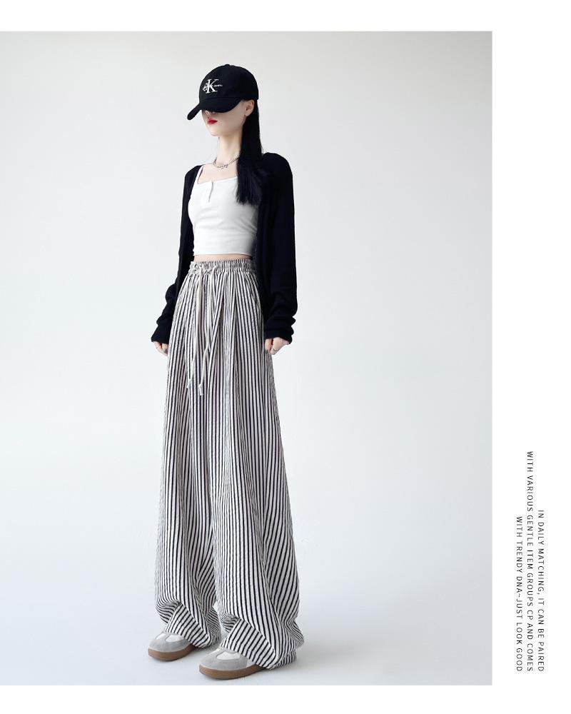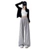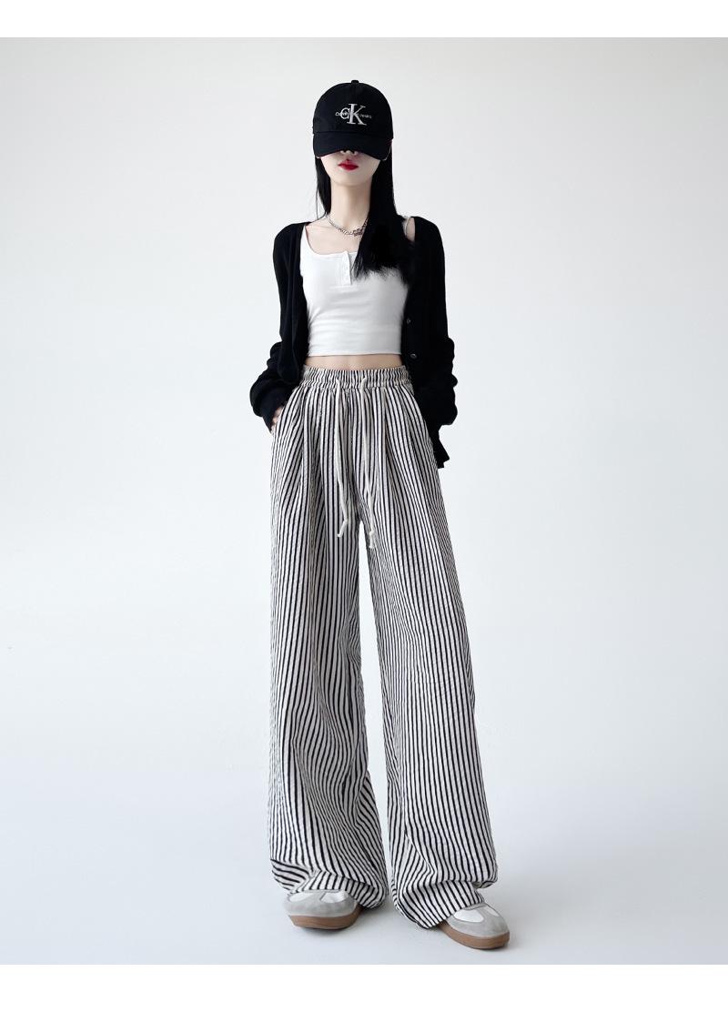 Pantalones anchos de estilo americano a rayas blancas y negras para mujer, de 25 años, holgados, adelgazantes, de cintura alta, informales, drapeados, para primavera y verano