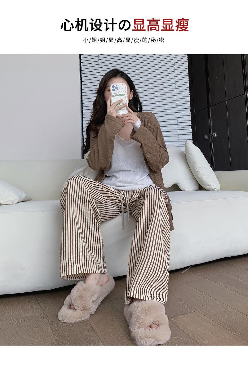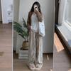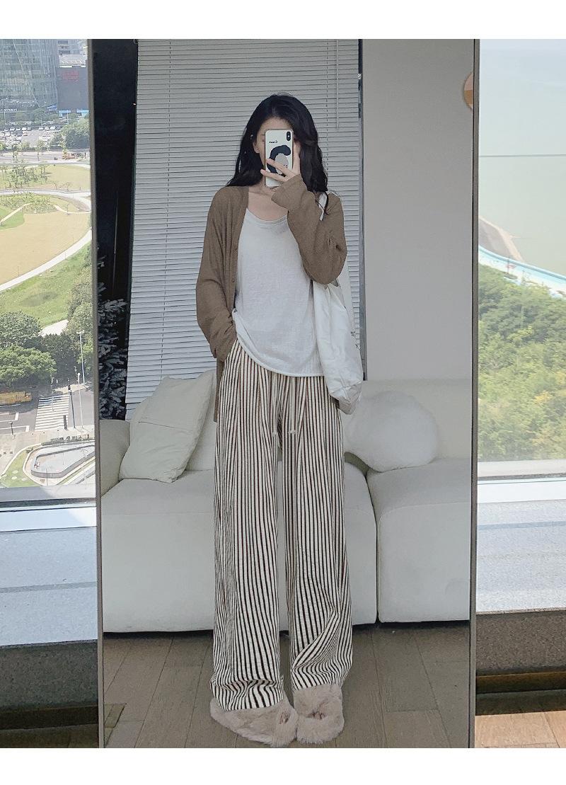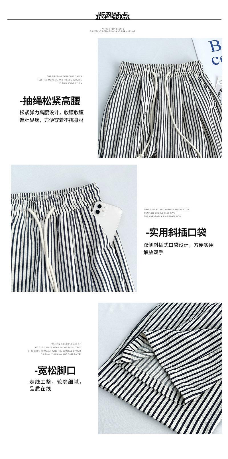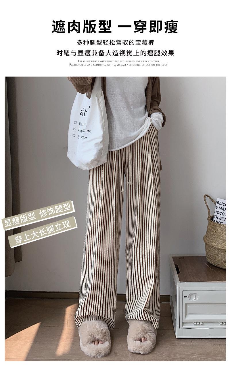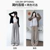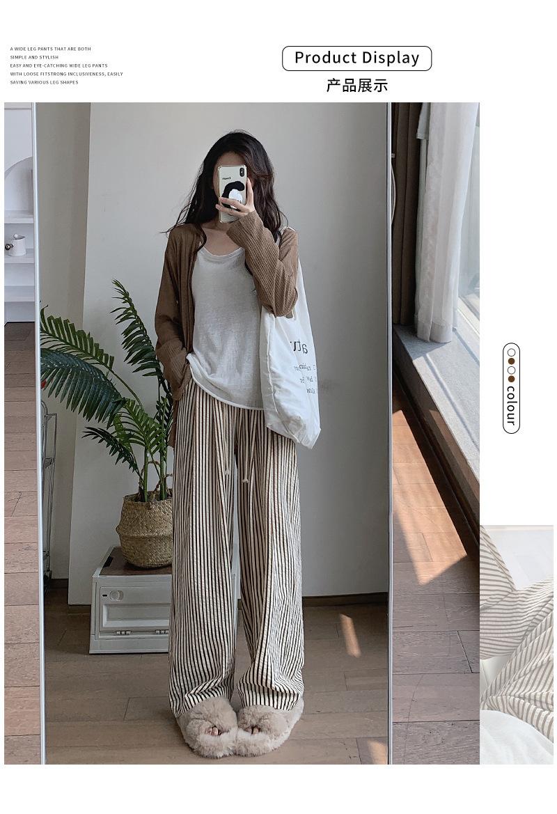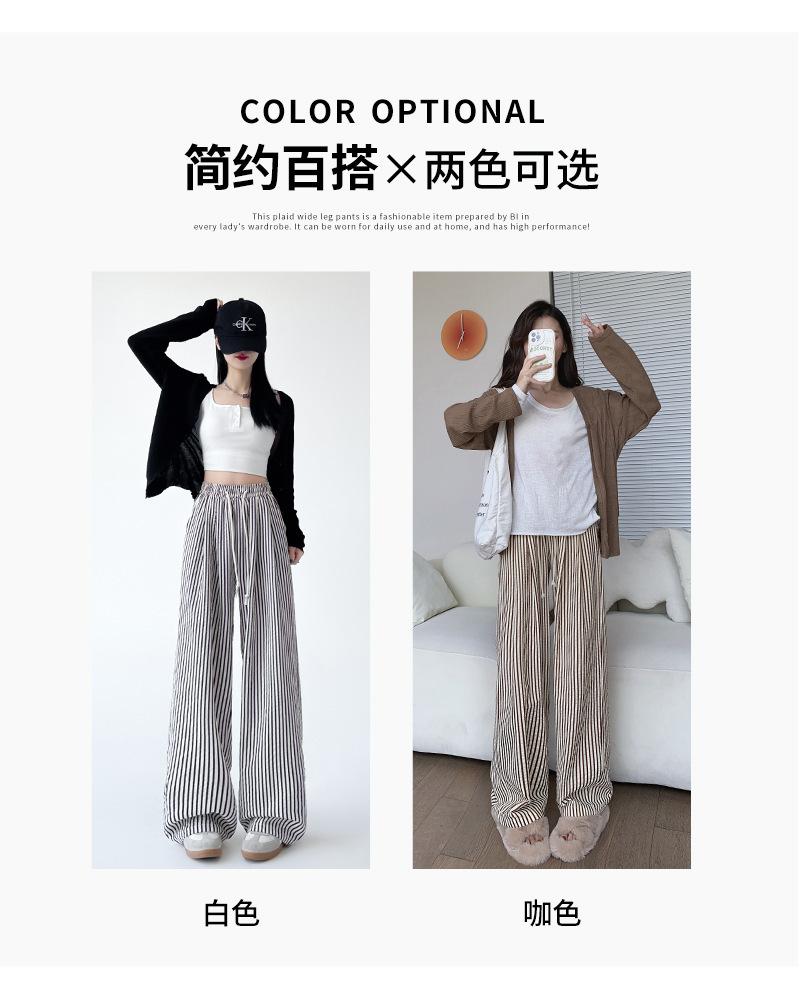 Pantalones anchos de estilo americano a rayas blancas y negras para mujer, de 25 años, holgados, adelgazantes, de cintura alta, informales, drapeados, para primavera y verano