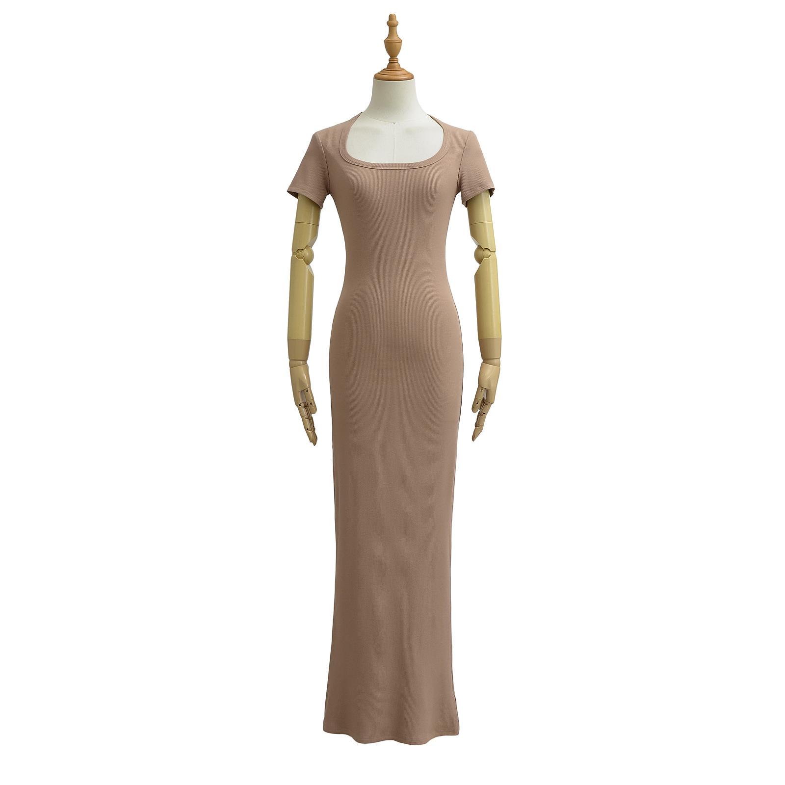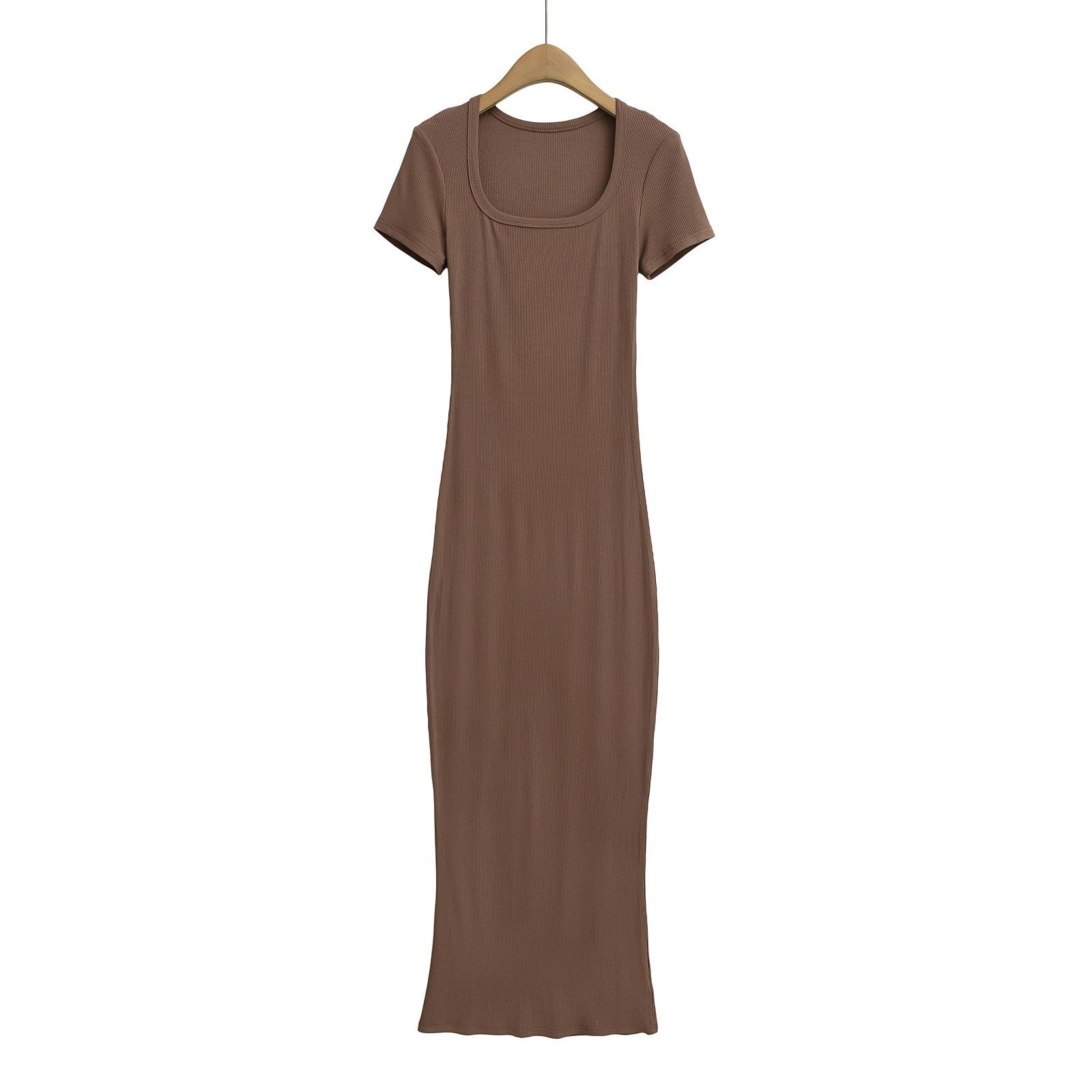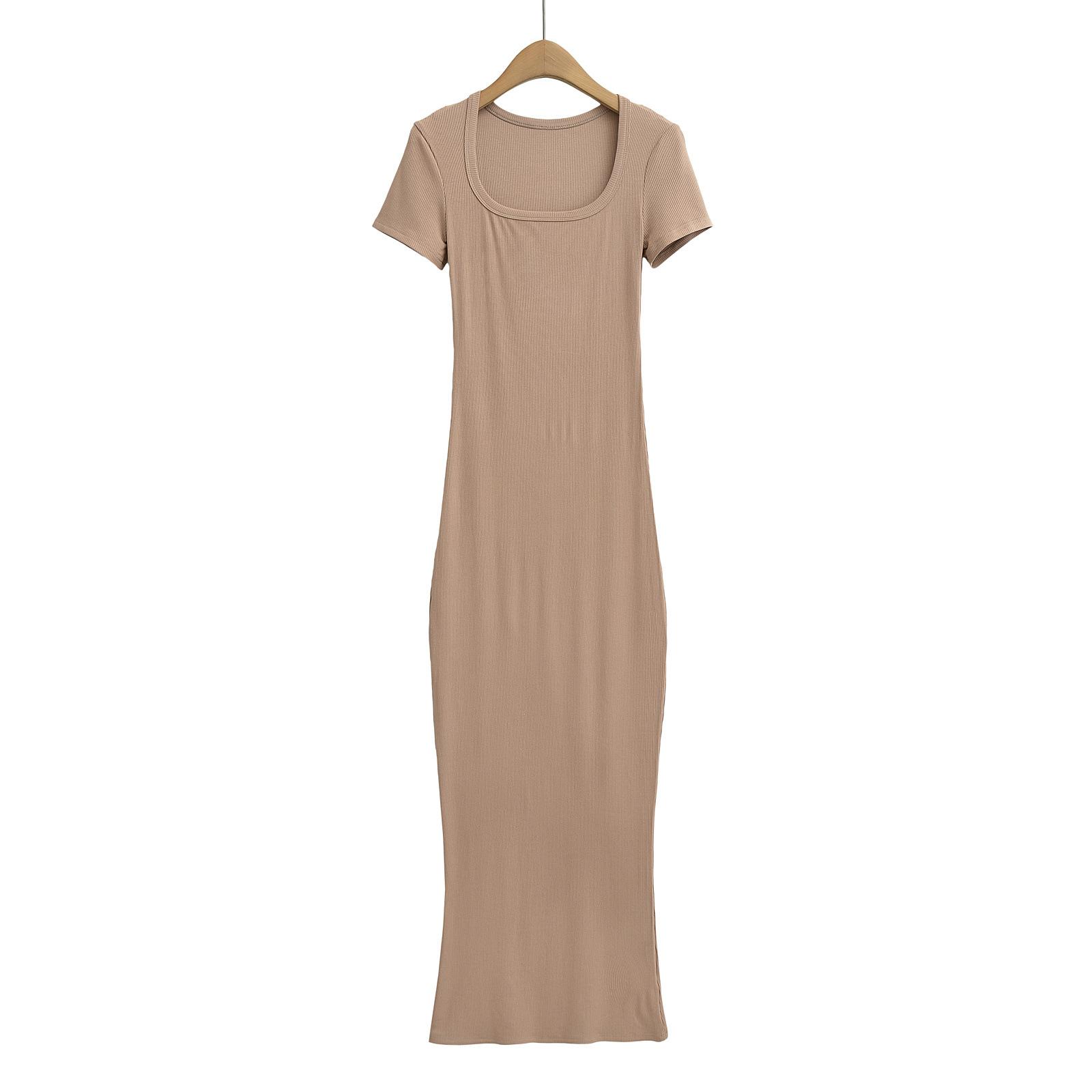 -Vestido sexy de manga corta para mujer, estilo europeo y americano, con cuello cuadrado, cintura ajustada y cadera, 2025