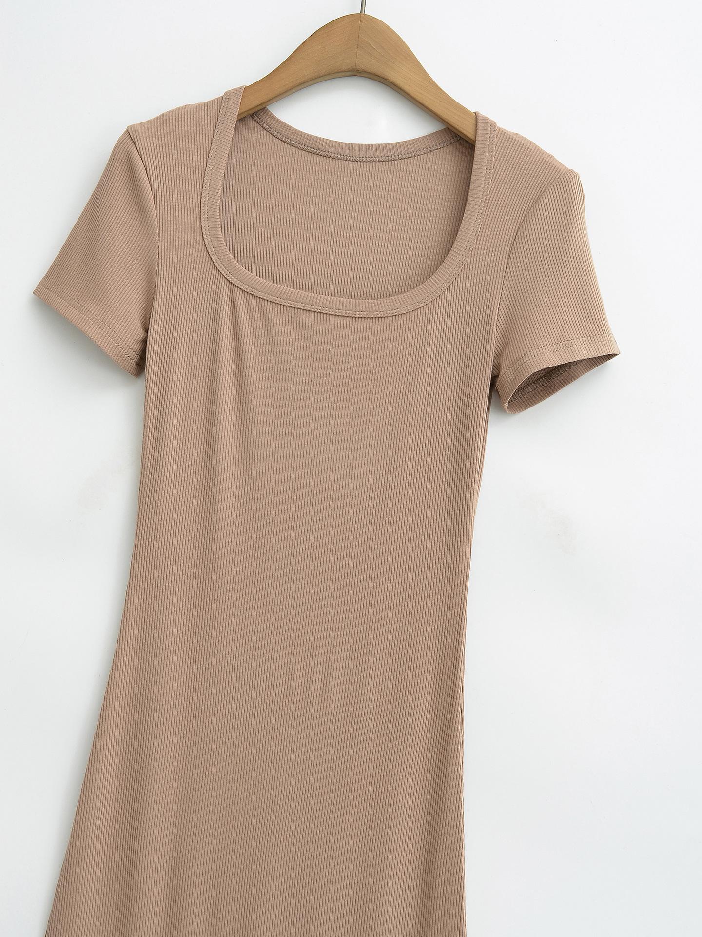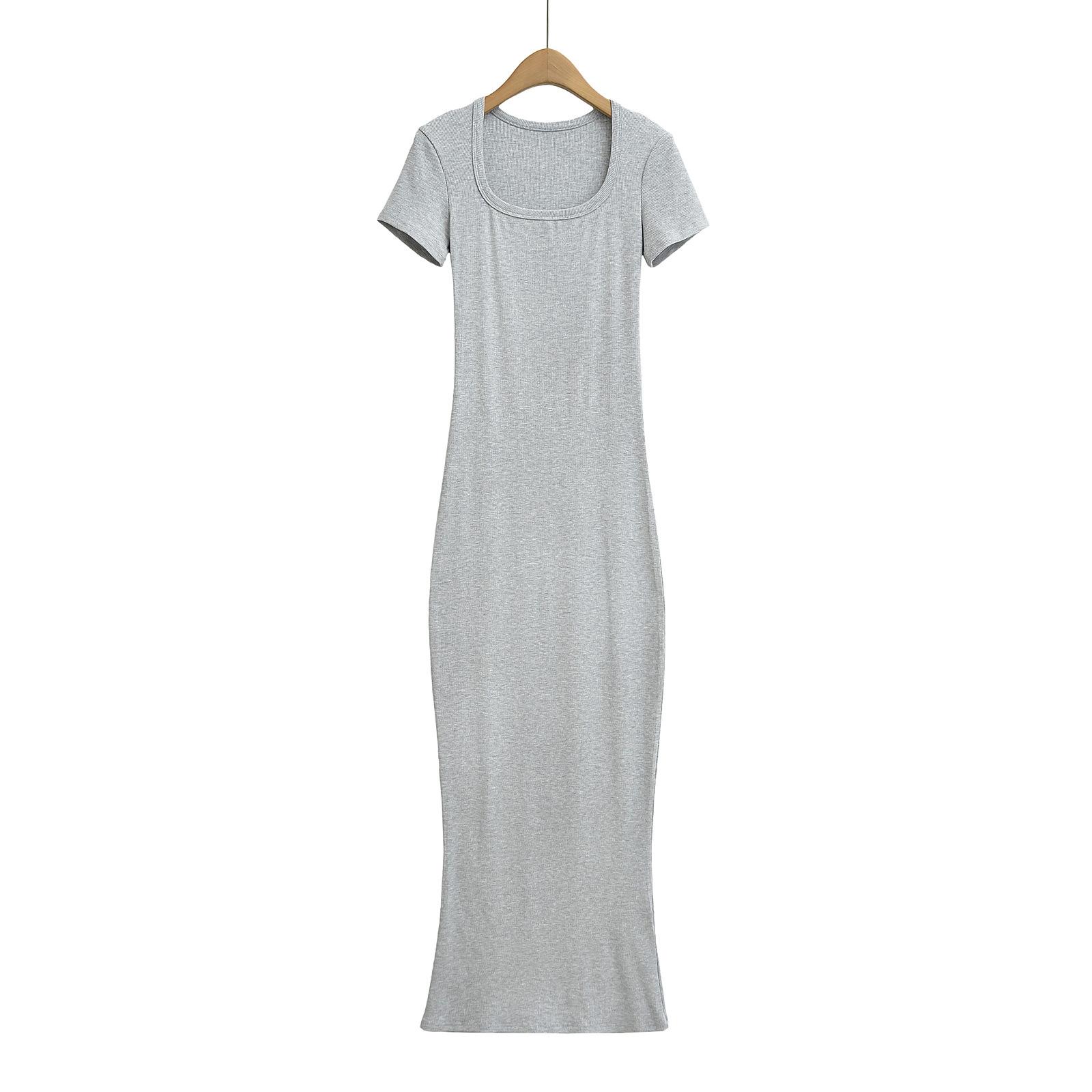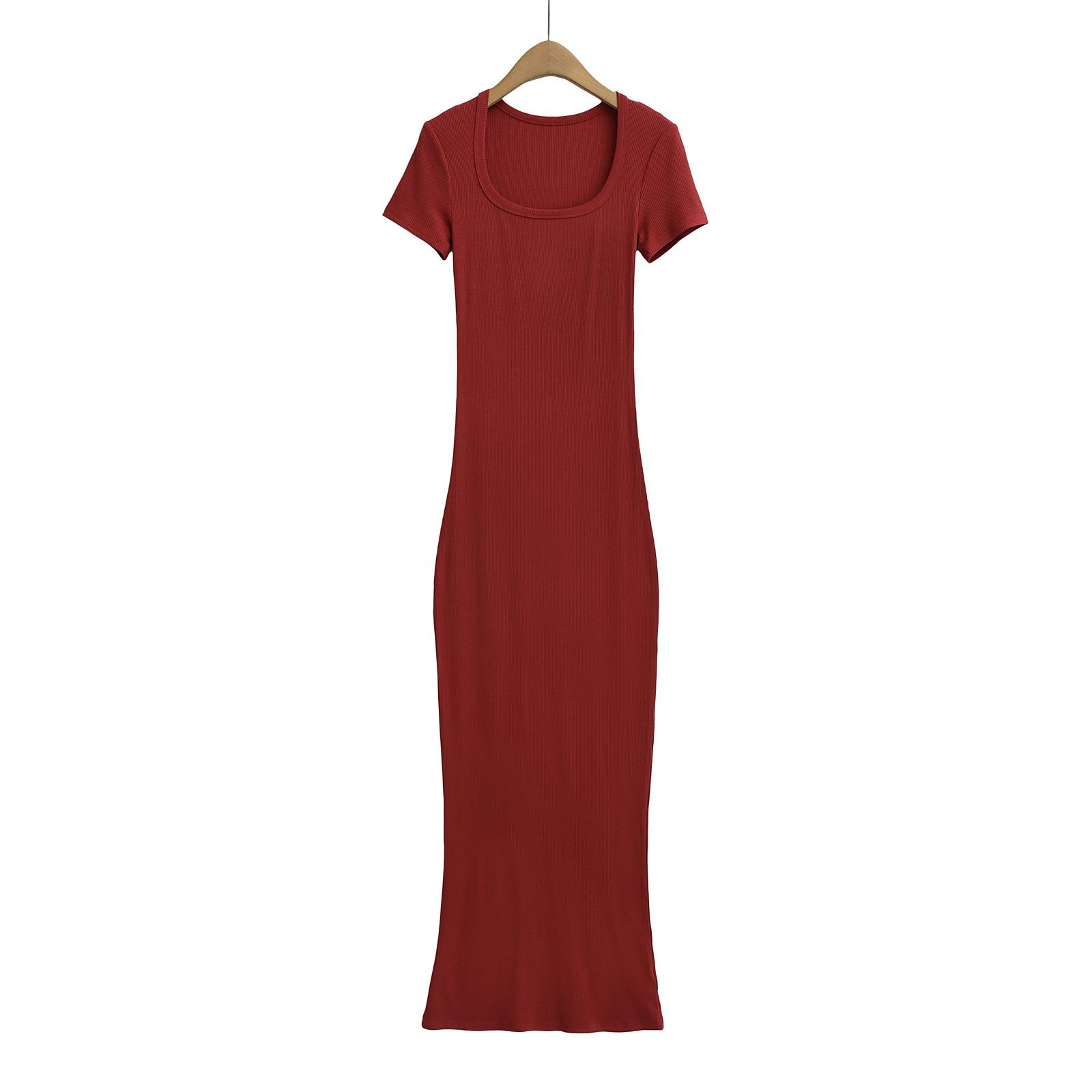 -Vestido sexy de manga corta para mujer, estilo europeo y americano, con cuello cuadrado, cintura ajustada y cadera, 2025
