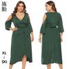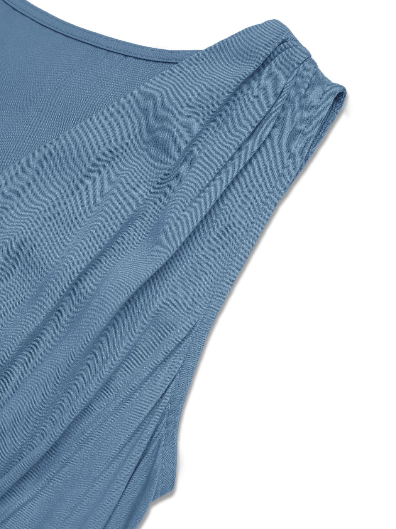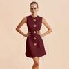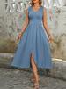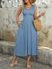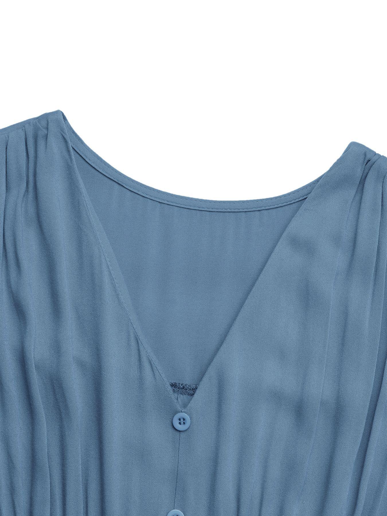 Amazon vestido de verano nuevo sin mangas con cuello en V y botones para mujer europea y americana, color sólido, abertura, casual, elegante, falda larga