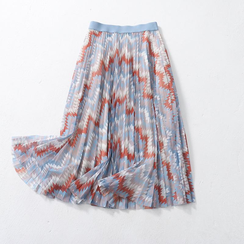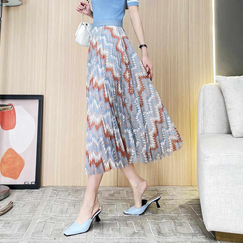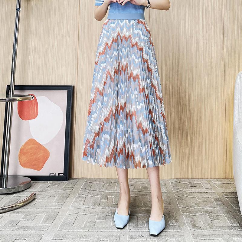 Falda plisada de cintura alta y longitud media con estampado floral, estilo nuevo de verano 2024, falda plisada larga