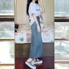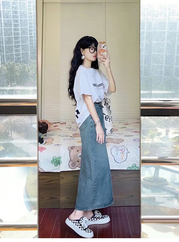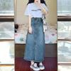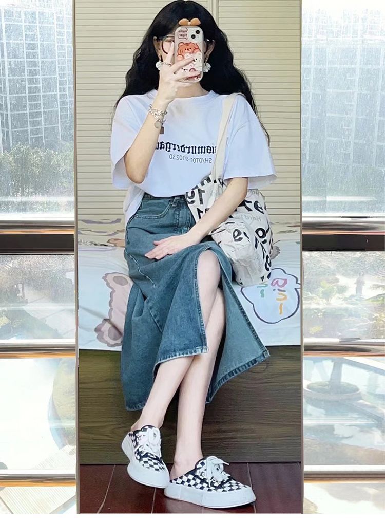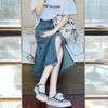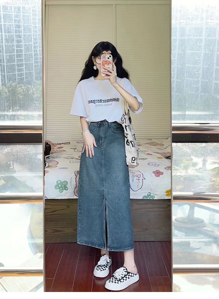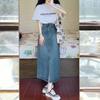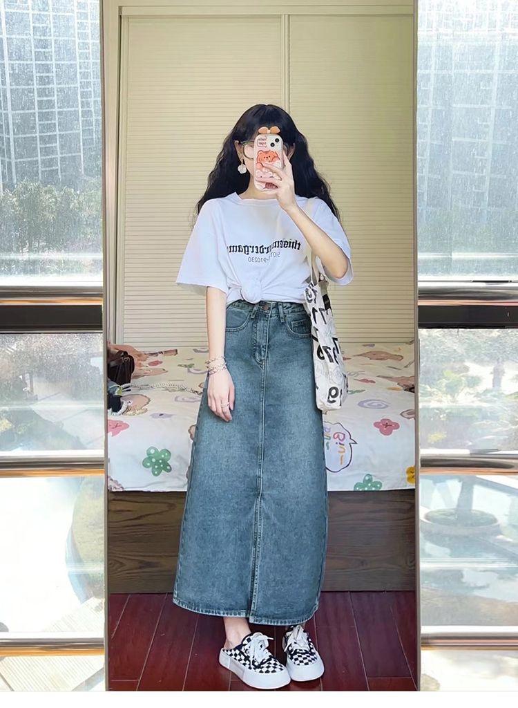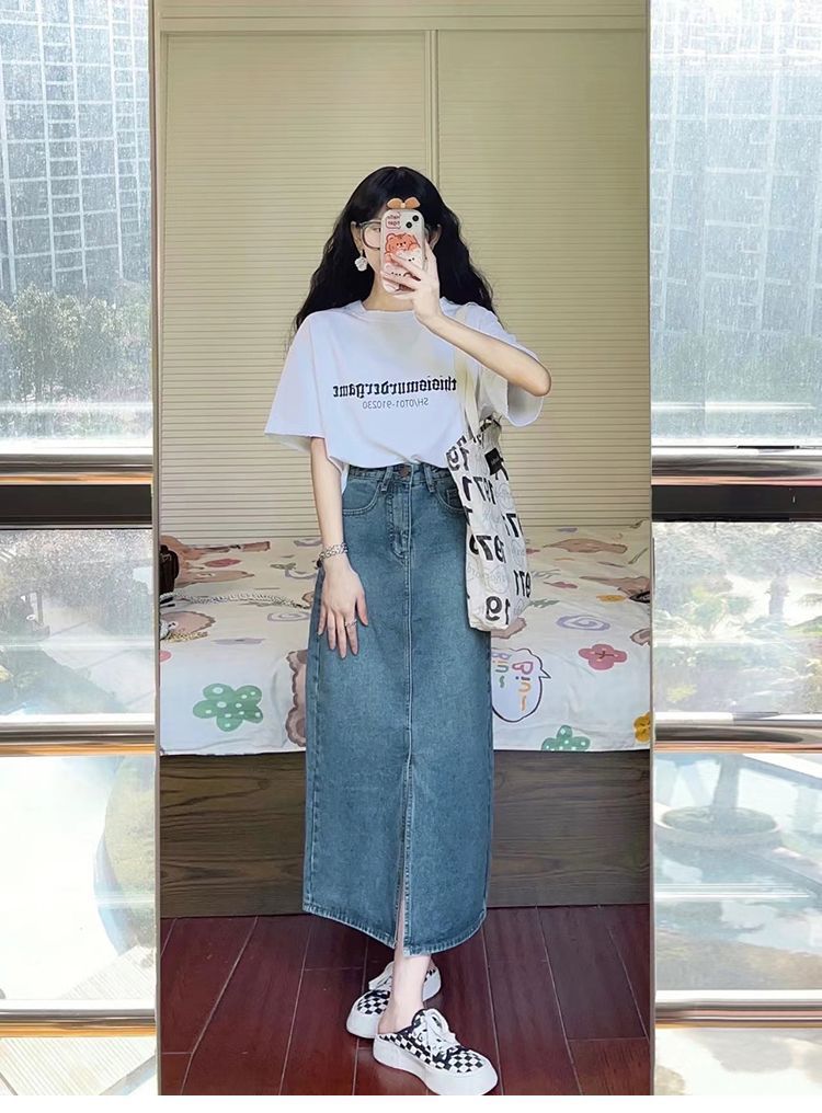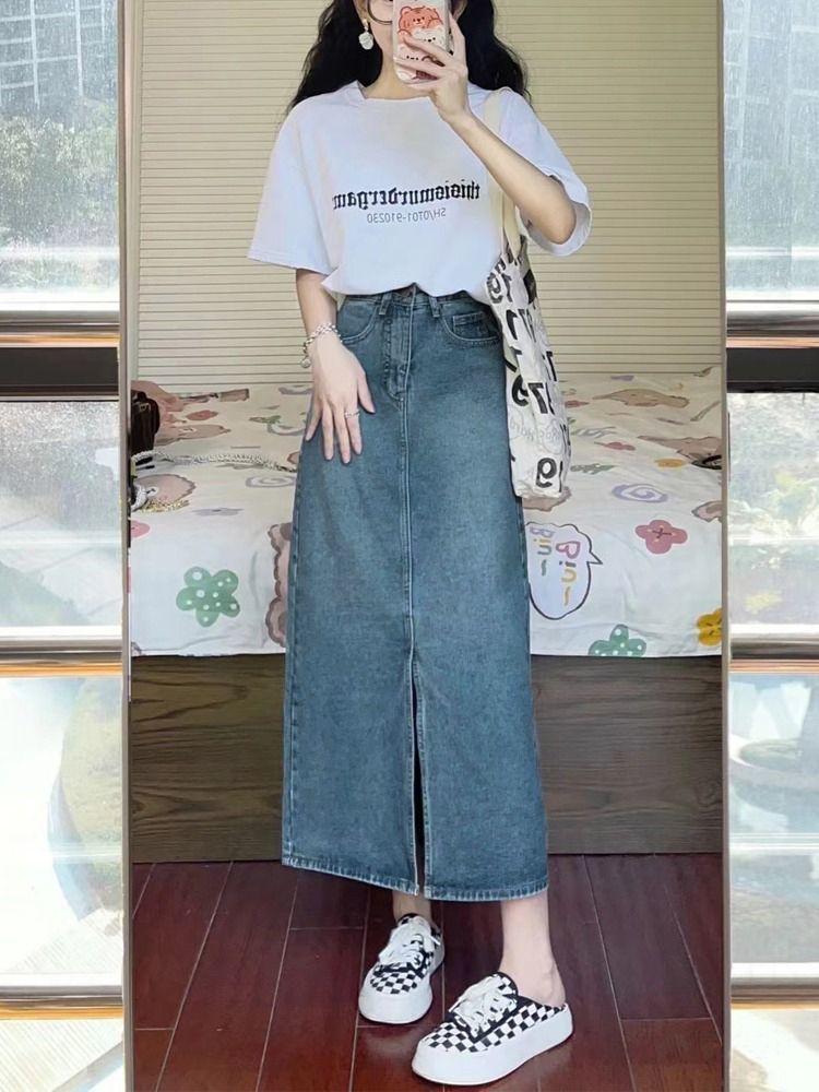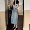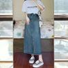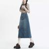 Falda vaquera vintage azul de cintura alta, adelgazante, con abertura frontal, para mujer, nueva, de longitud media, corte A, combinable, holgada hasta la cadera