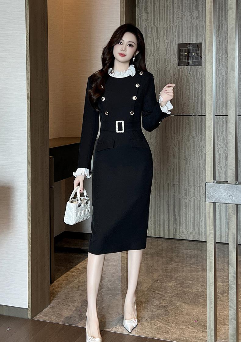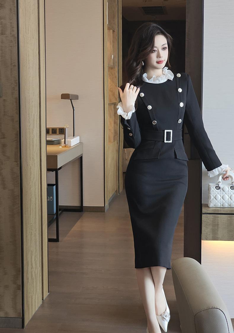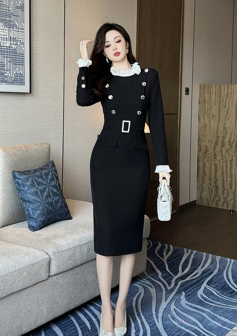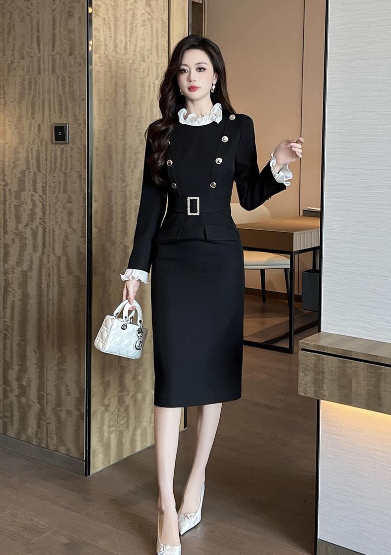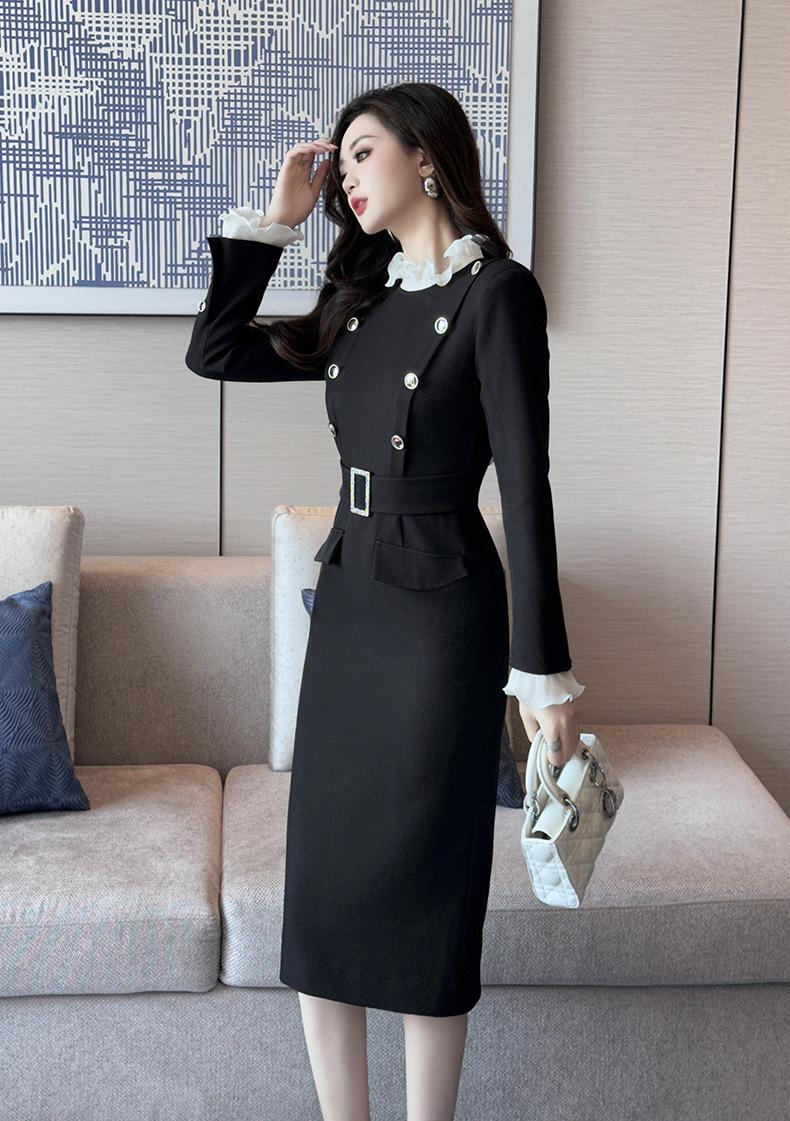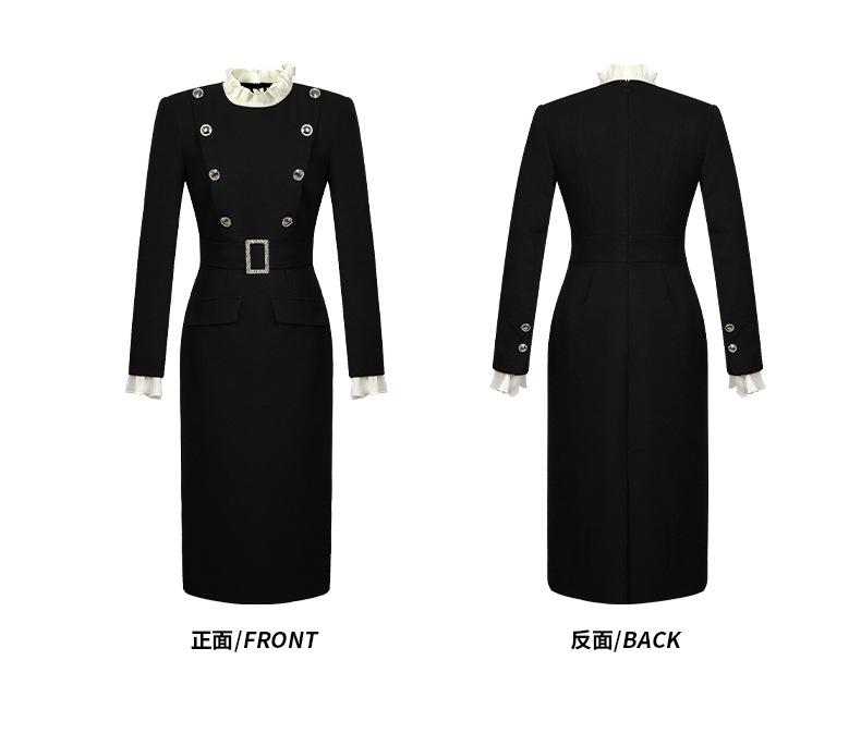 2025 Nueva Ropa de Otoño para Mujer Diseño Francés Vestido Slim de Doble Botonadura con Adorno de Orejas 61121
