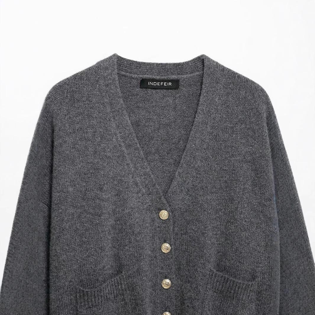 Chaqueta de punto de manga larga de metal simple de moda transfronteriza europea y americana, primavera y otoño 2025, nueva D62037