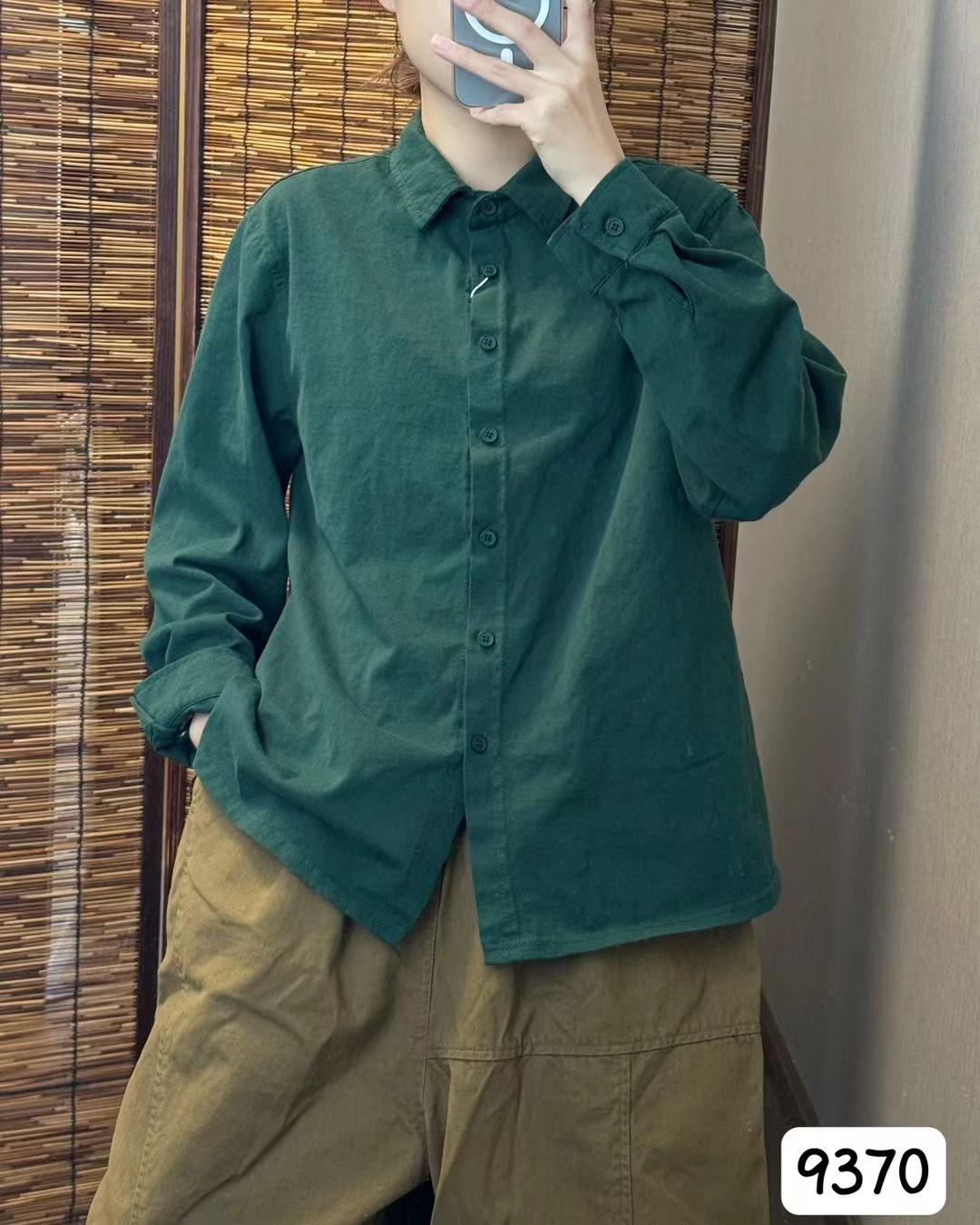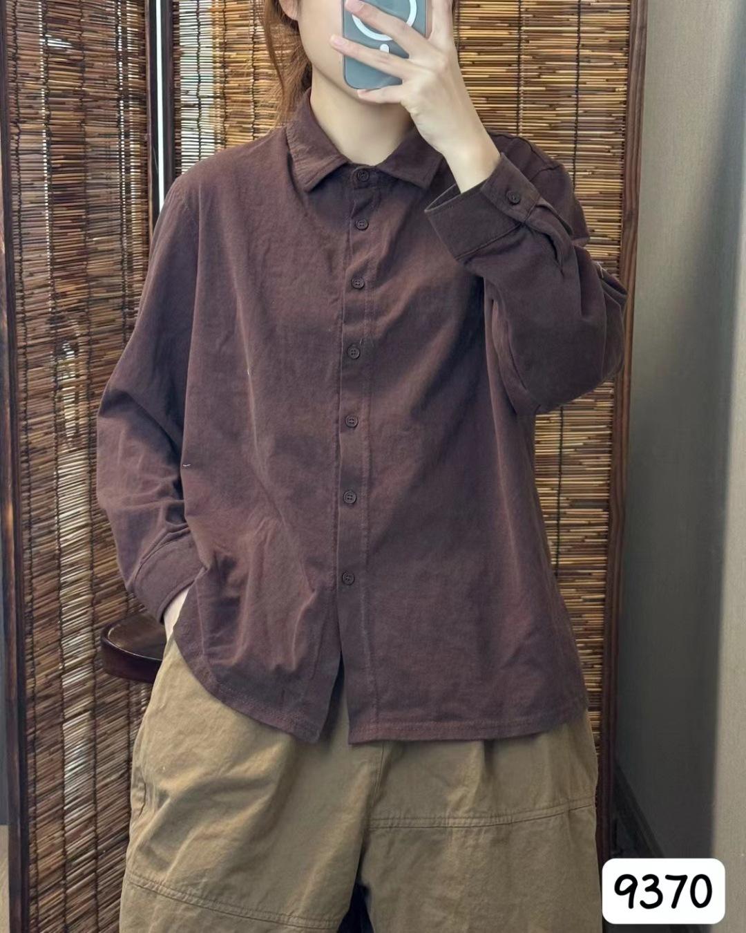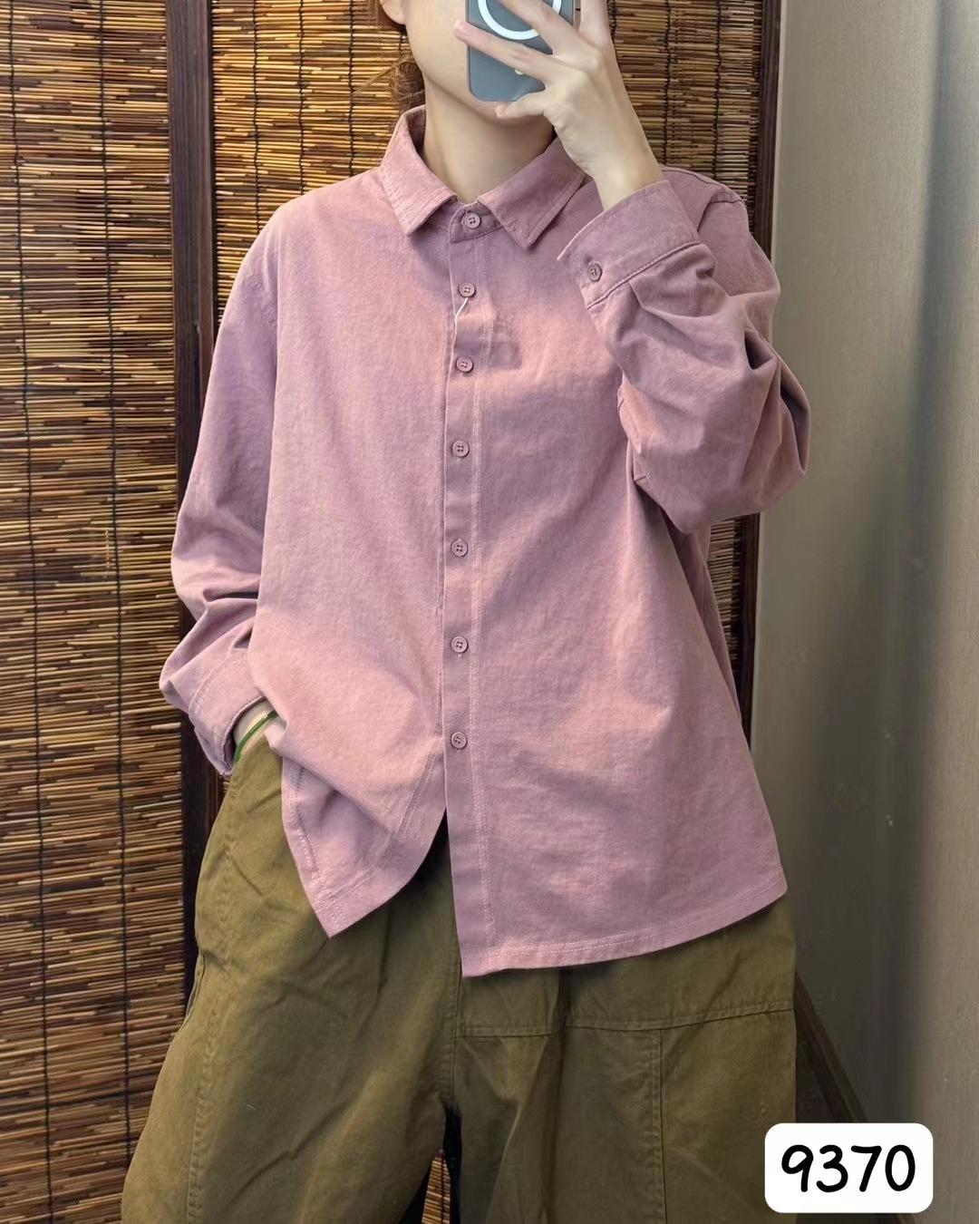 Camisa de lino y algodón para mujer, color liso, elegante, sencilla, de alta gama, primavera, nueva, holgada, combinable, informal, cárdigan de moda 9370