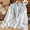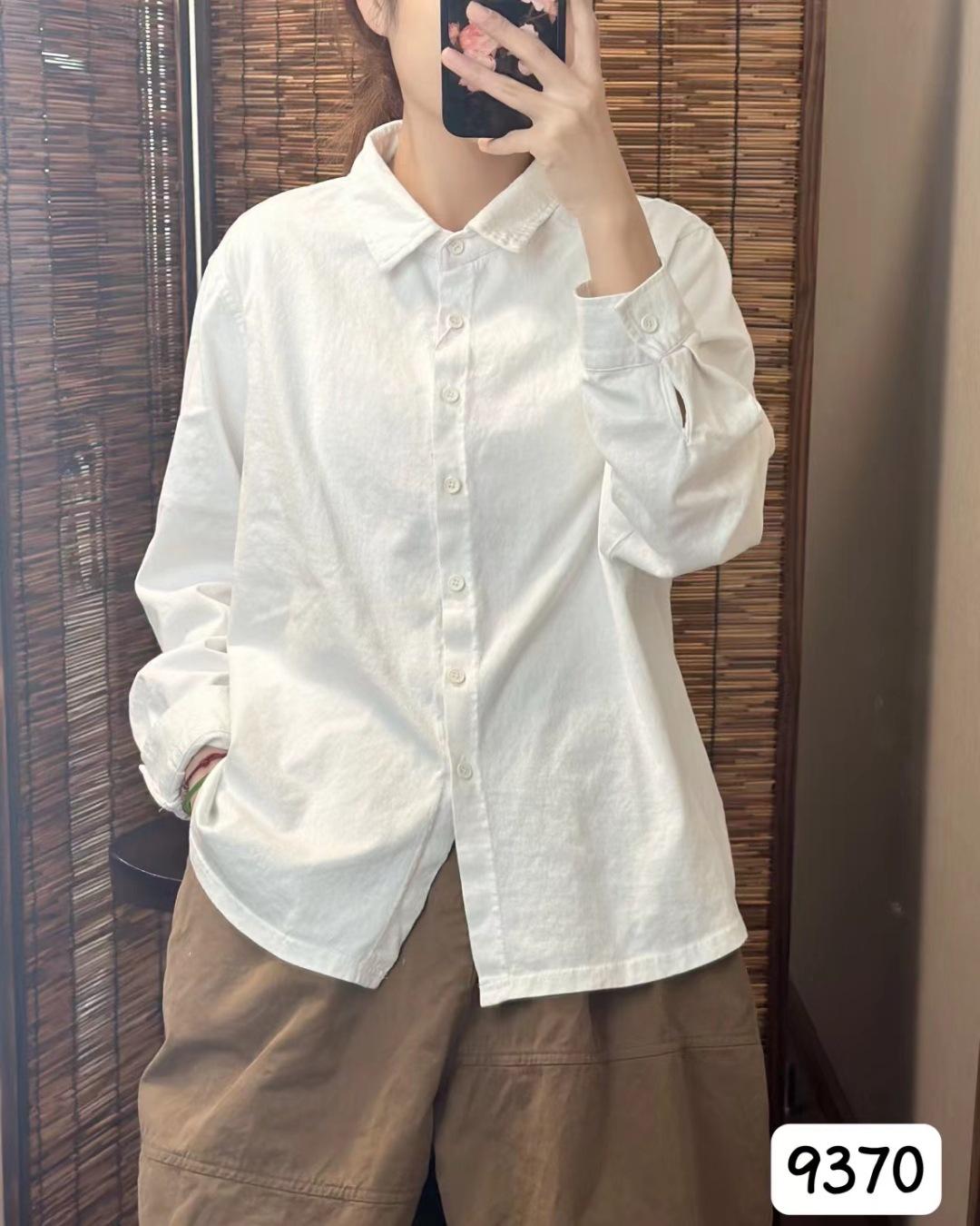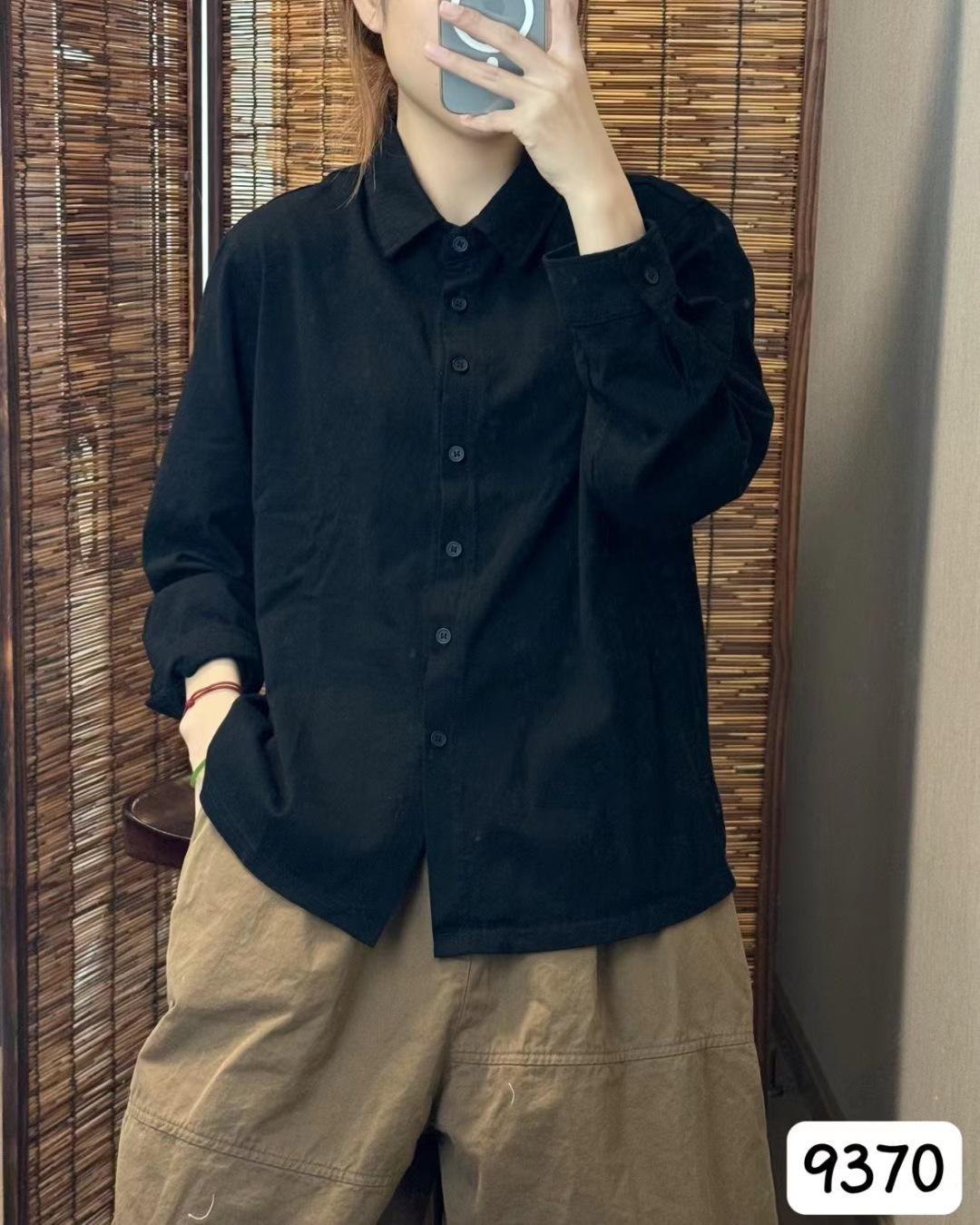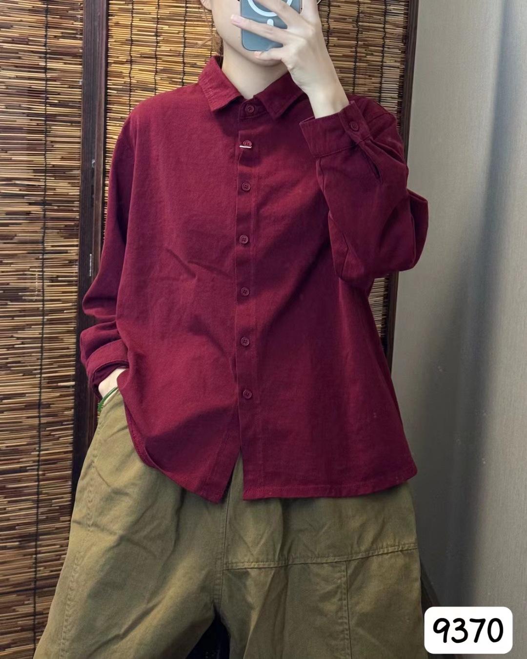 Camisa de lino y algodón para mujer, color liso, elegante, sencilla, de alta gama, primavera, nueva, holgada, combinable, informal, cárdigan de moda 9370