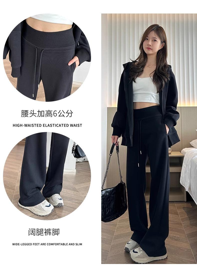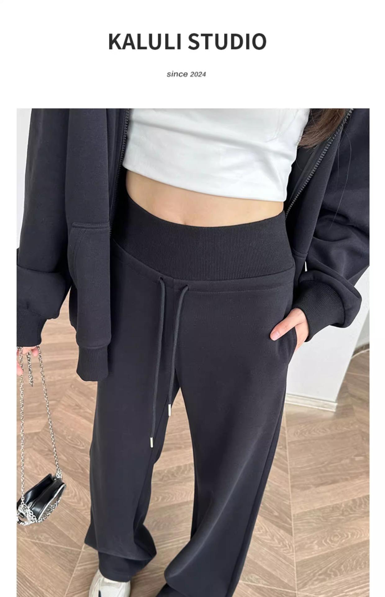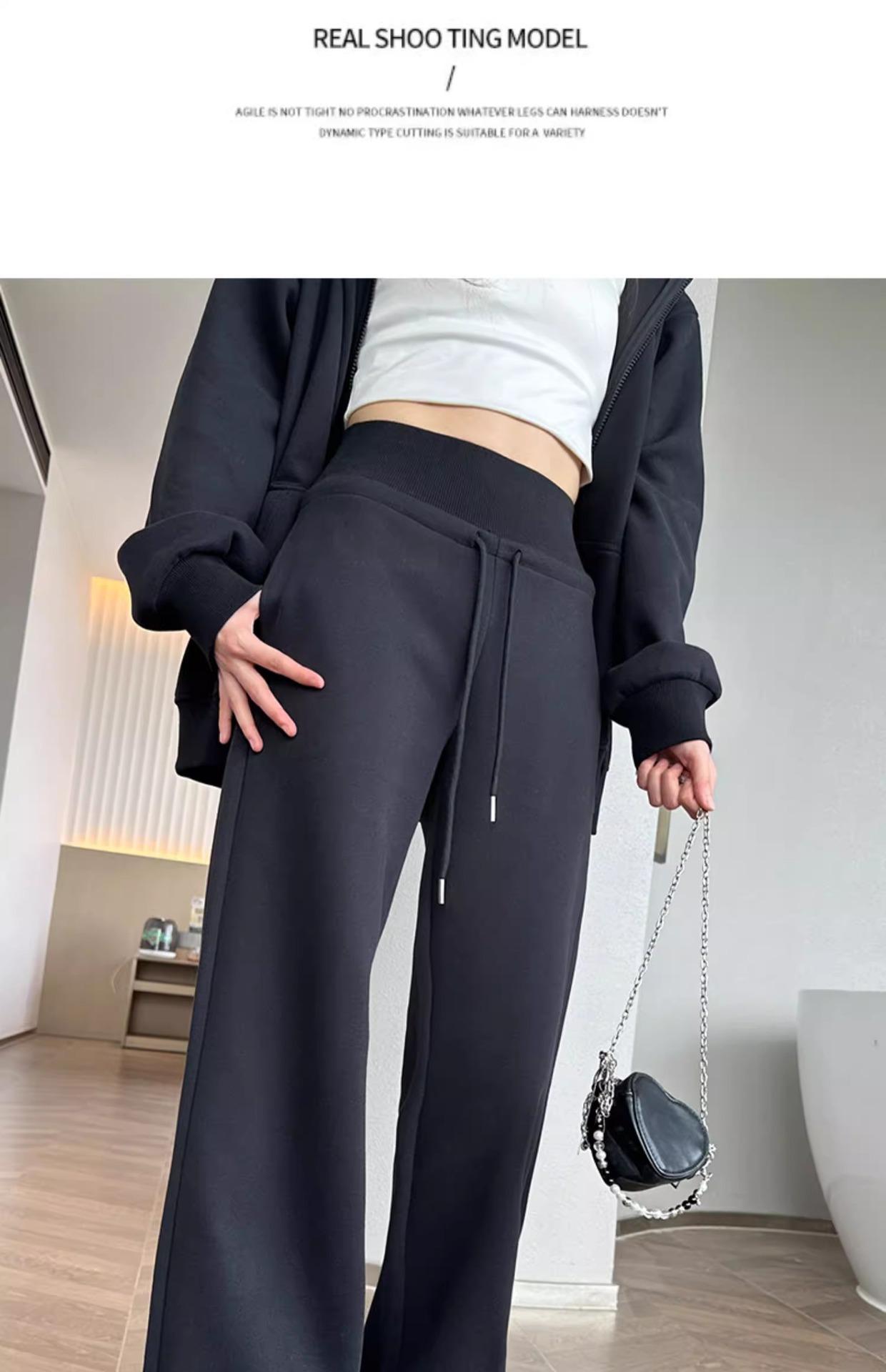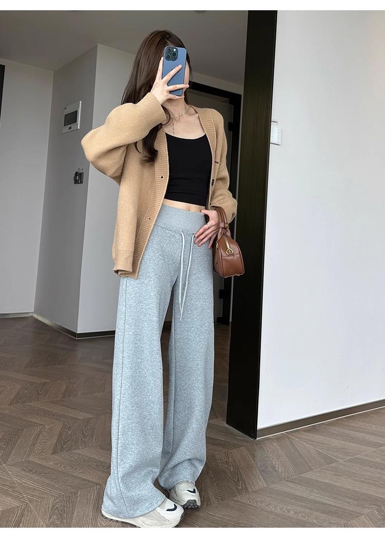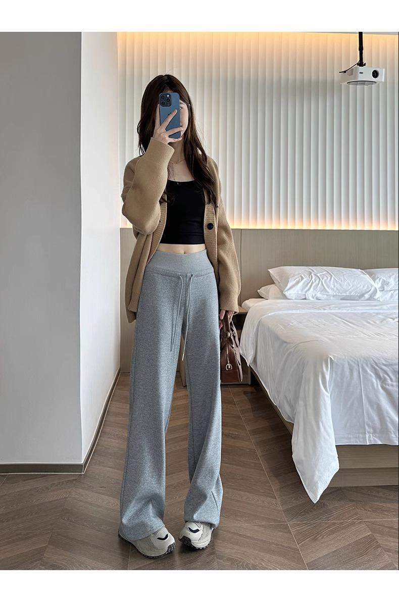 Pantalones Rectos Deportivos de Otoño e Invierno para Mujer 2025 Primavera y Otoño Cintura Alta Casual Estilo Holgazán Sueltos Moda Pantalones de Pierna Ancha