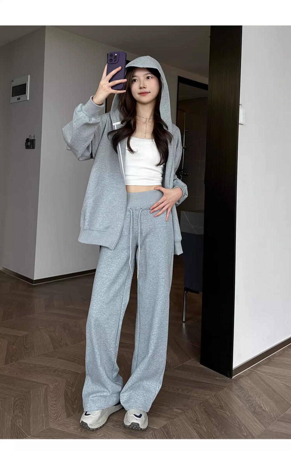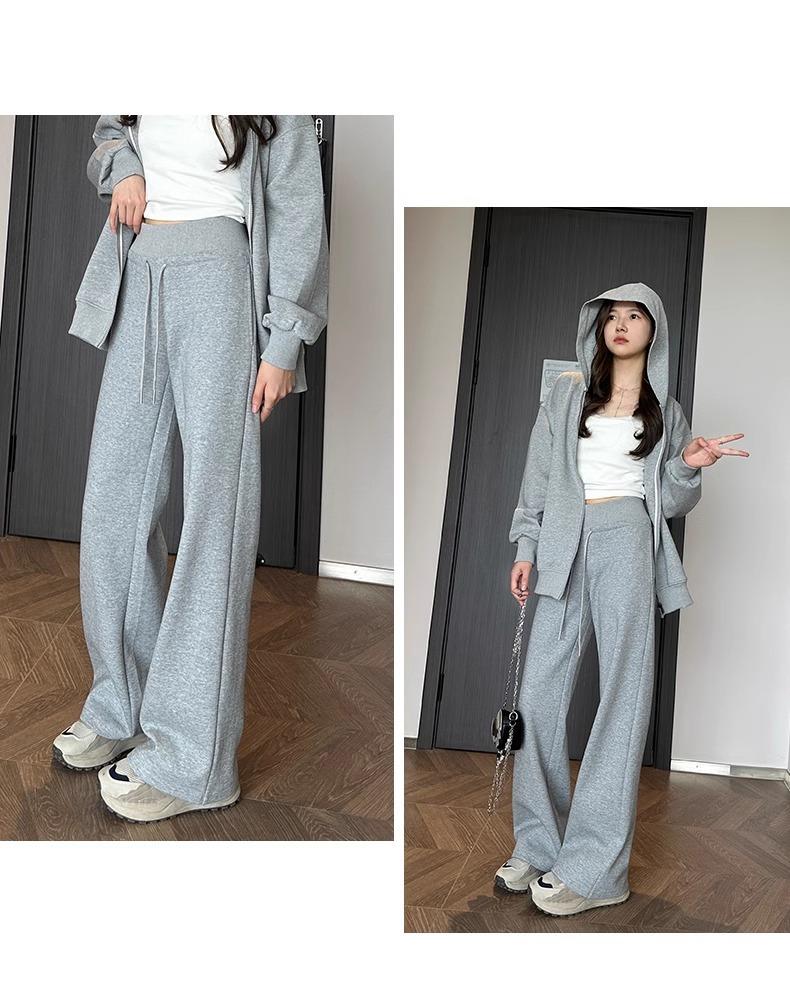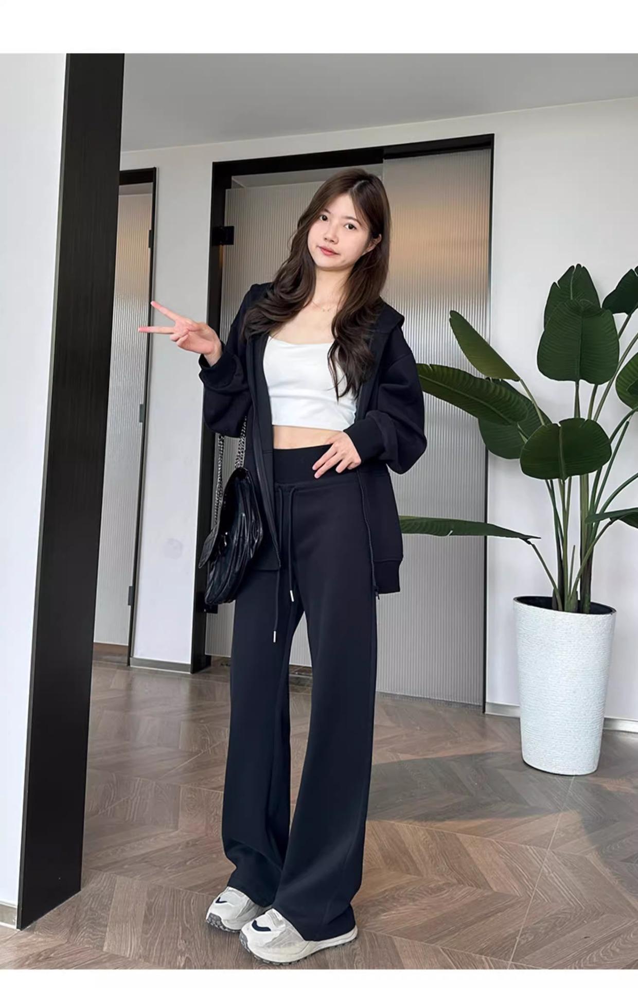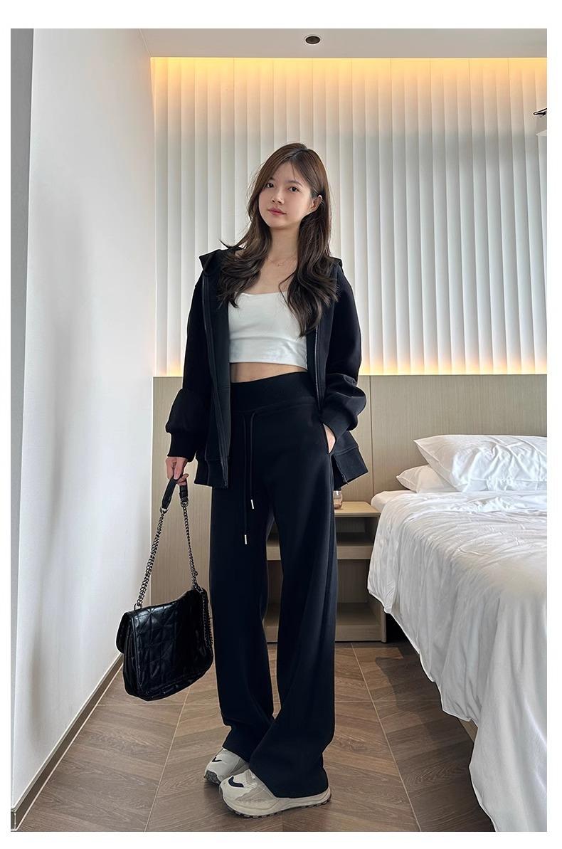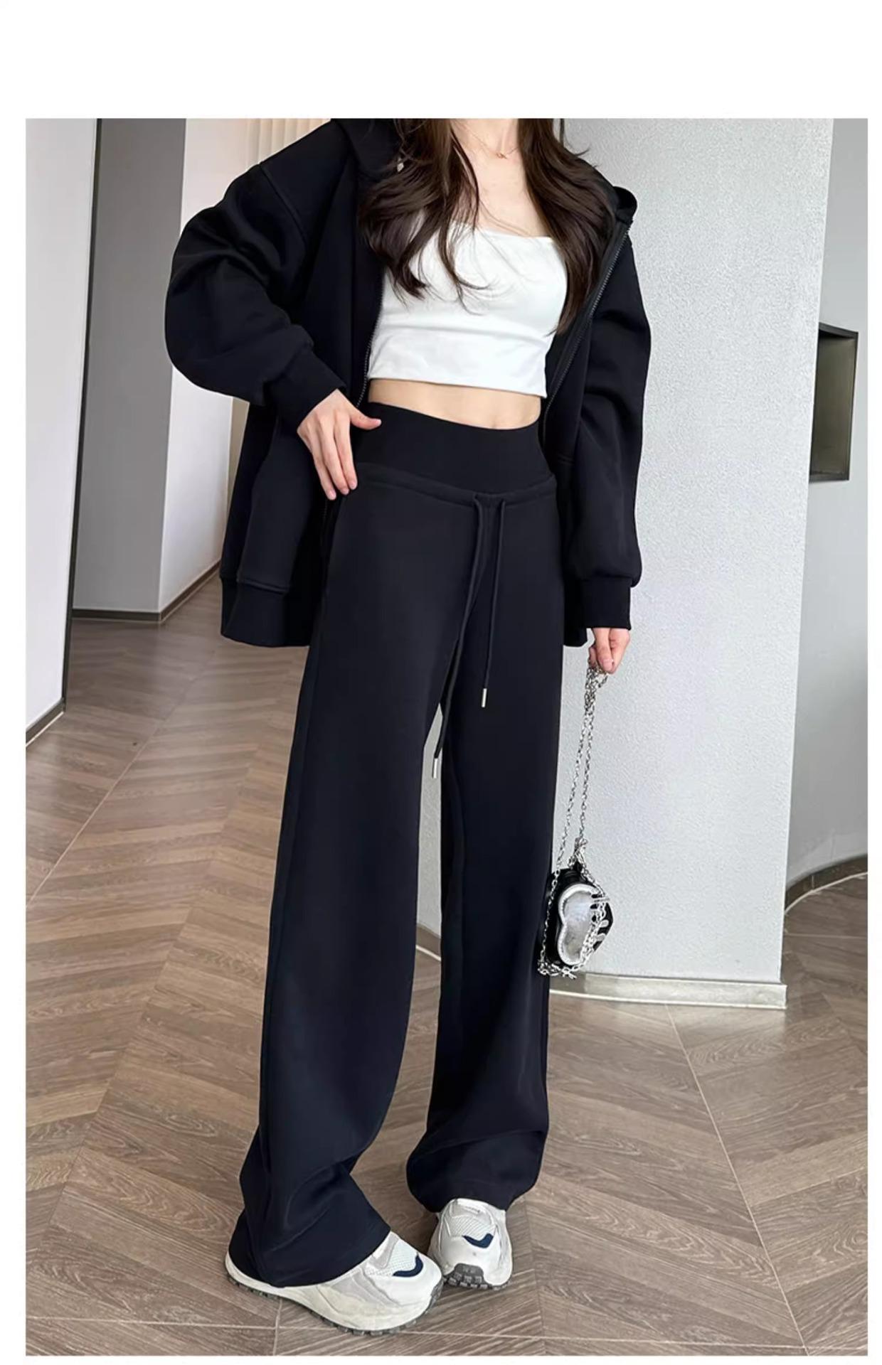 Pantalones Rectos Deportivos de Otoño e Invierno para Mujer 2025 Primavera y Otoño Cintura Alta Casual Estilo Holgazán Sueltos Moda Pantalones de Pierna Ancha