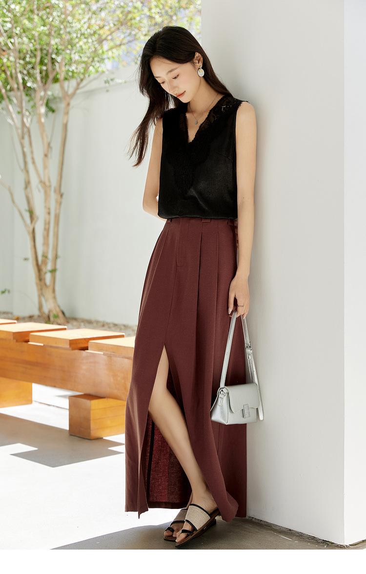 Zhen Xi - Nueva falda de cintura alta con abertura para mujer, vestido informal holgado y ajustado TQ536
