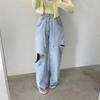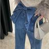 Vestido surcoreano para mujer, Dongdaemun, tiro alto, primavera, nueva moda, color lavado, cintura trasera distintiva, lazo, vaqueros de pierna ancha a la moda.