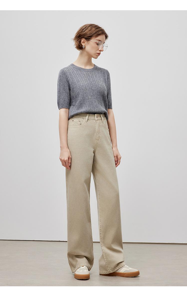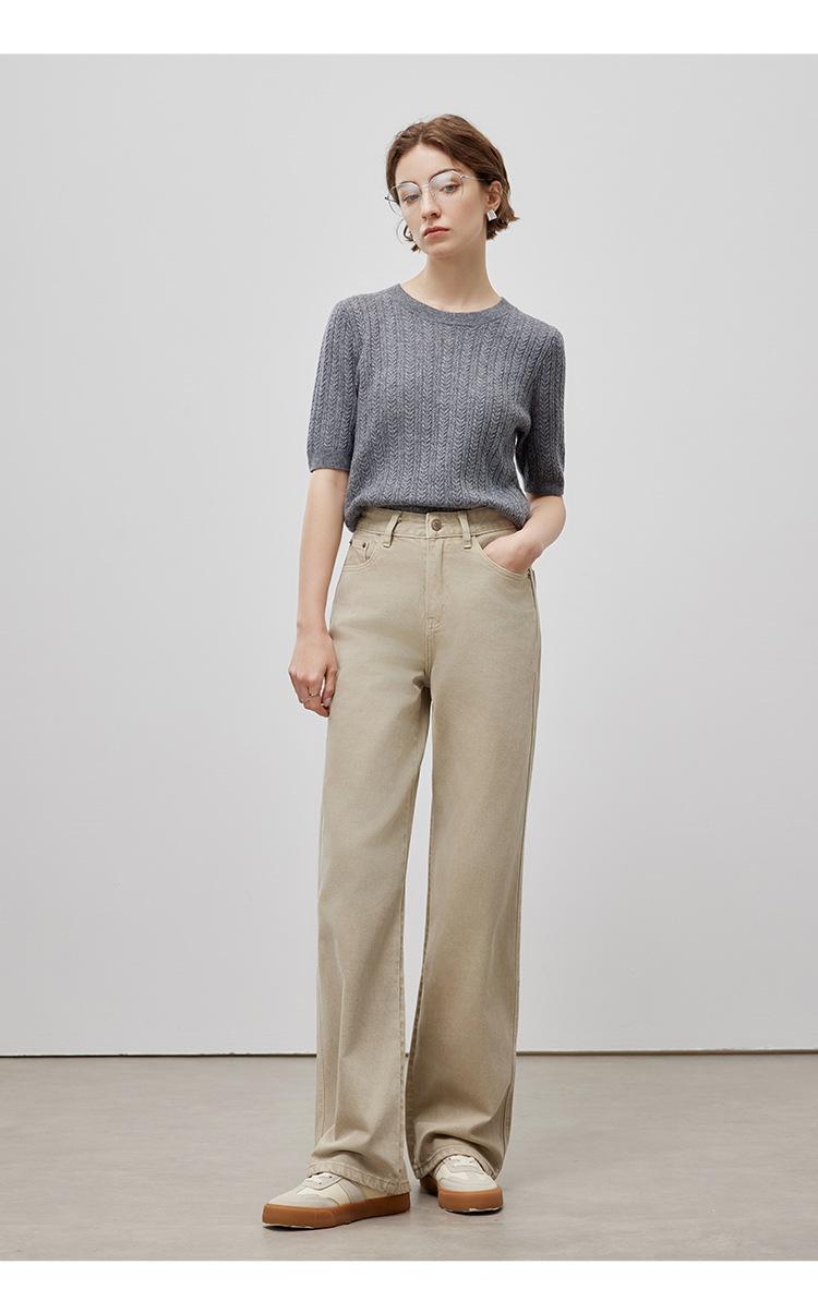 Pantalones vaqueros holgados de algodón color albaricoque para mujer, de alta calidad, de alta gama, primavera 2025.
