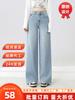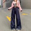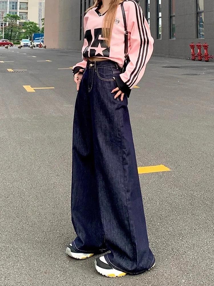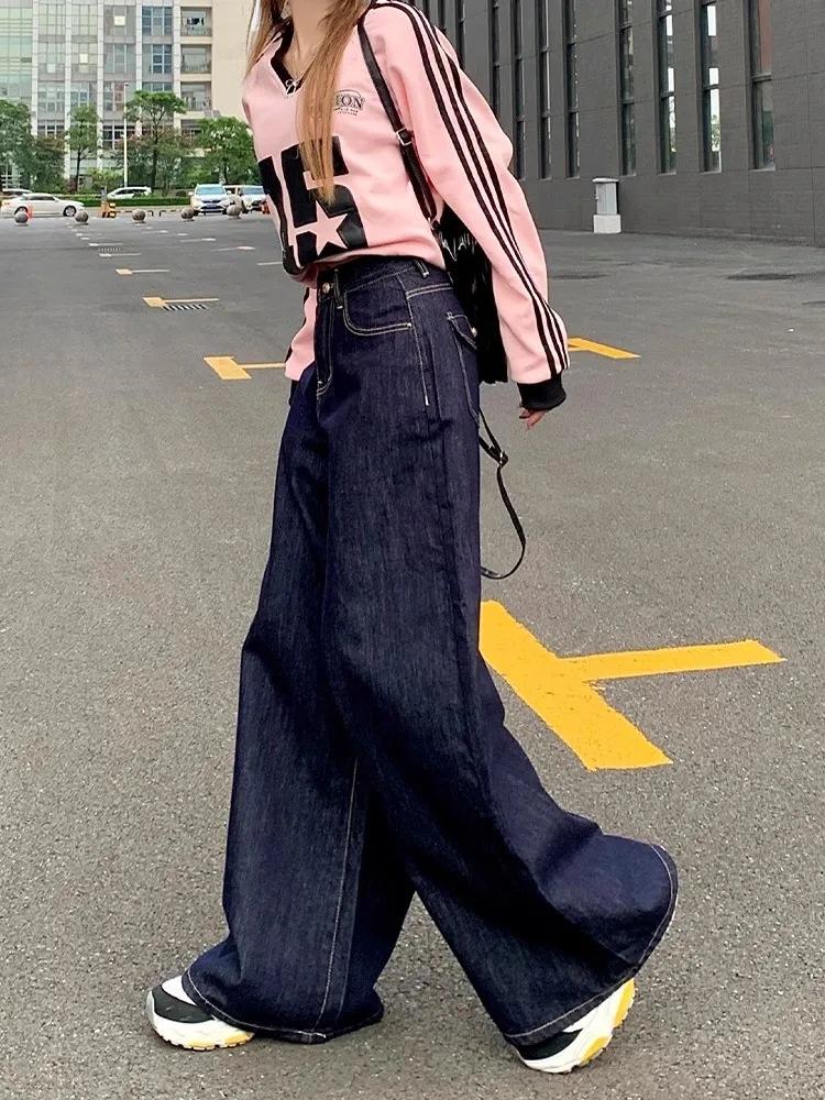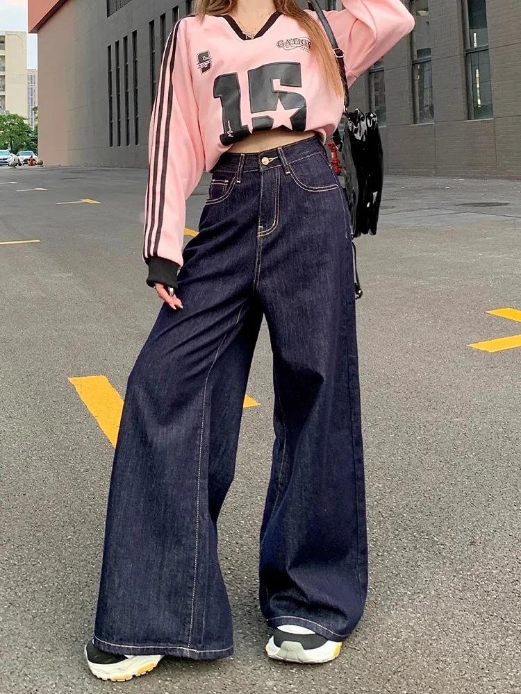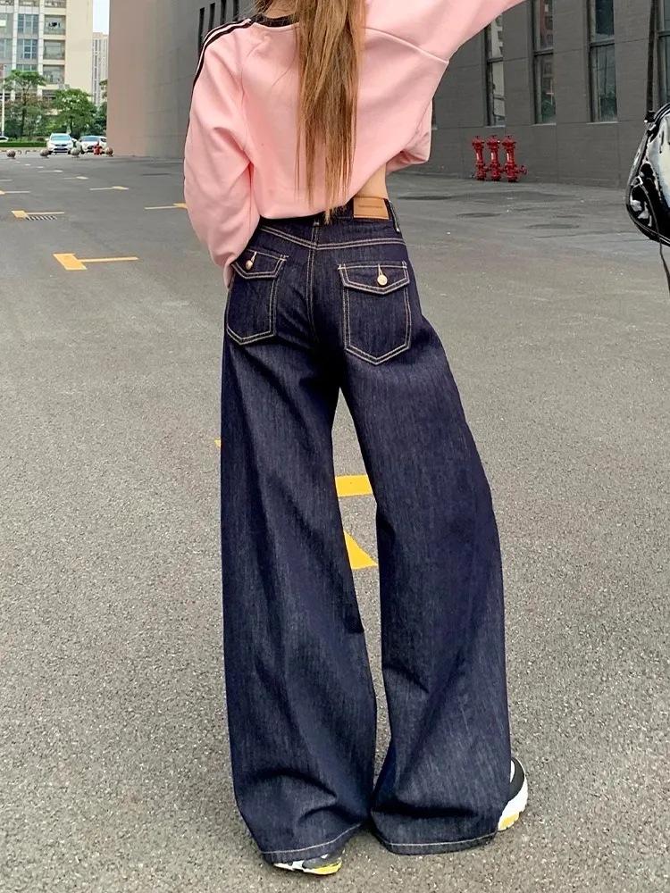 Vaqueros vintage azul oscuro de pierna ancha para mujer, primavera y otoño 2025, nuevos pantalones holgados de cintura alta y corte ajustado.