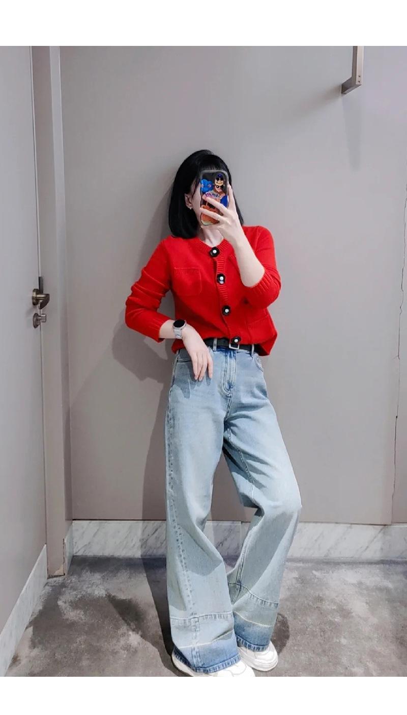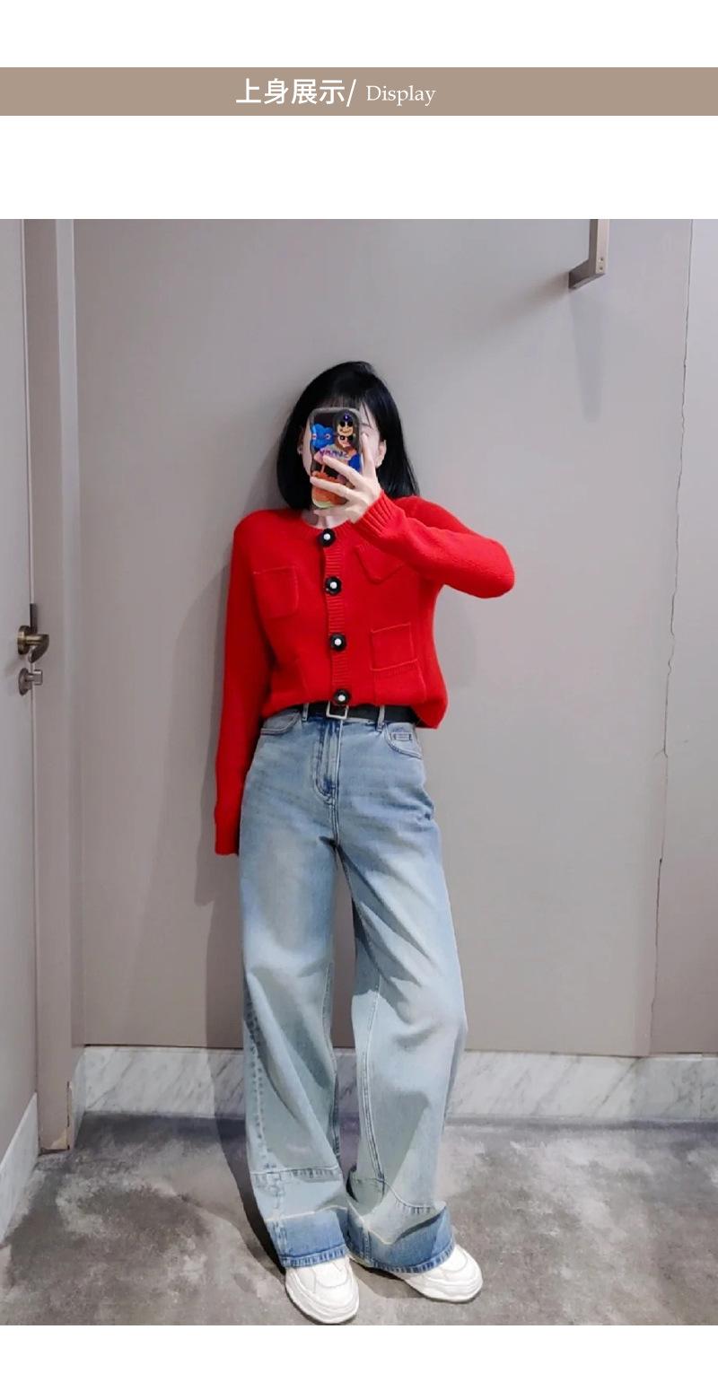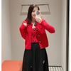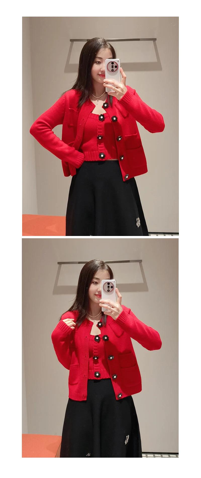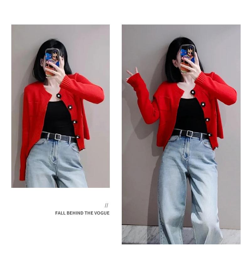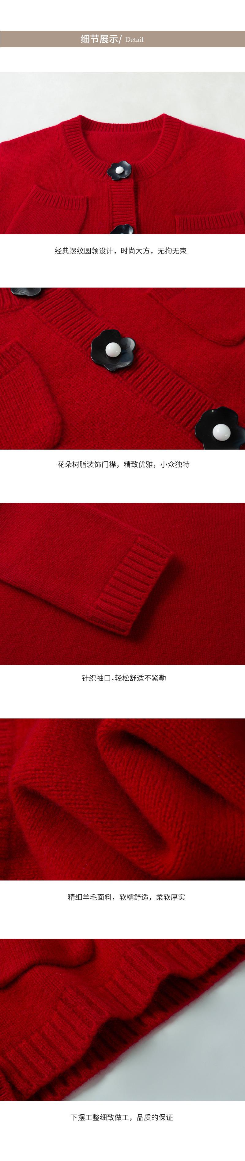 Abrigo de lana con botones de flores y cuello redondo rojo, cárdigan de punto suelto para mujer, primavera 2025, nuevo