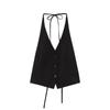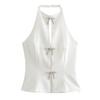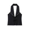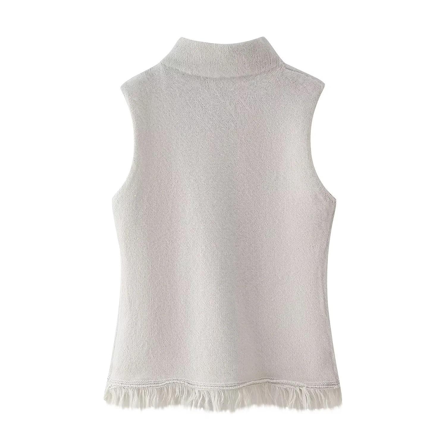 Top sin mangas con borlas y cintura ajustada con cinturón, popular en Internet, para mujeres europeas y americanas.