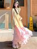 Falda plisada de color sólido con encaje de lazo para mujer, verano, pequeña cintura alta, falda de traje, antideslizante, falda línea A