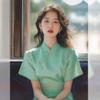 Nuevo estilo chino para mujer, estilo nacional verde, hebilla mejorada, cheongsam, verano, nuevo Hanfu, cuello oblicuo, vestido de estilo femenino