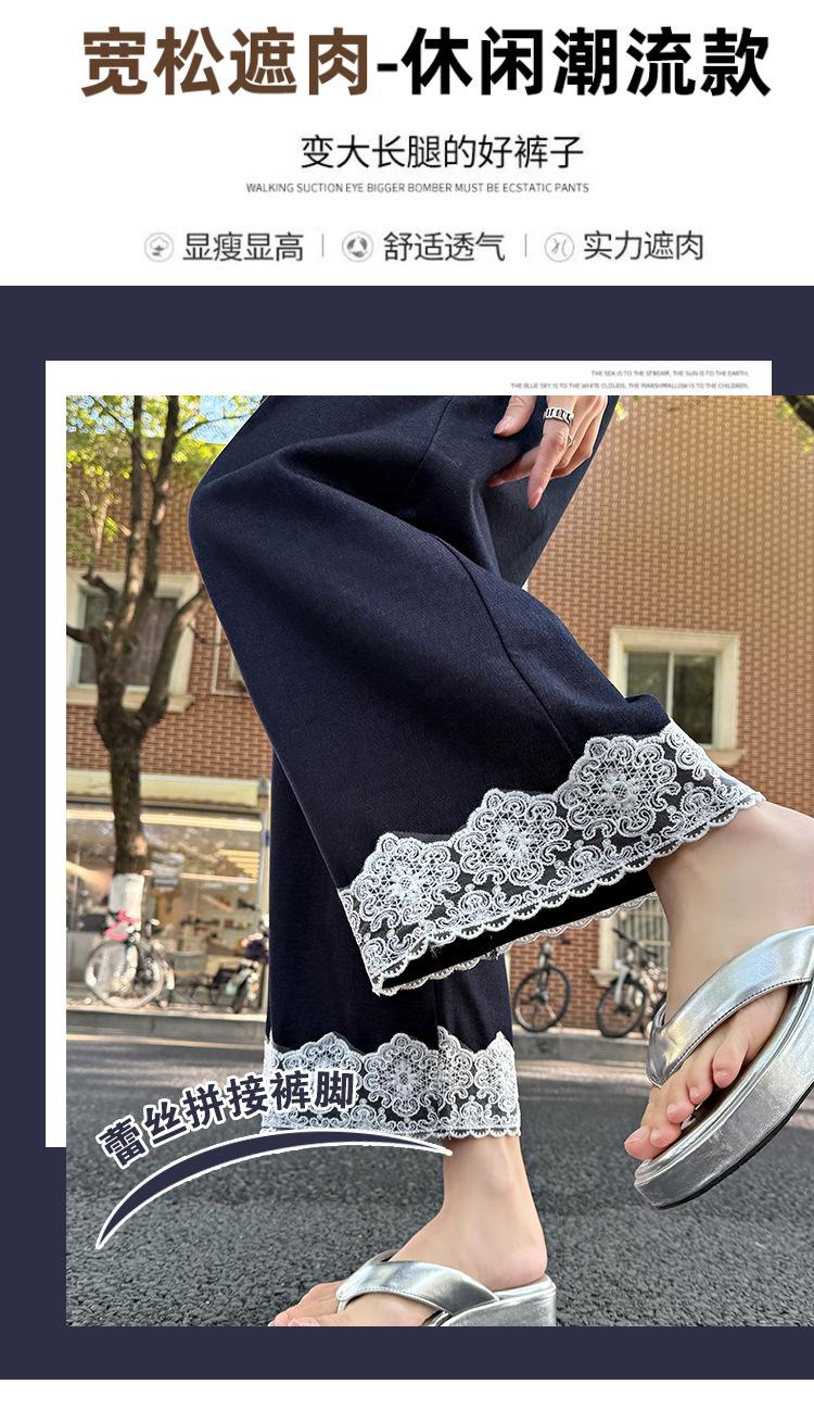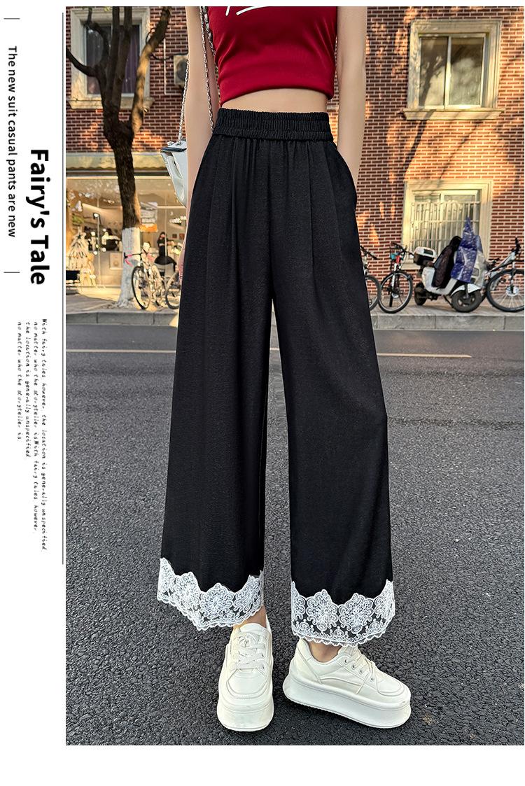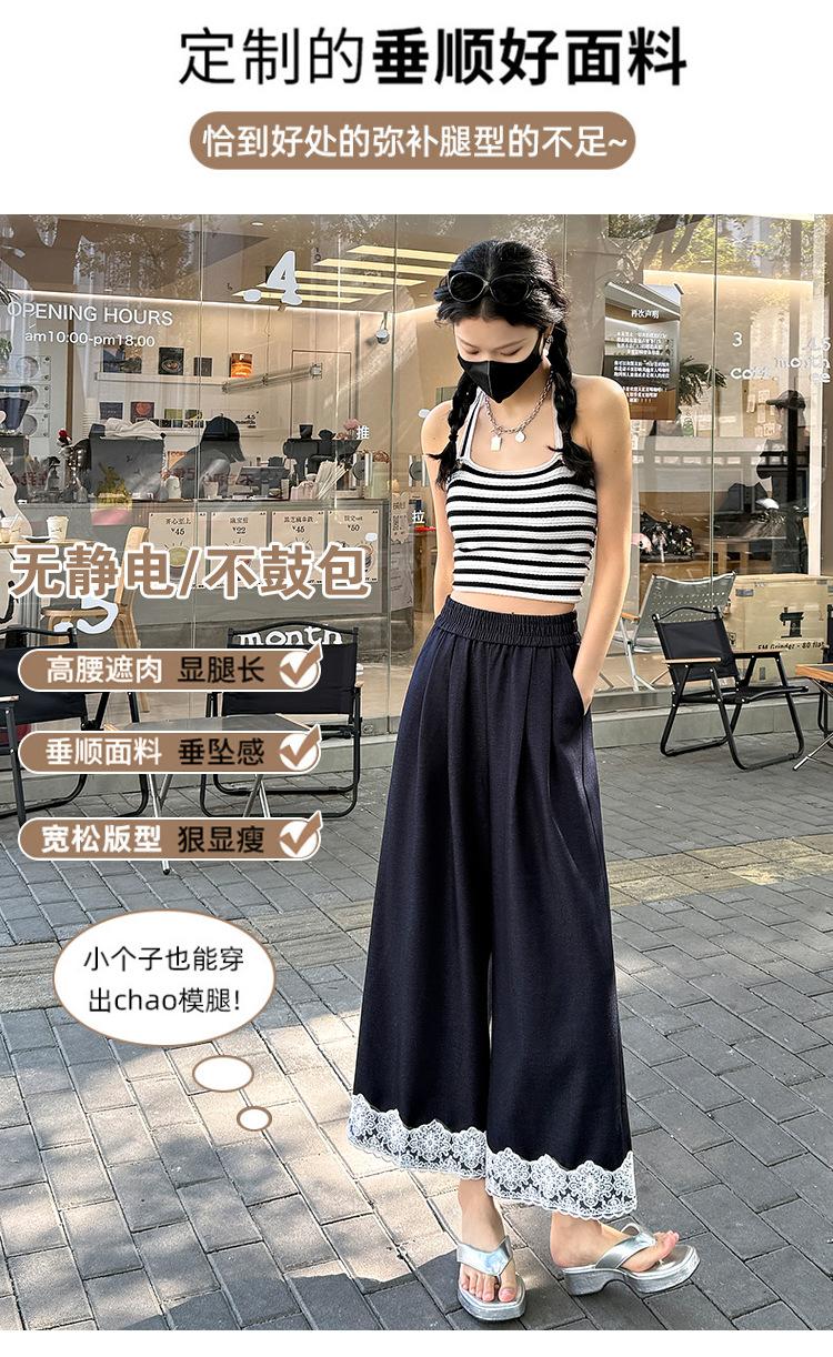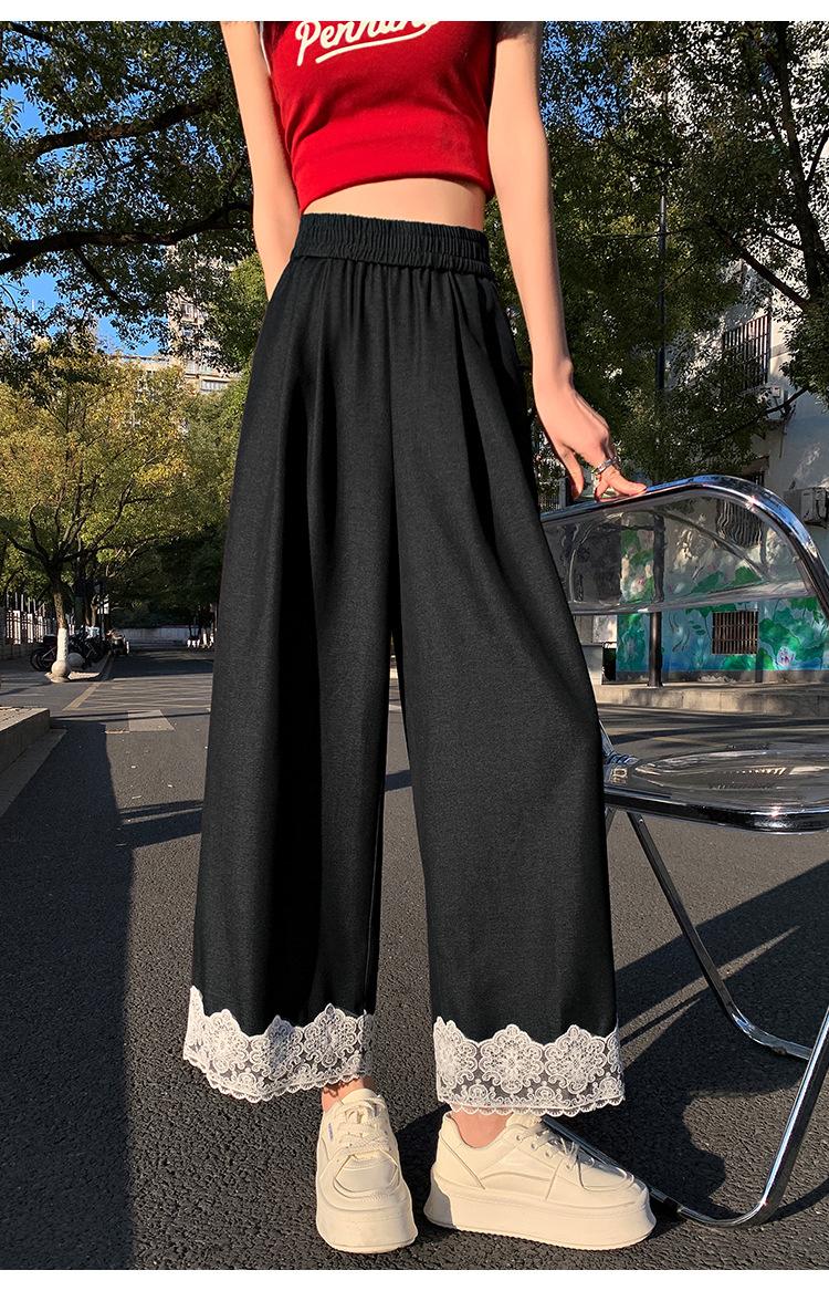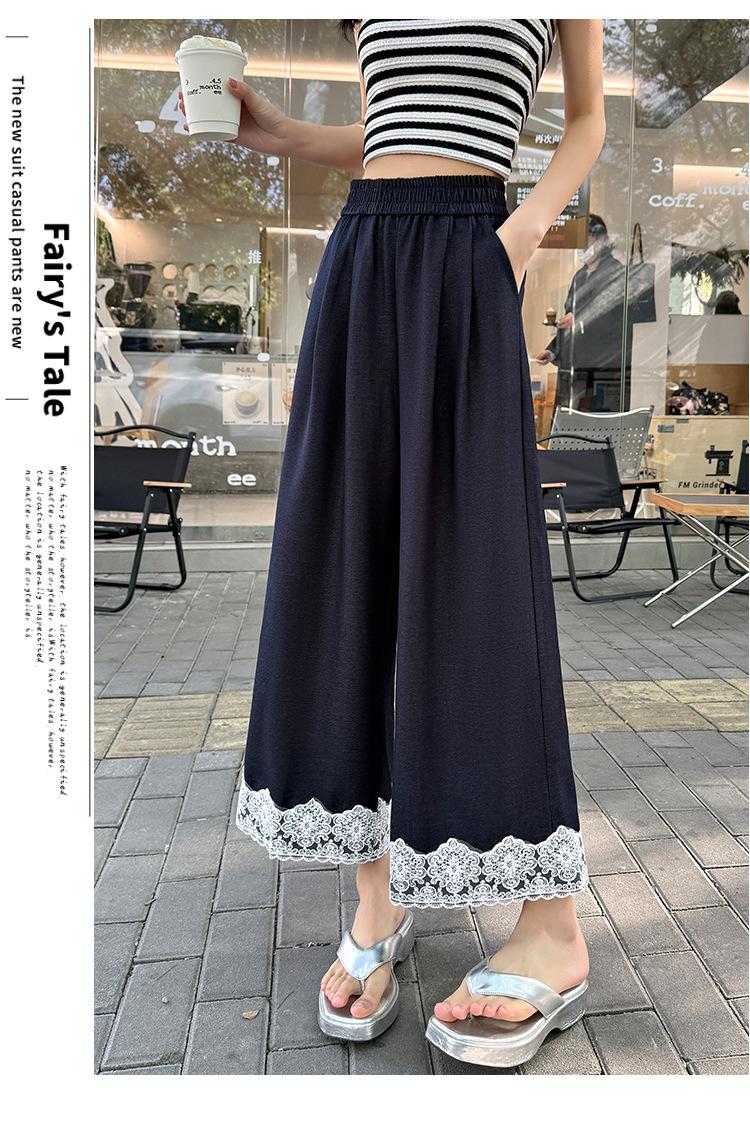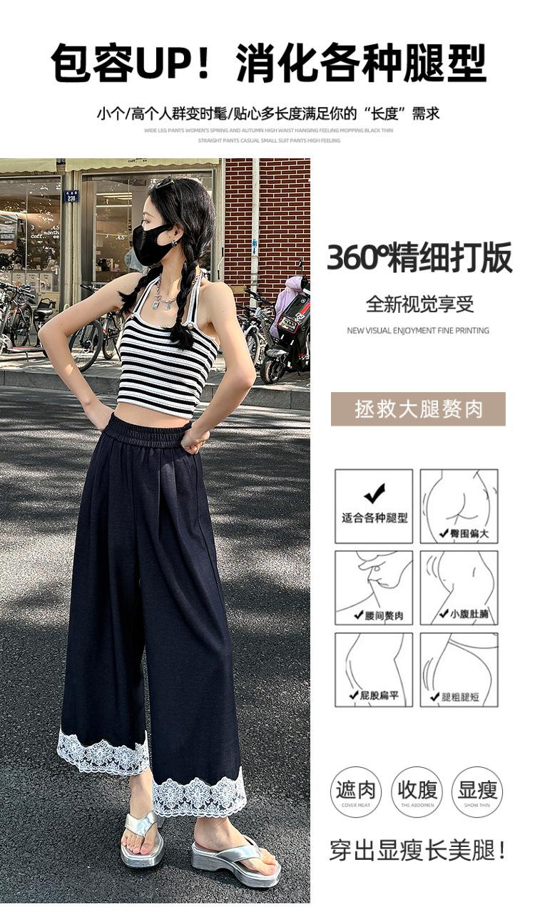 Pantalones Versátiles de Encaje de Pierna Ancha para Mujer Primavera 2025 Nuevo Cintura Alta Adelgazantes Rectos Petite Casuales