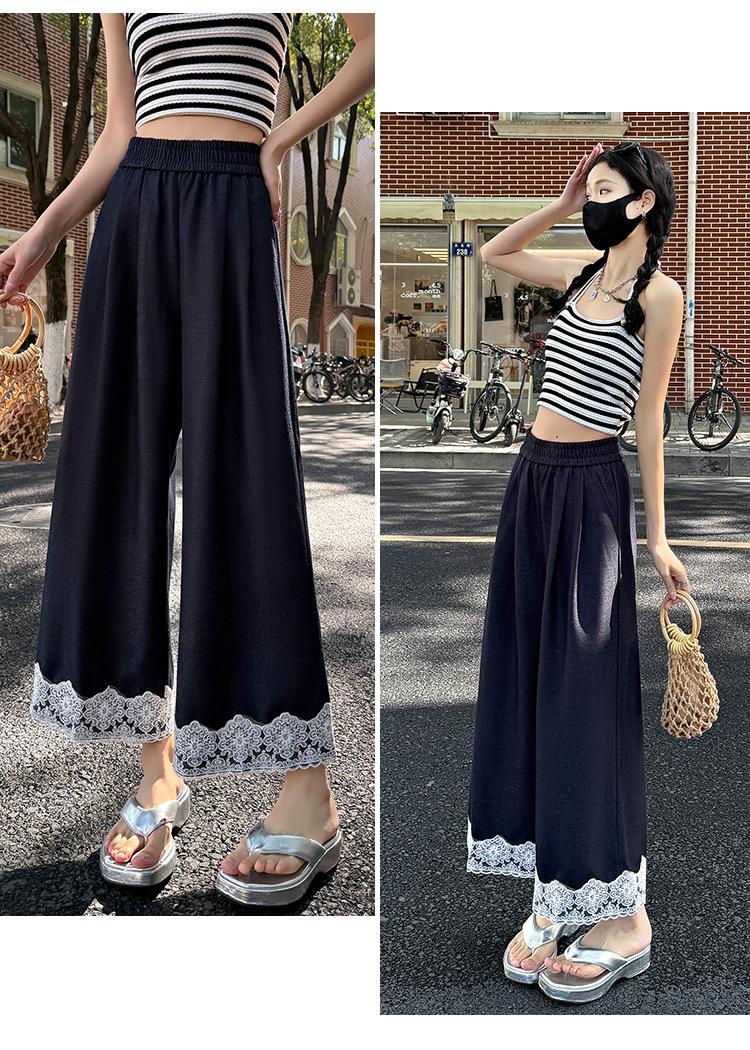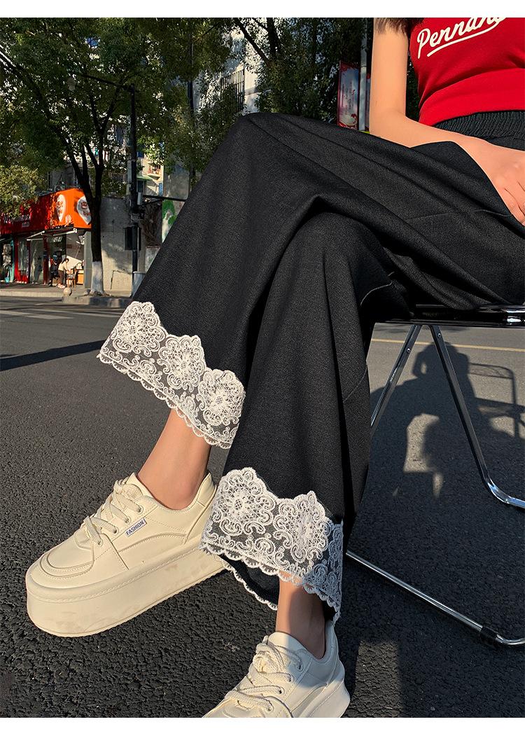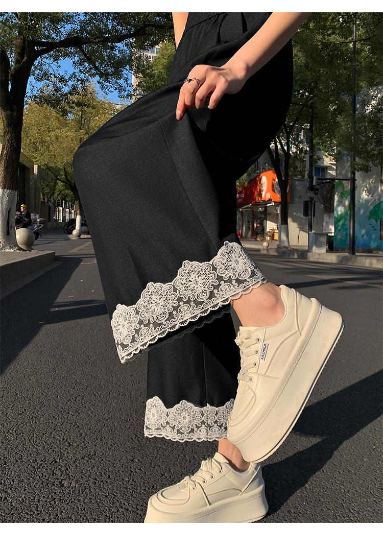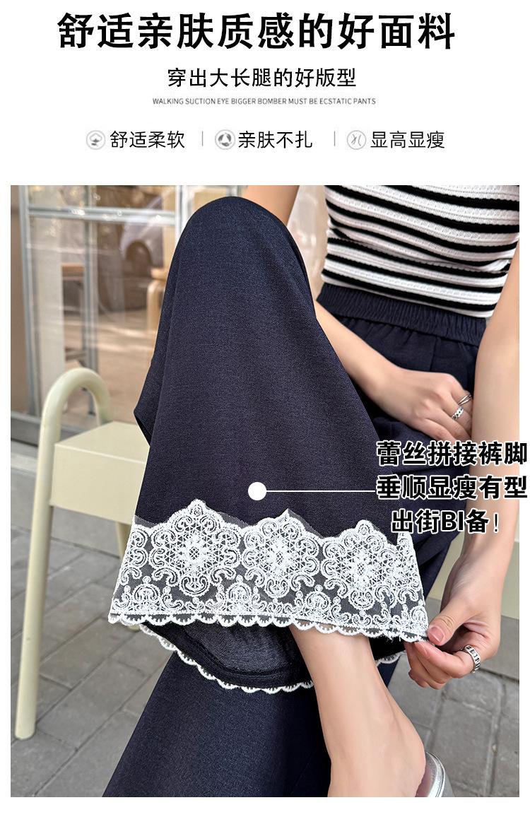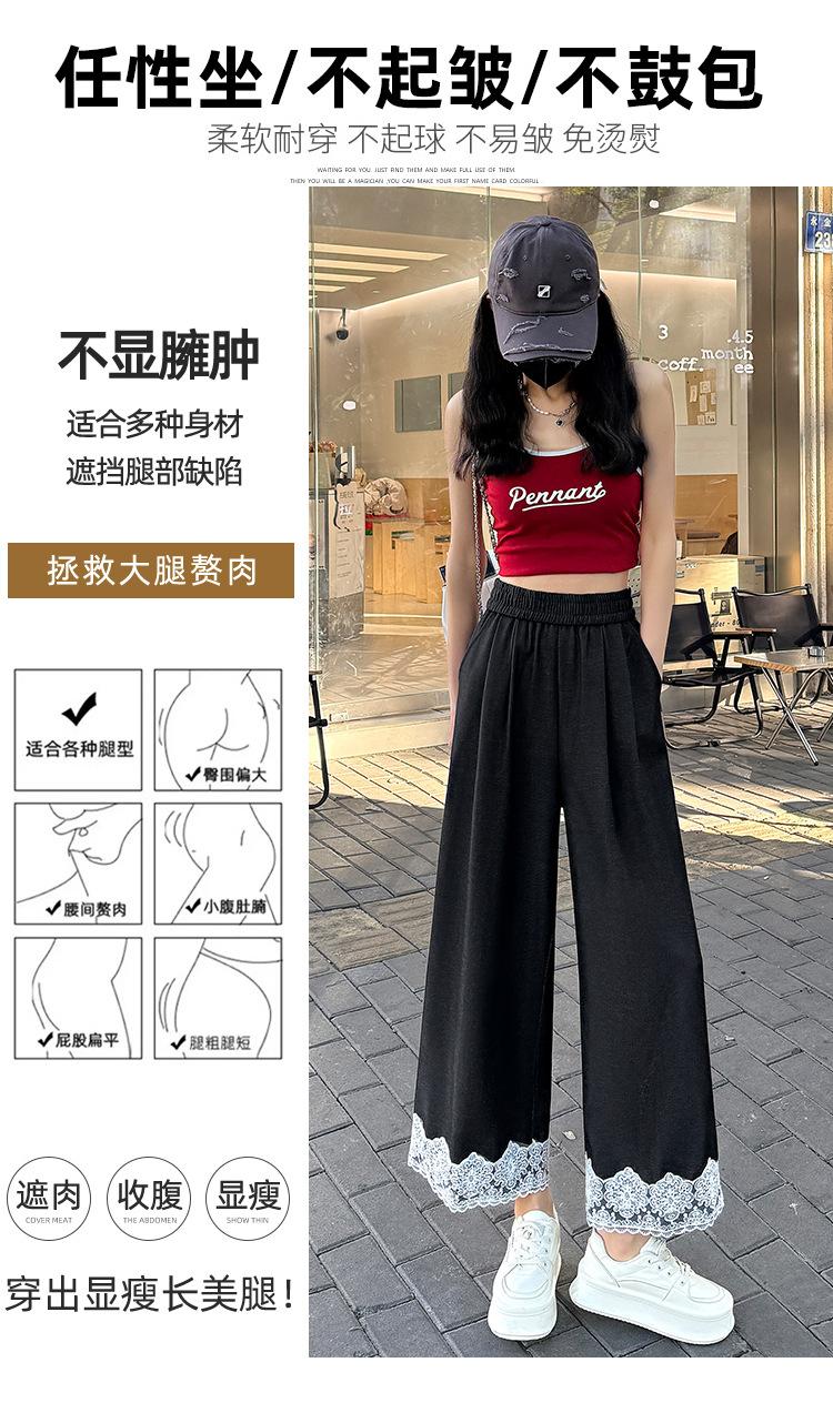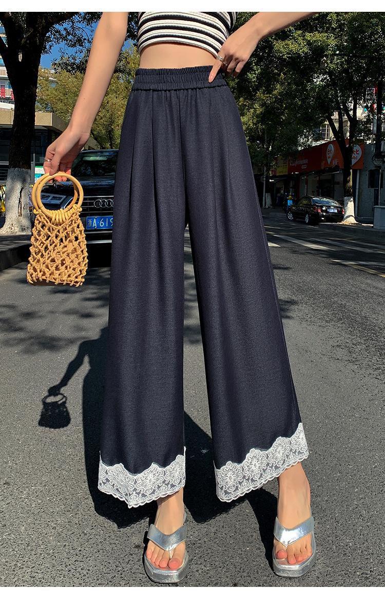 Pantalones Versátiles de Encaje de Pierna Ancha para Mujer Primavera 2025 Nuevo Cintura Alta Adelgazantes Rectos Petite Casuales