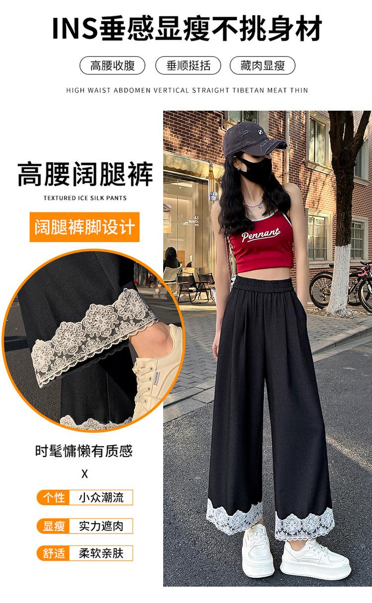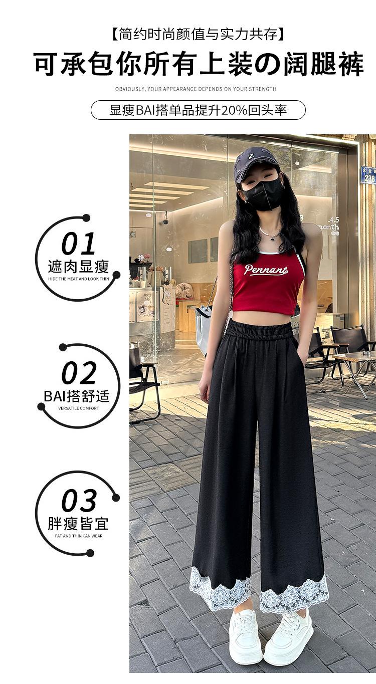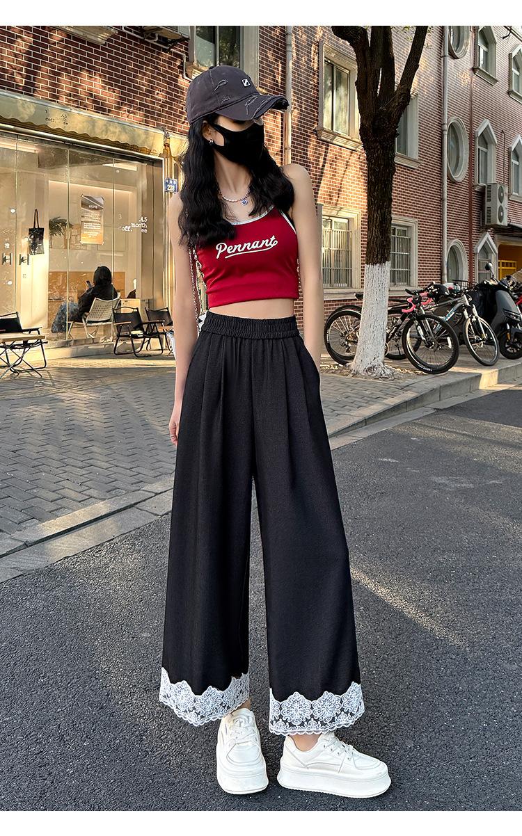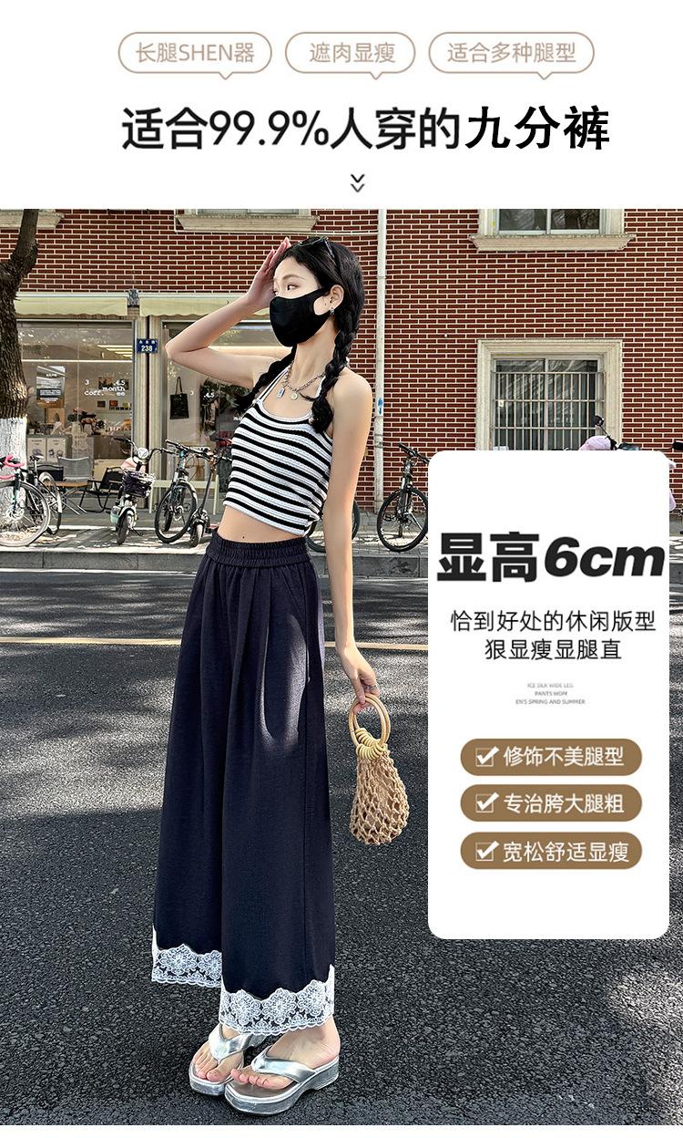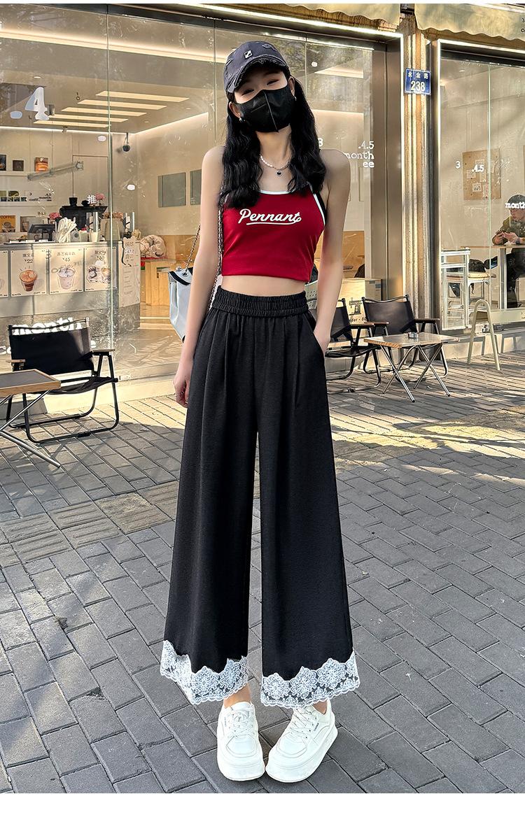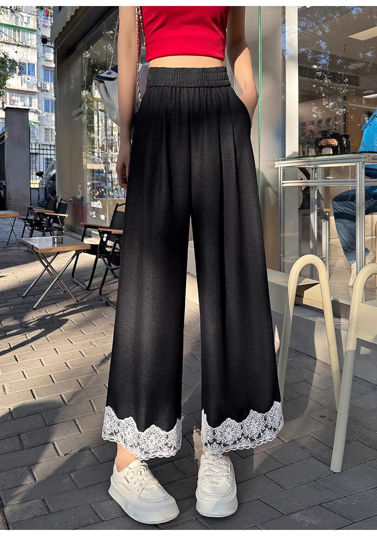 Pantalones Versátiles de Encaje de Pierna Ancha para Mujer Primavera 2025 Nuevo Cintura Alta Adelgazantes Rectos Petite Casuales