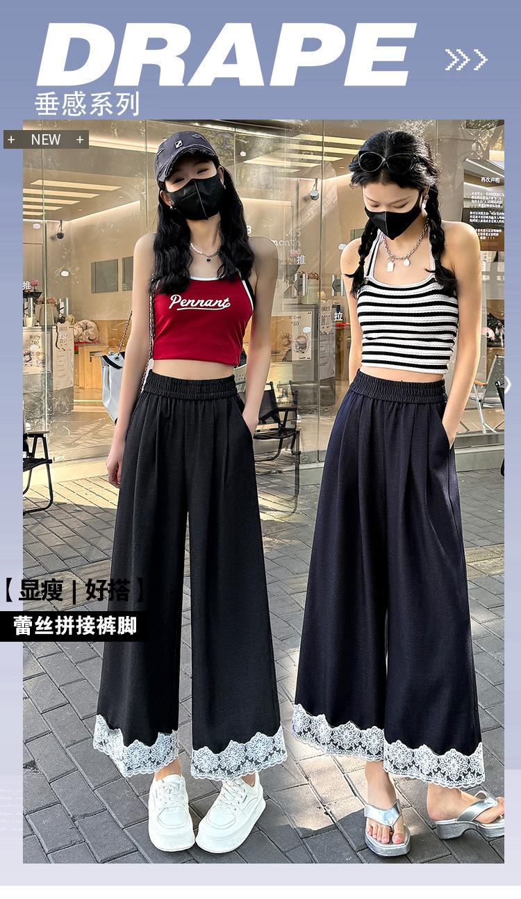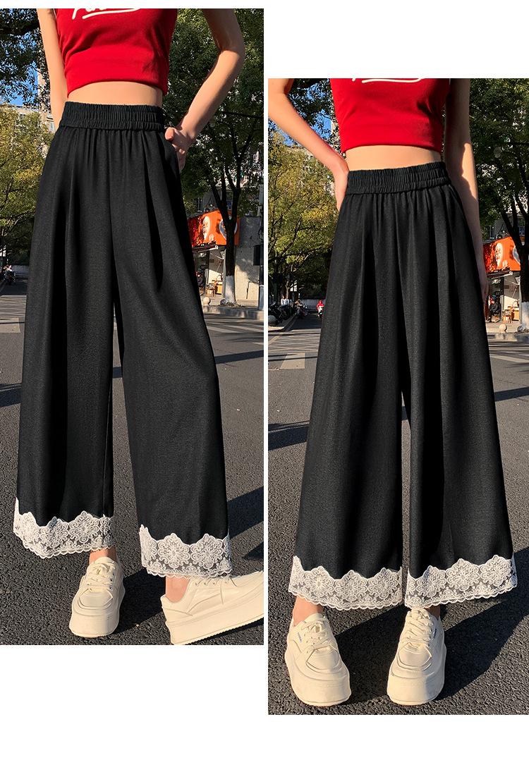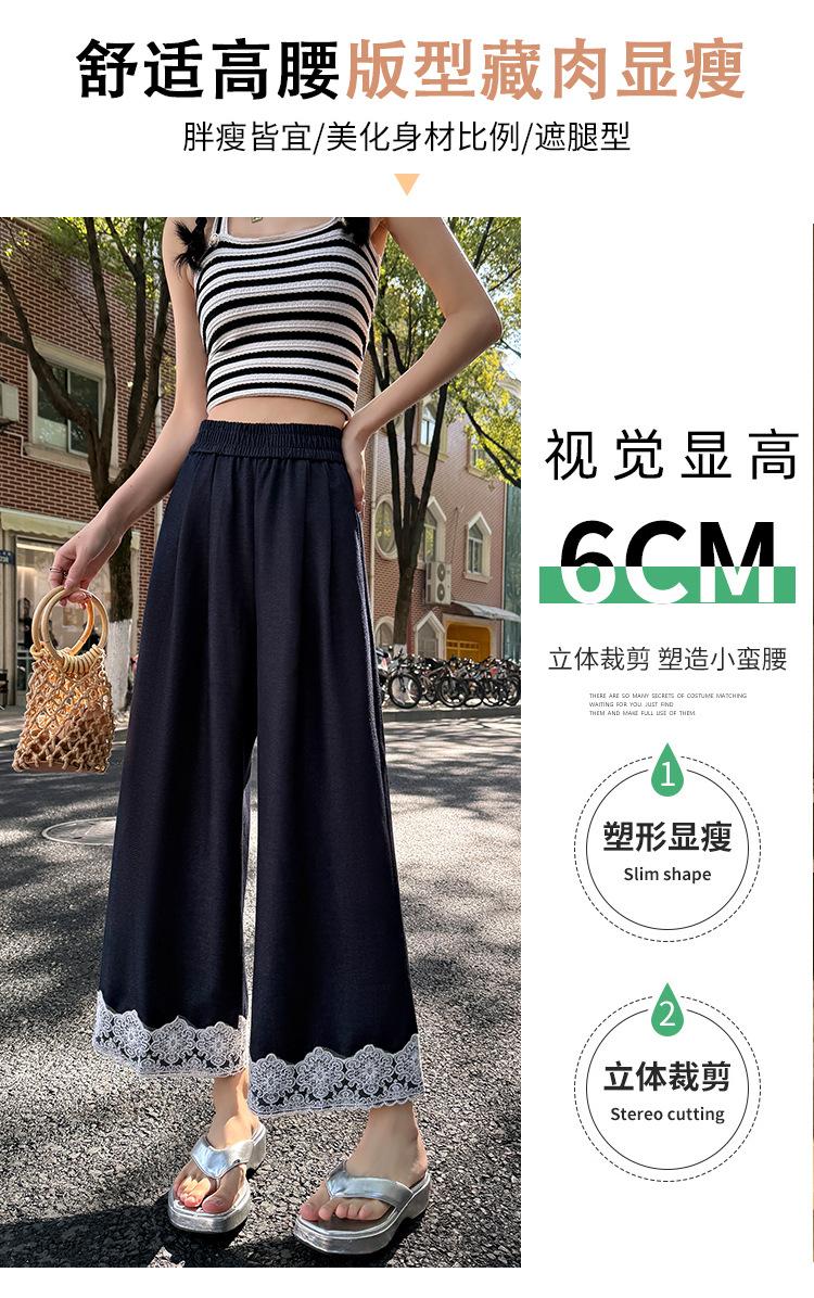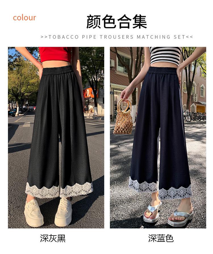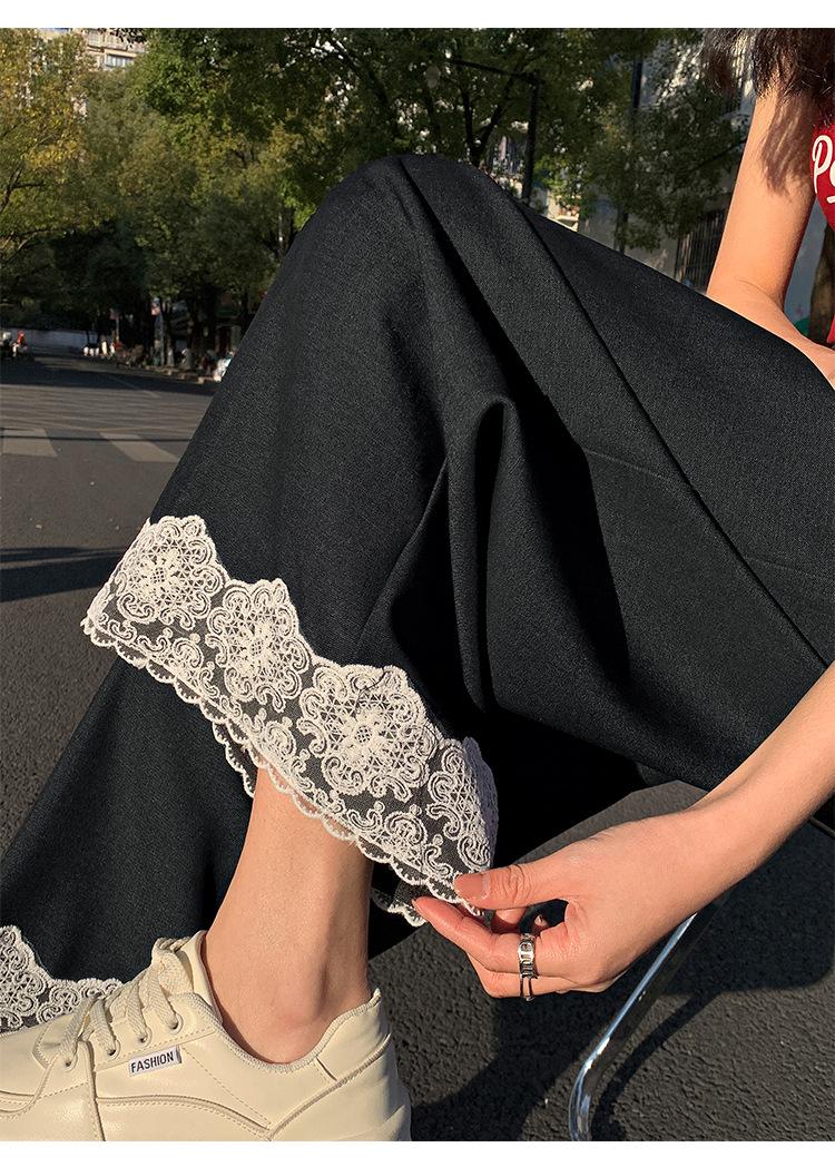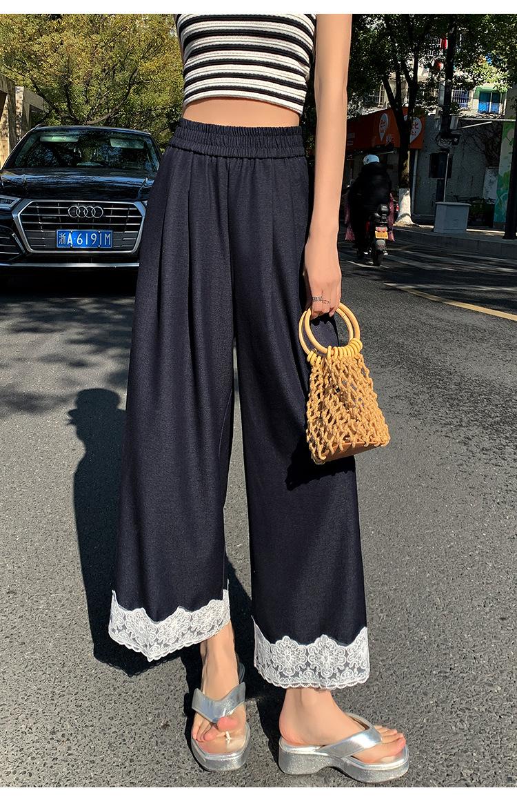 Pantalones Versátiles de Encaje de Pierna Ancha para Mujer Primavera 2025 Nuevo Cintura Alta Adelgazantes Rectos Petite Casuales