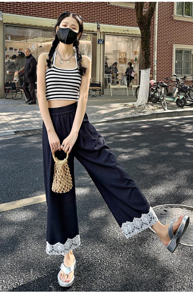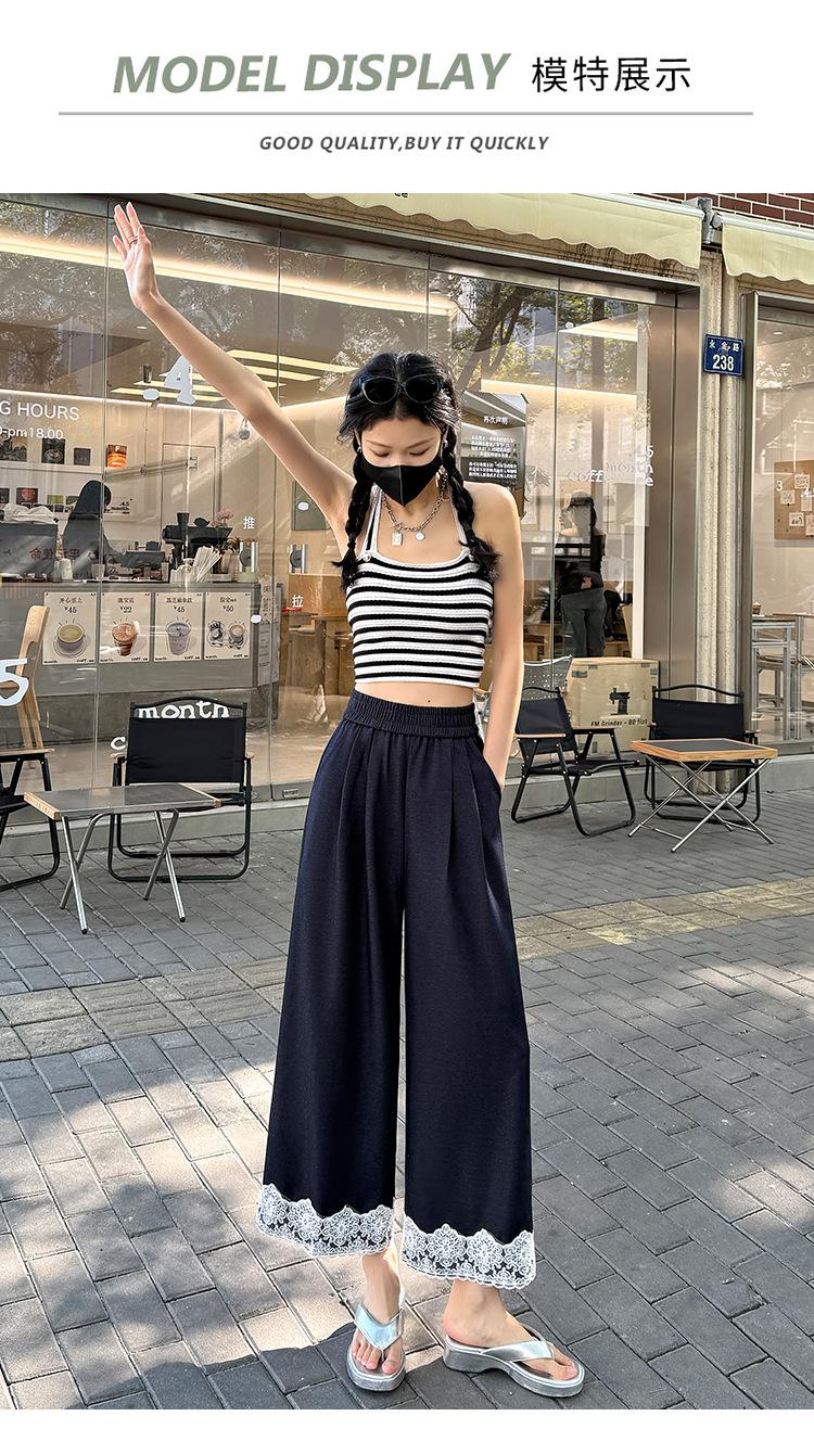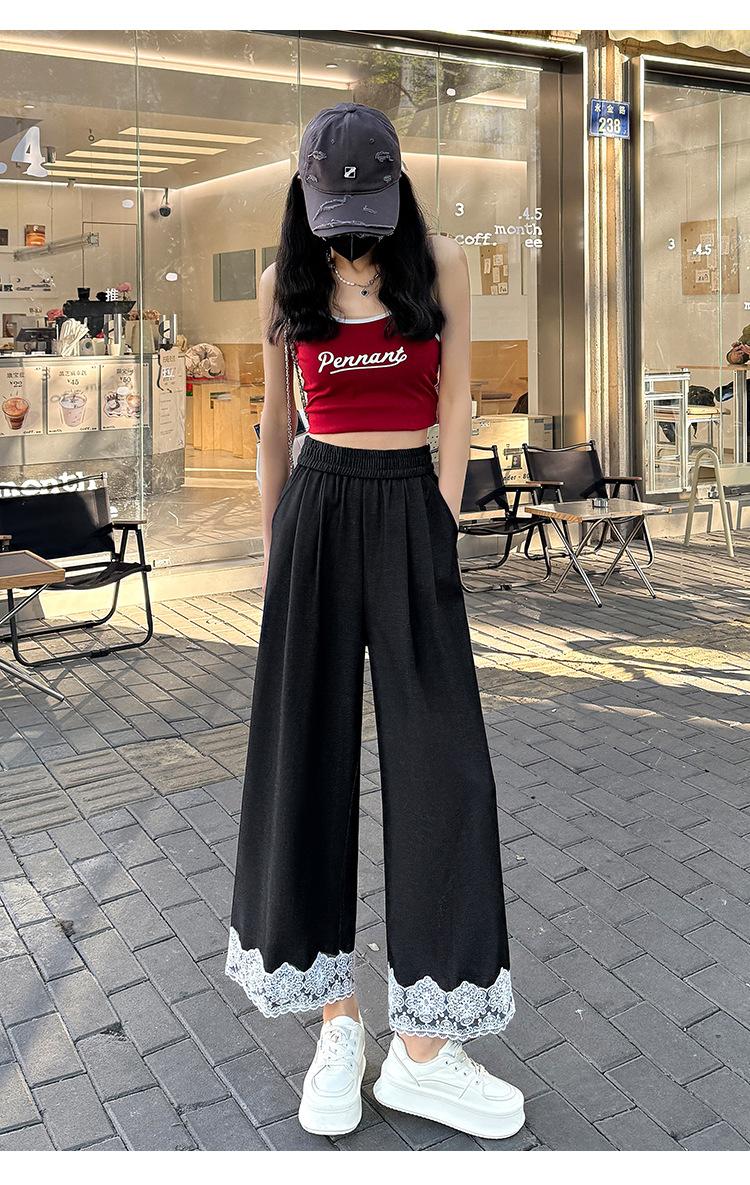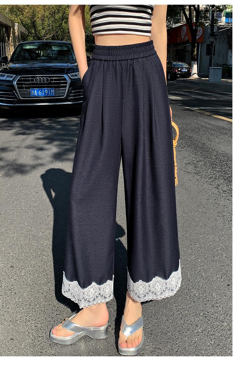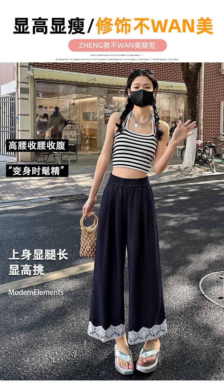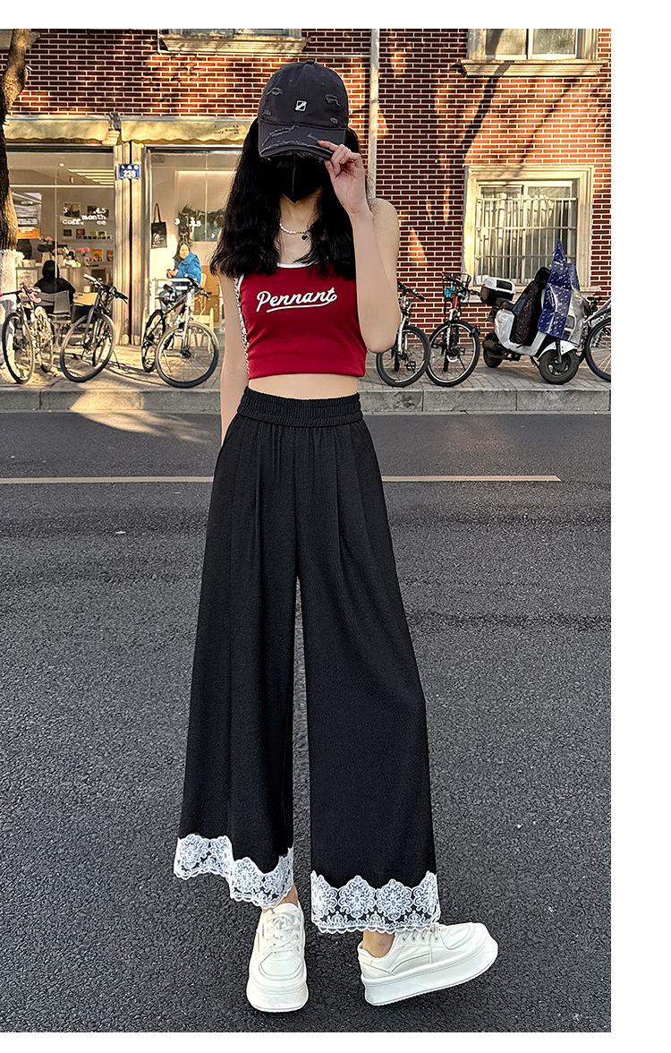 Pantalones Versátiles de Encaje de Pierna Ancha para Mujer Primavera 2025 Nuevo Cintura Alta Adelgazantes Rectos Petite Casuales