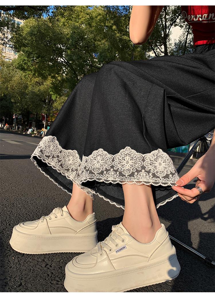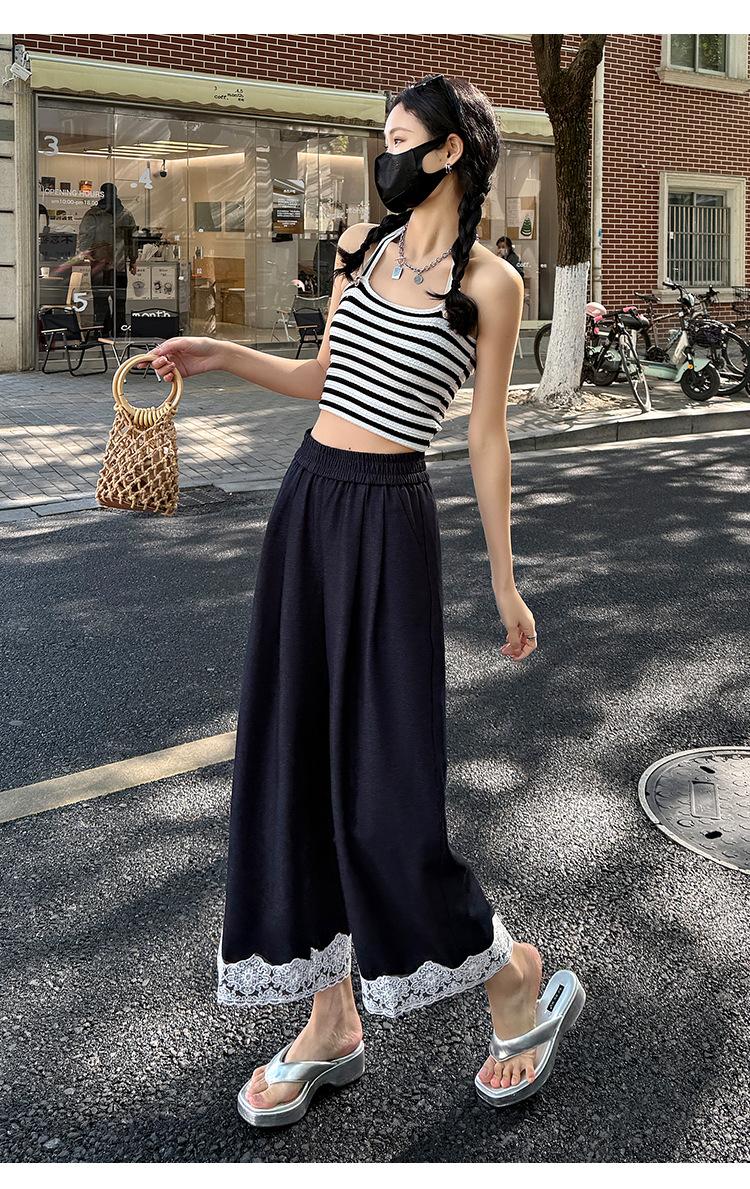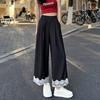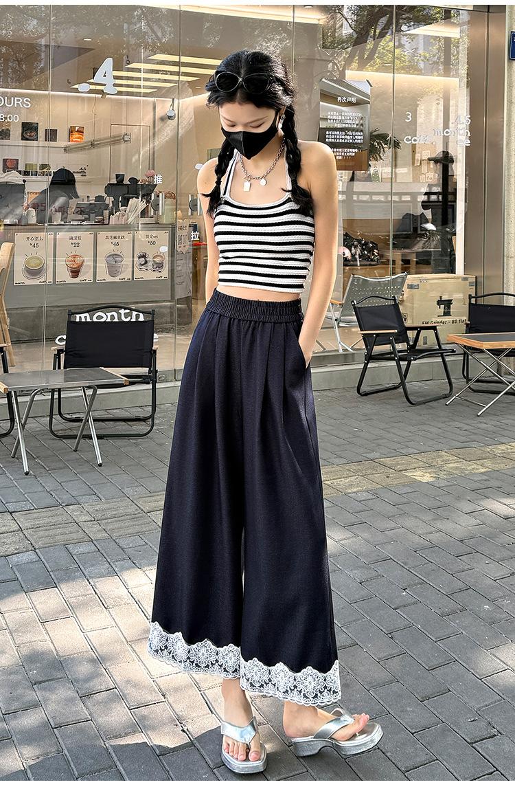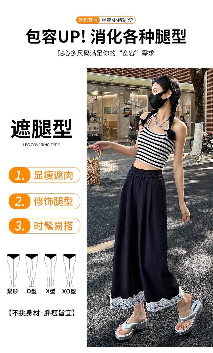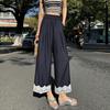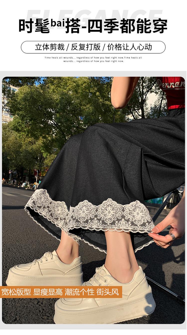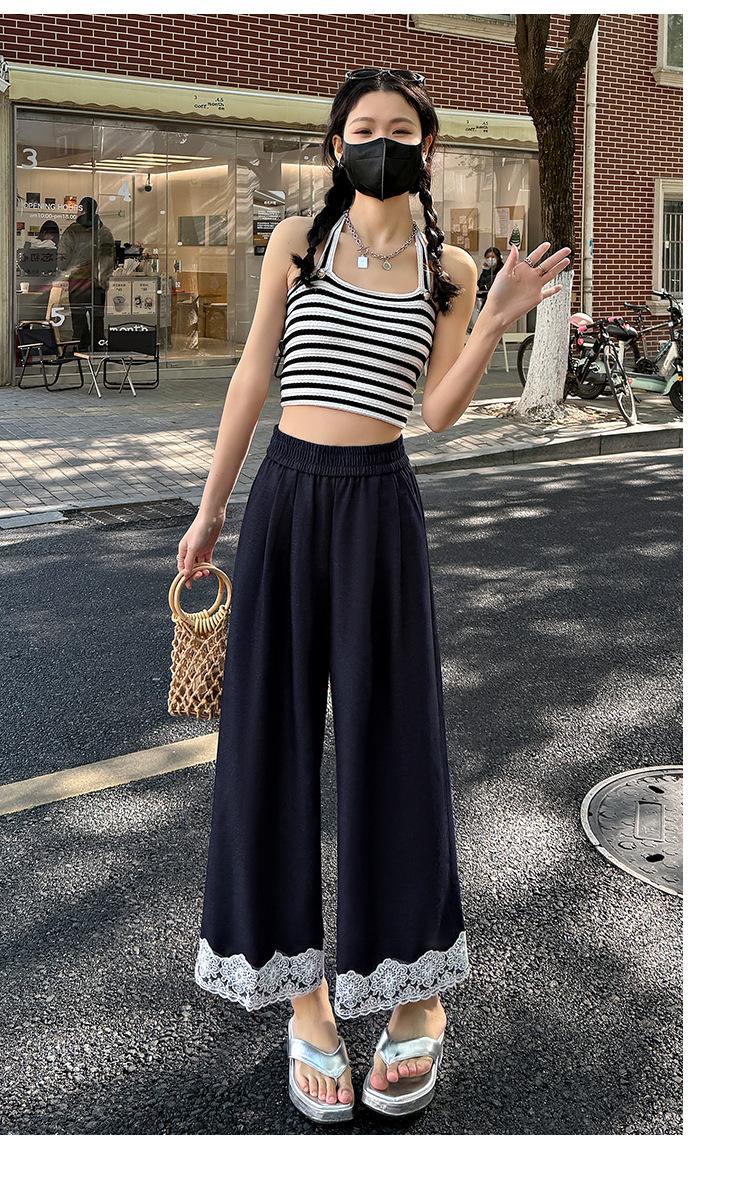 Pantalones Versátiles de Encaje de Pierna Ancha para Mujer Primavera 2025 Nuevo Cintura Alta Adelgazantes Rectos Petite Casuales