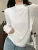 Camiseta de manga larga con cuello medio alto y diseño engrosado para mujer, otoño e invierno, con cintura ajustada para cubrir la carne, camisa interior adelgazante, top corto.