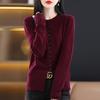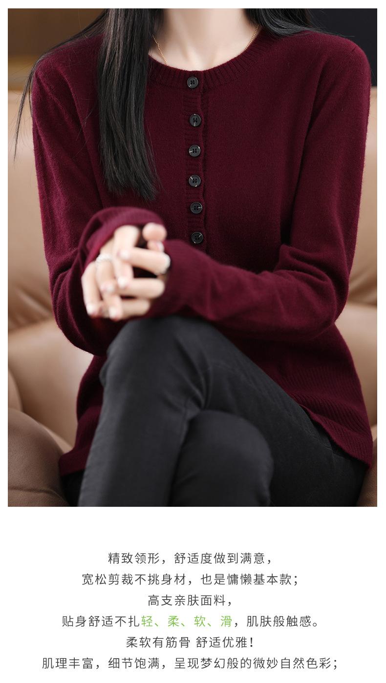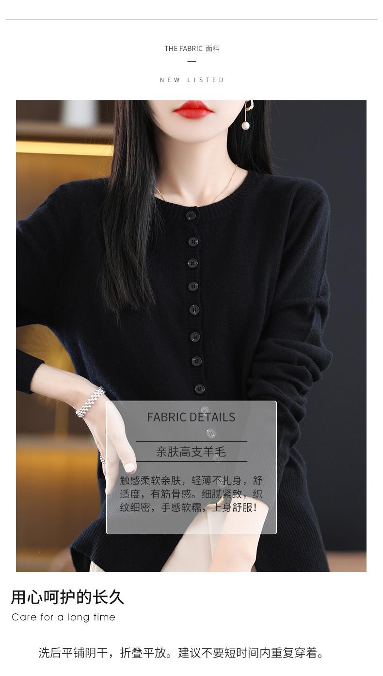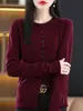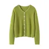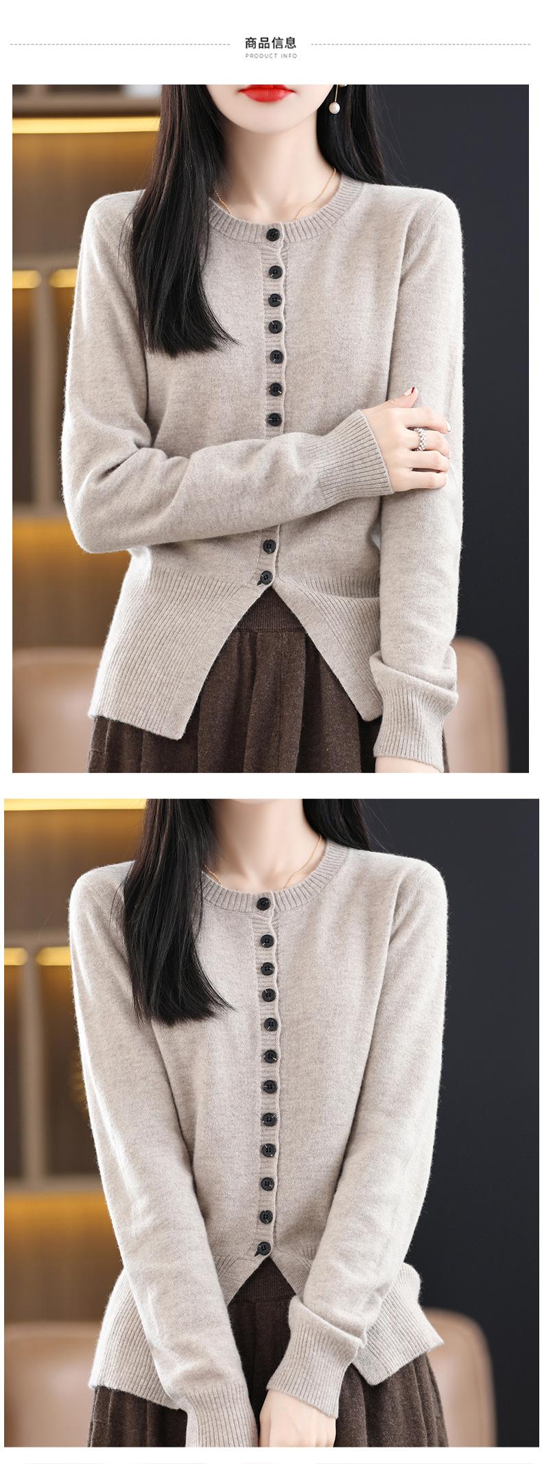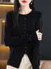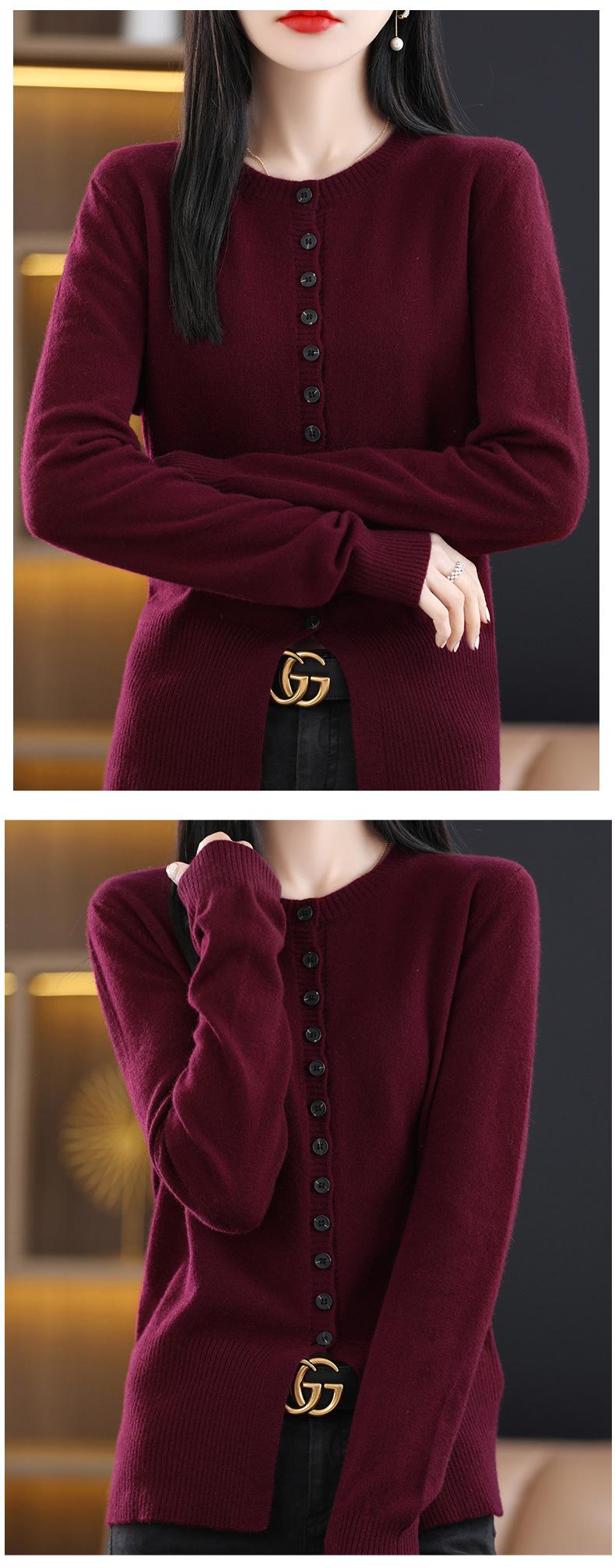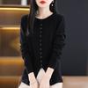 Nuevo cárdigan de punto de lana pura con cuello redondo para mujer, color liso, elegante, informal, sencillo, a la moda, con abertura y botonadura sencilla.