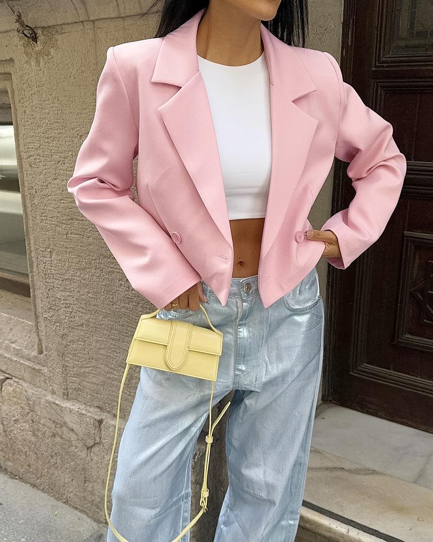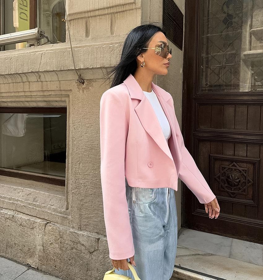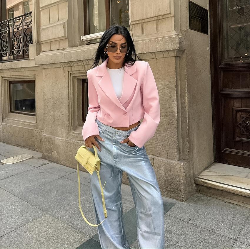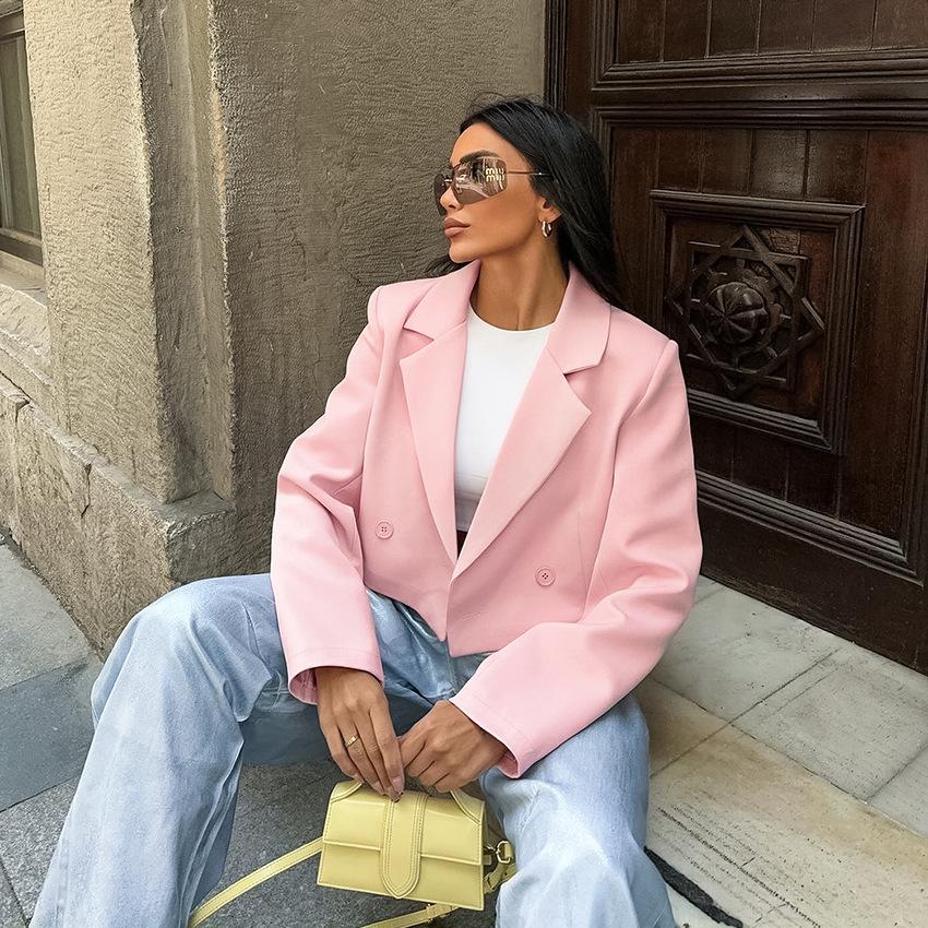Chaqueta de traje informal elegante rosa francesa para mujer, primavera 2025, nueva moda europea y americana para desplazamientos transfronterizos