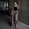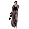 Verano para Mujer 2025 Nuevo Estilo Hermana Real Temperamento Diosa Fan de Alto Nivel Marrón Traje Profesional Traje de Dos Piezas Sentido de Alto Nivel