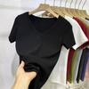 Camiseta de manga corta holgada y adelgazante con escote en V y media manga de verano 2024 para mujer, talla grande, para chica gordita, 100,00 kg