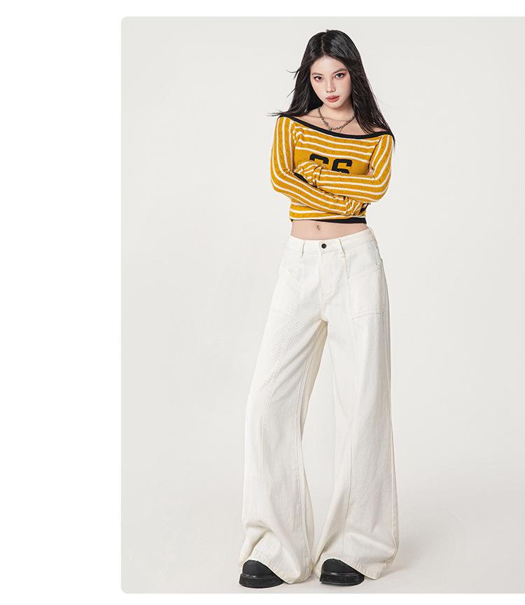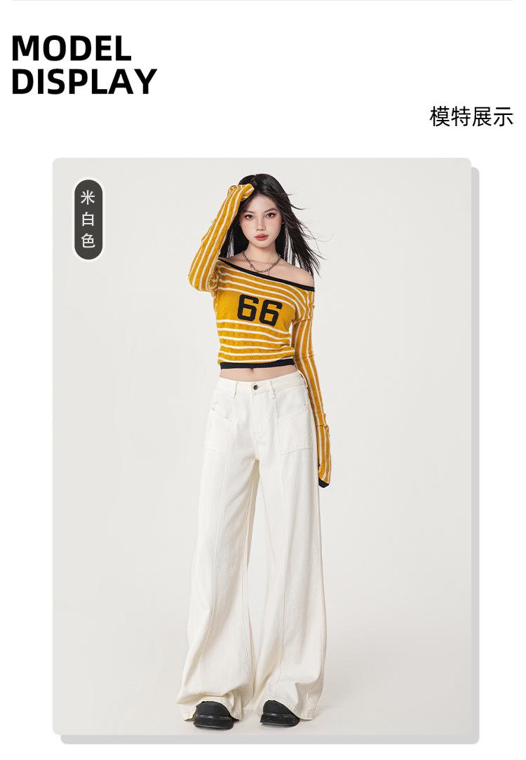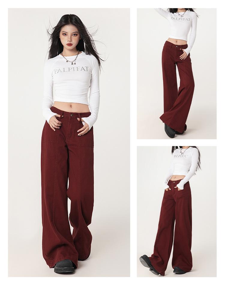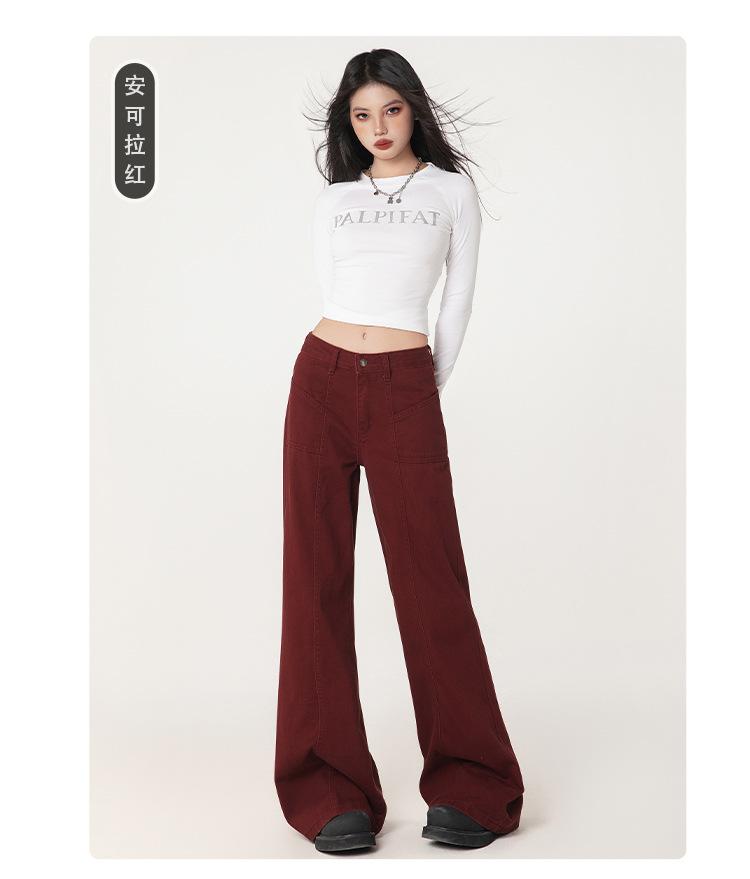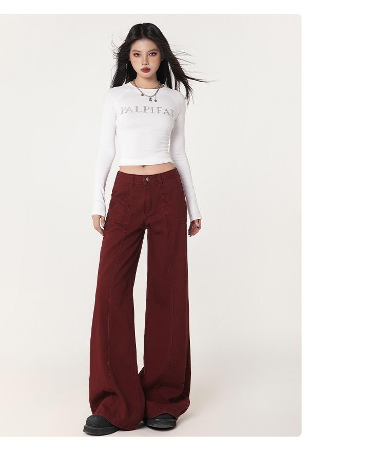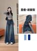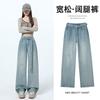 Pantalones vaqueros de pierna ancha con diseño dividido y costuras abiertas para mujer, holgados, adelgazantes, casuales, combinables para cubrir la carne.