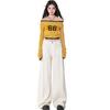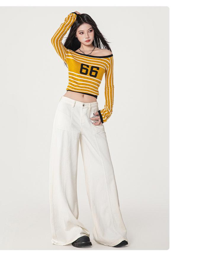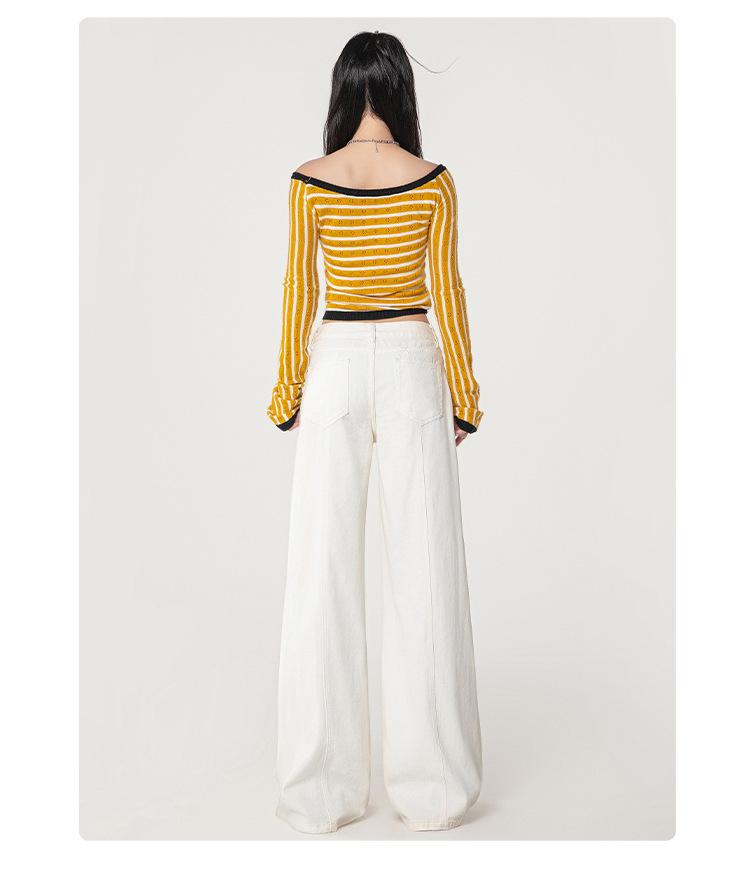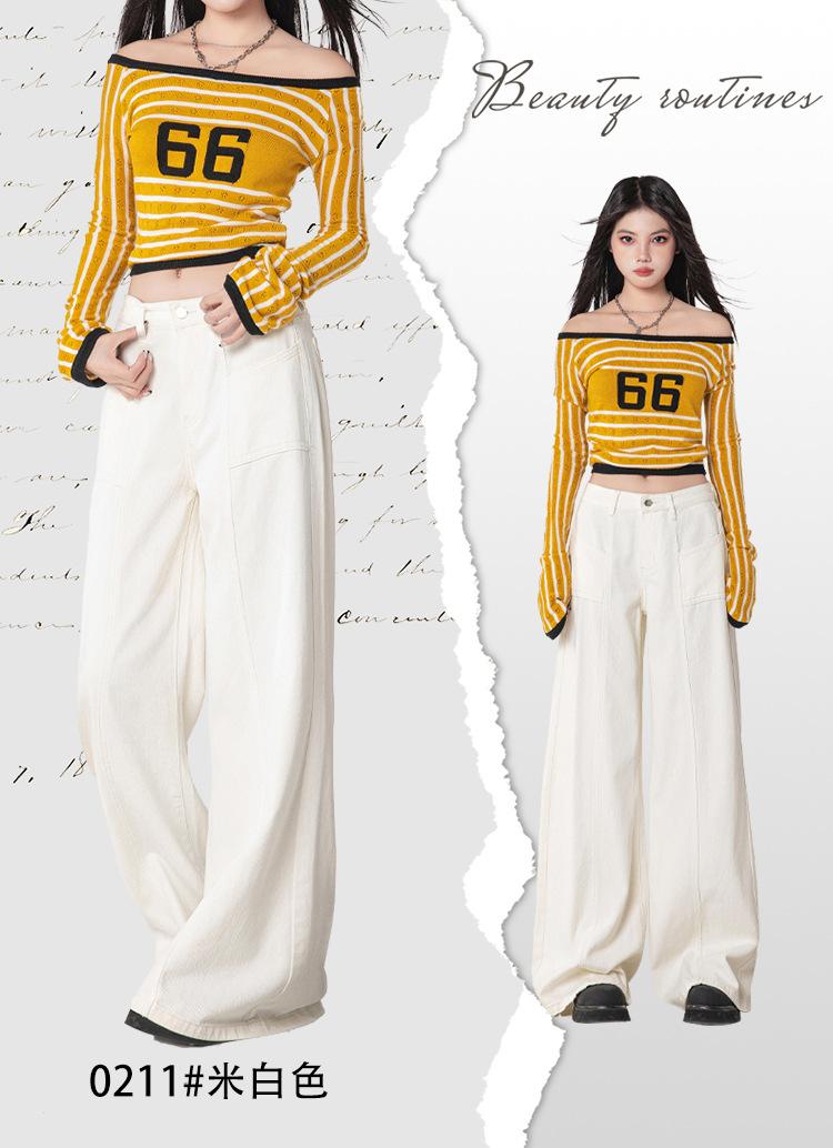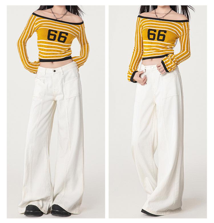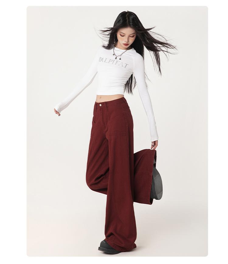 Pantalones vaqueros de pierna ancha con diseño dividido y costuras abiertas para mujer, holgados, adelgazantes, casuales, combinables para cubrir la carne.