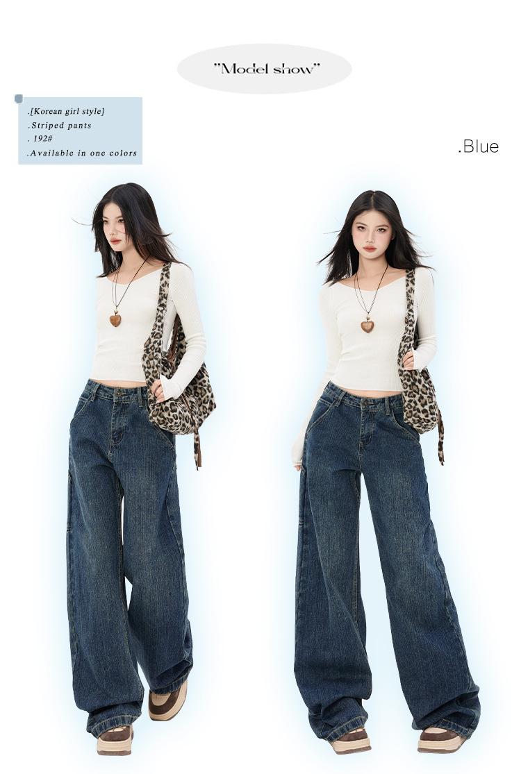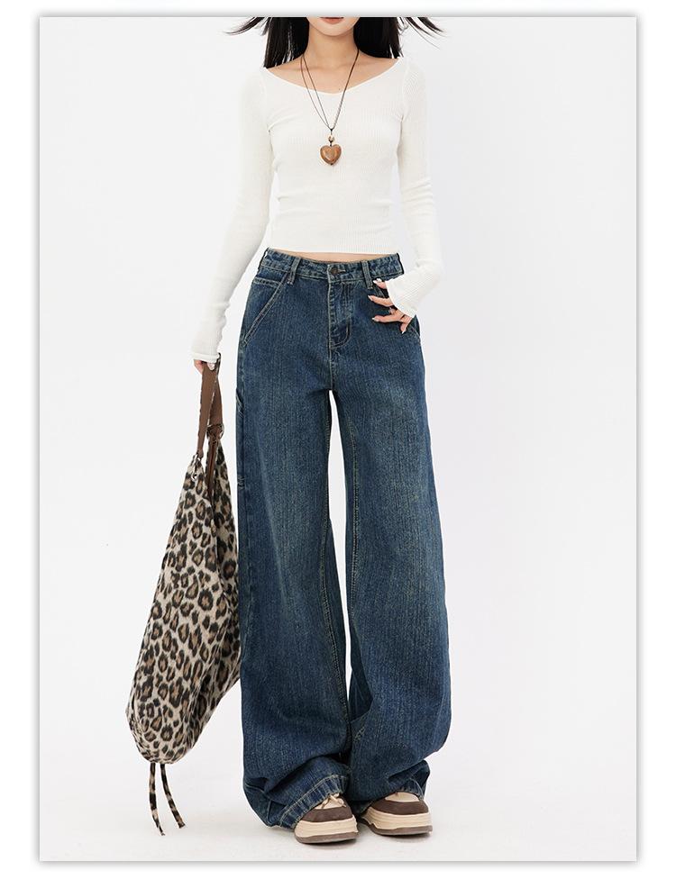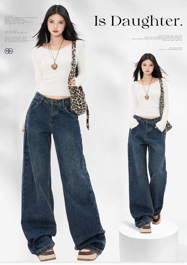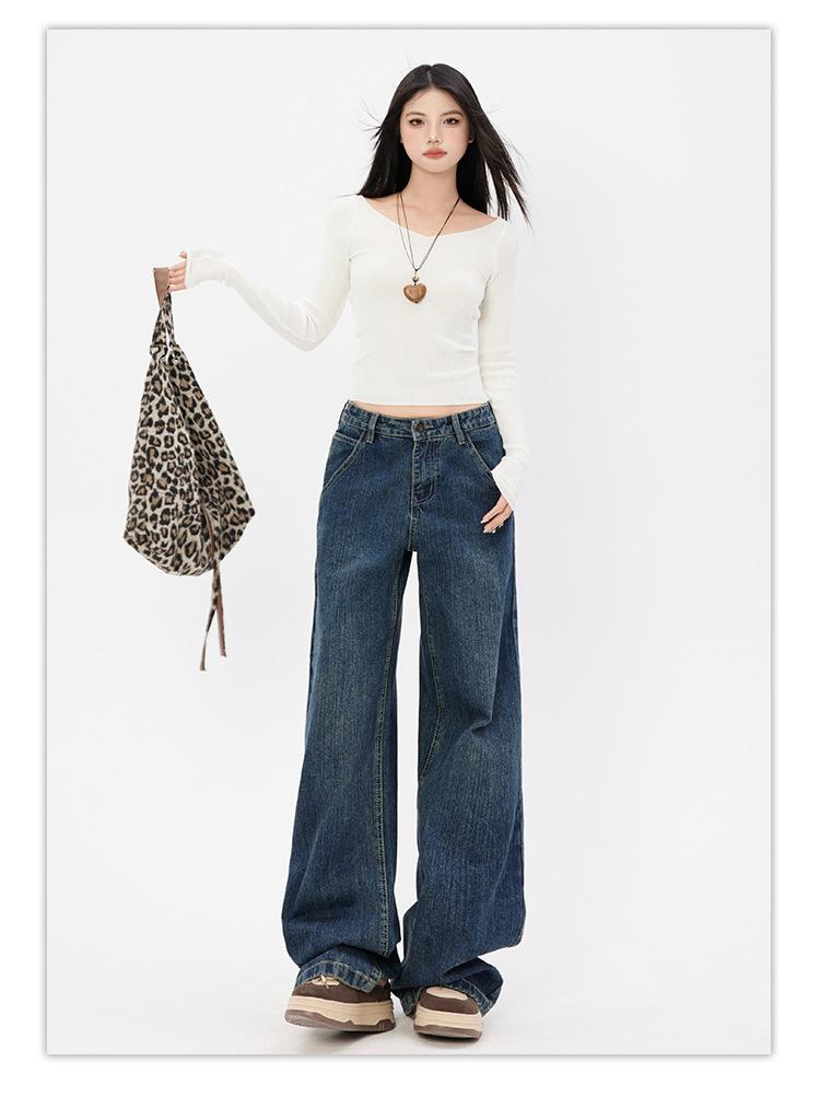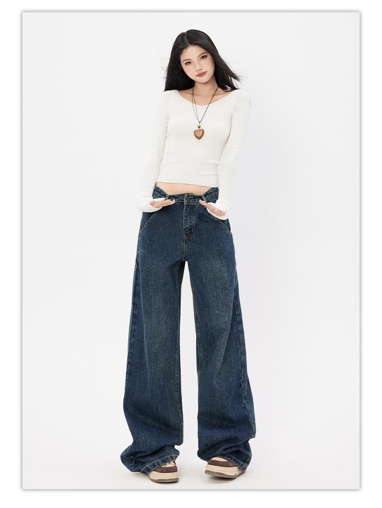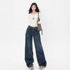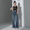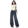 Pantalones vaqueros de pierna ancha lavados, clásicos, estilo Hong Kong, para mujer, holgados, adelgazantes, que cubren la cadera y combinan con todo.