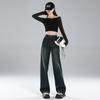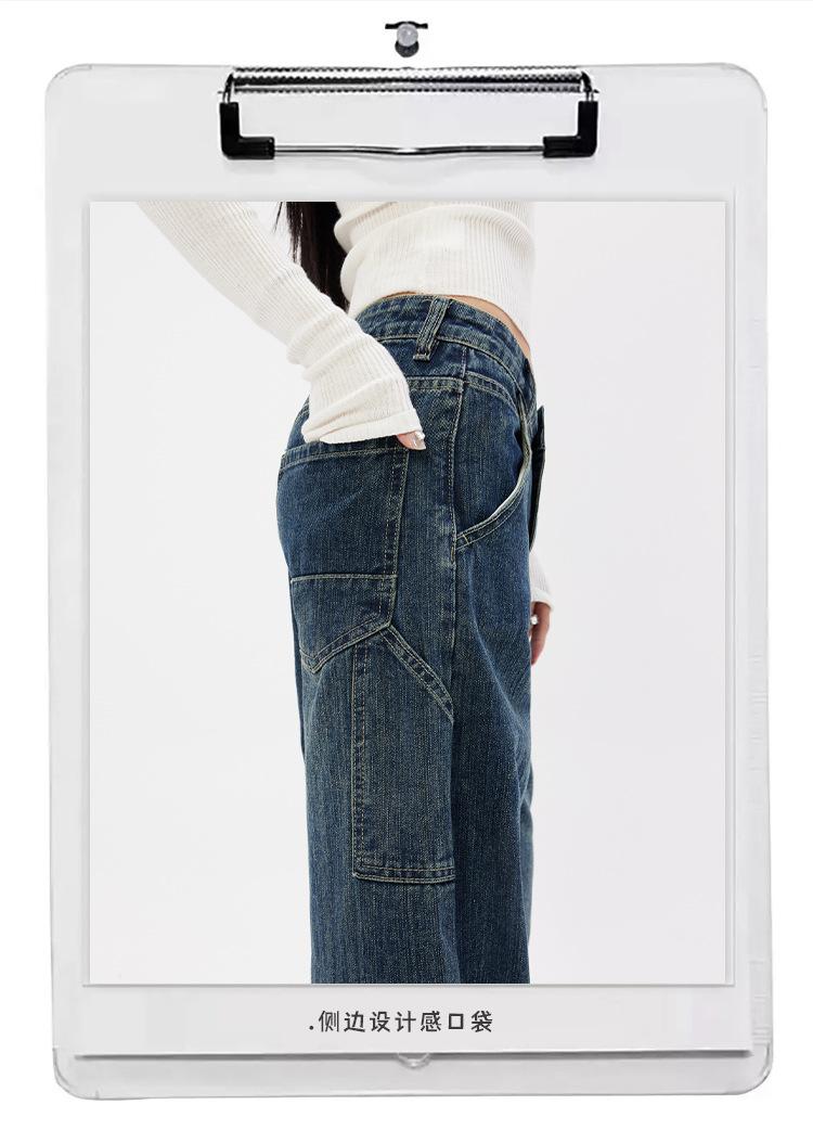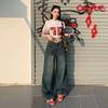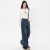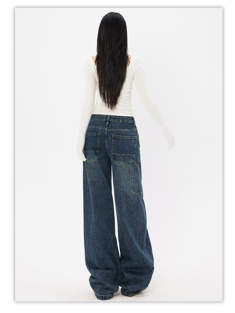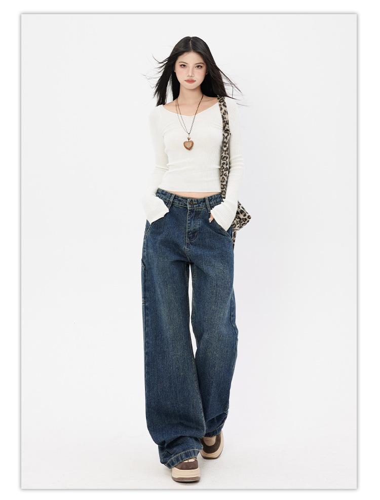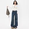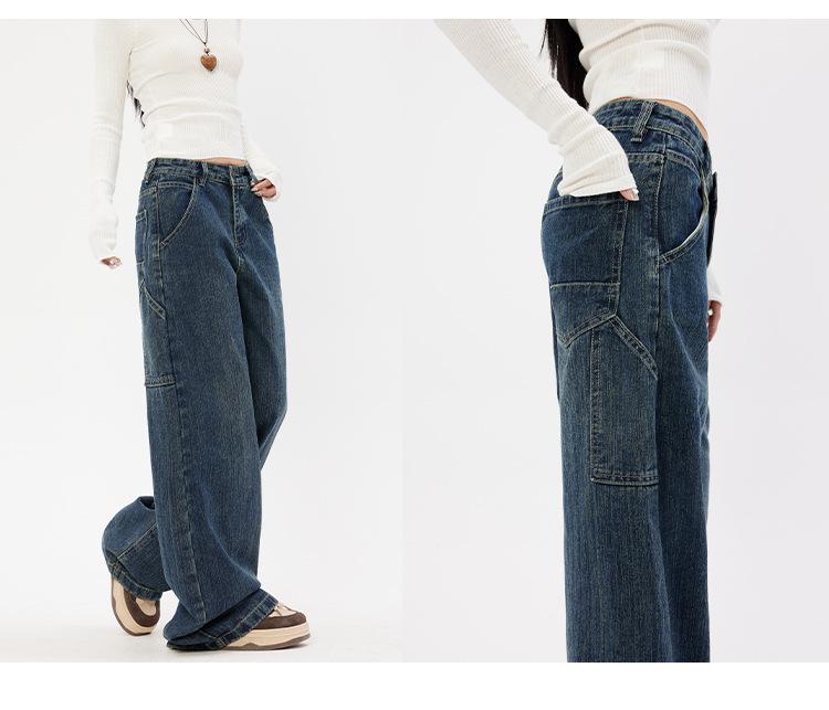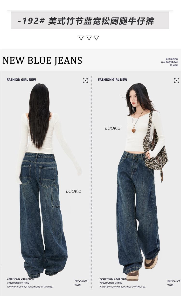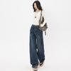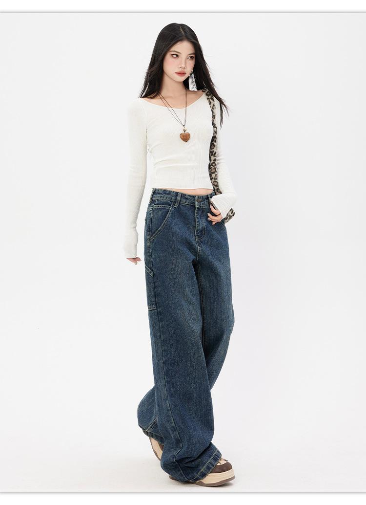 Pantalones vaqueros de pierna ancha lavados, clásicos, estilo Hong Kong, para mujer, holgados, adelgazantes, que cubren la cadera y combinan con todo.