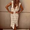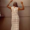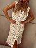 2025 Blusa de Playa de Crochet Calado Casual Suelta Cárdigan de Industria Pesada Hebilla Vestido sin Mangas Mujer