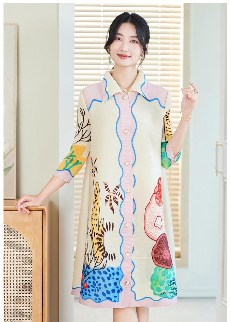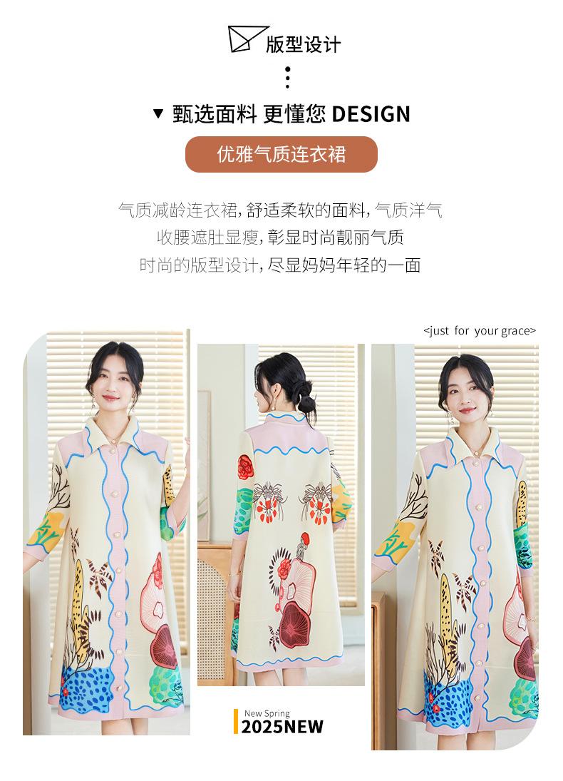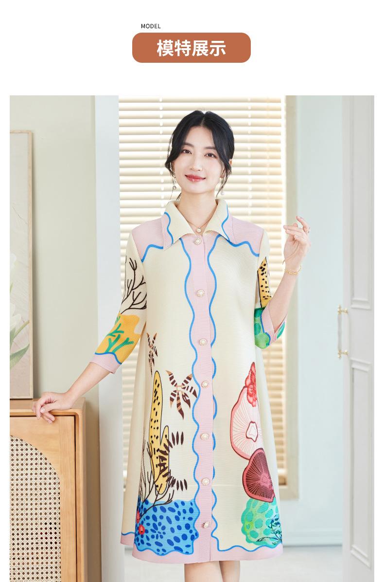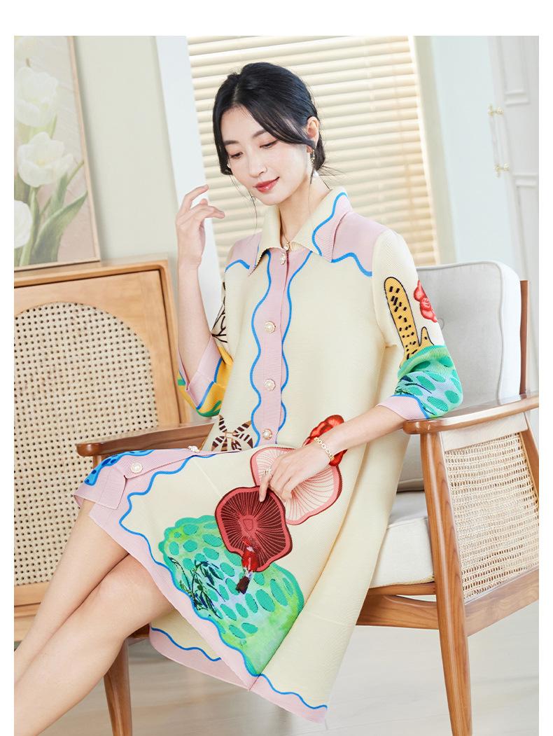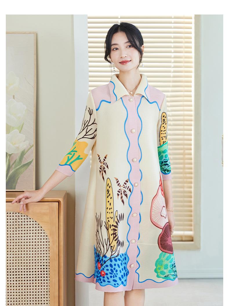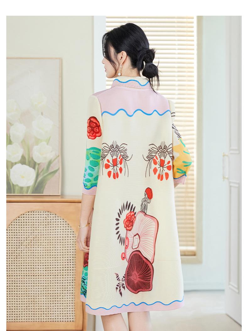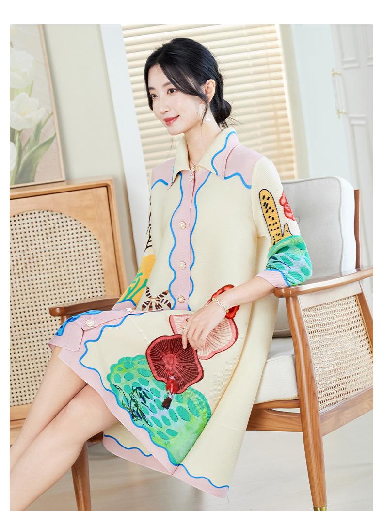 Temperamento Adelgazante Look Talla Grande Vestido Estampado Primavera Mujer 2025 Nuevo Miyake Suelto Grasa mm Cárdigan Plisado Falda