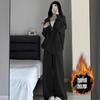 Traje deportivo grueso con forro polar para mujer 2025 Otoño e Invierno estilo coreano holgado con capucha moda estilo perezoso casual conjunto de dos piezas